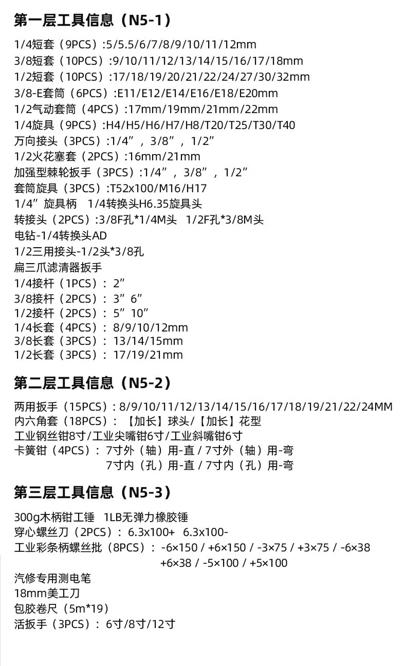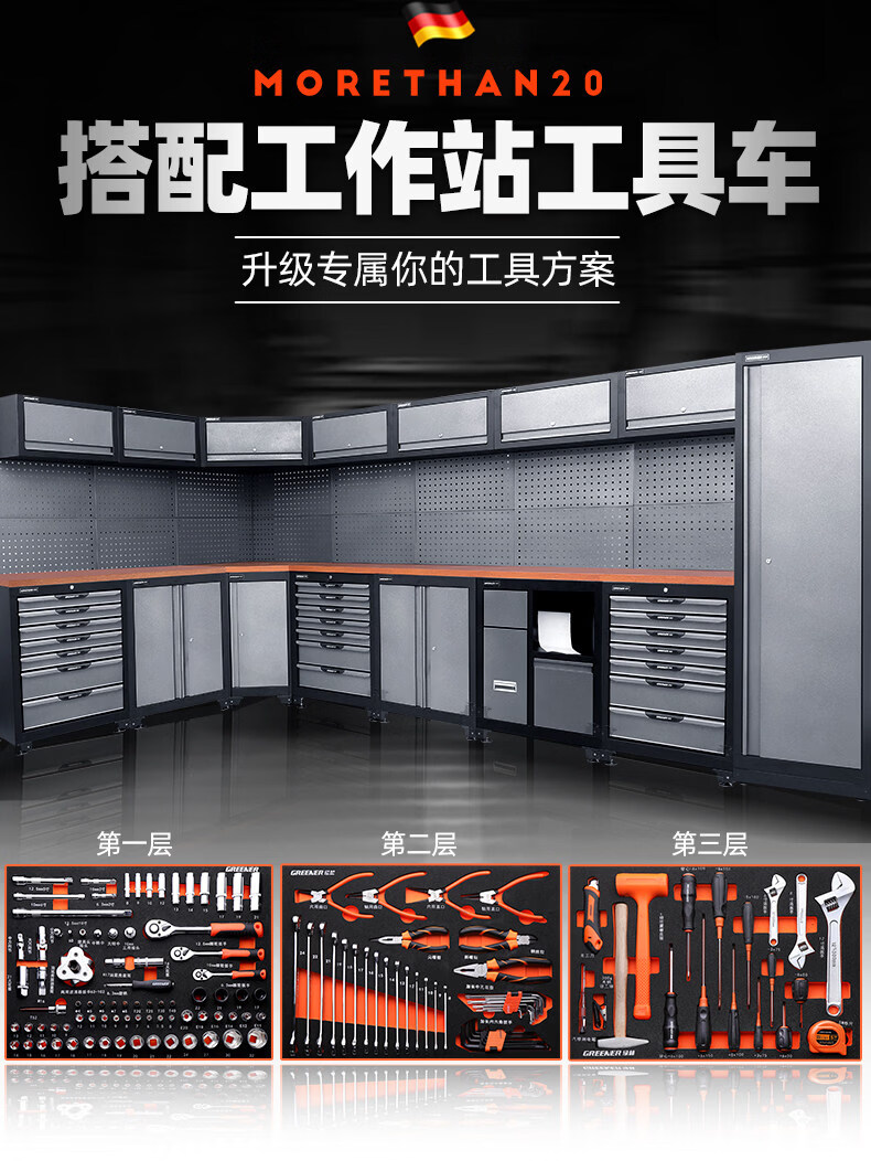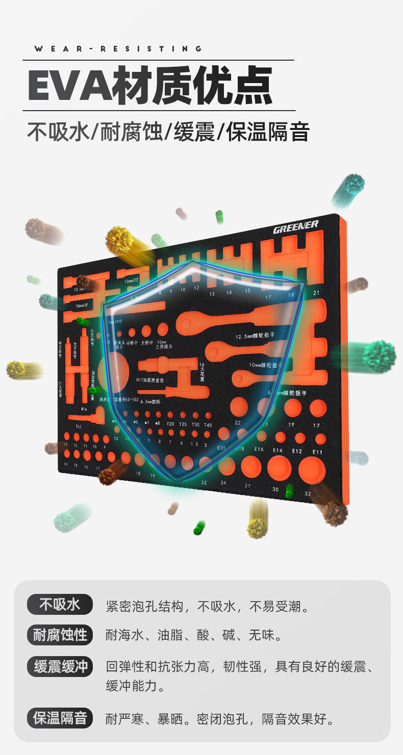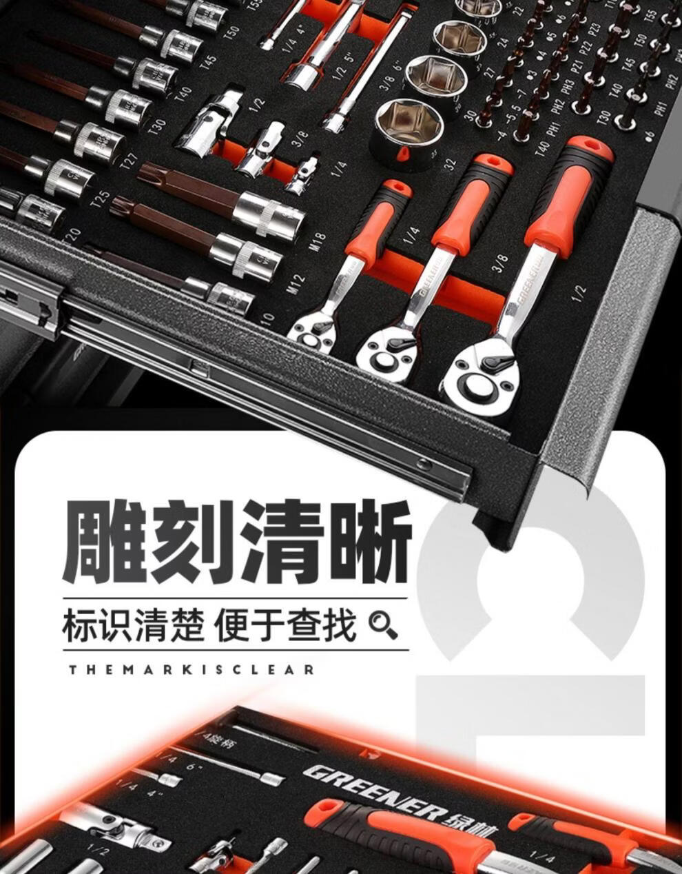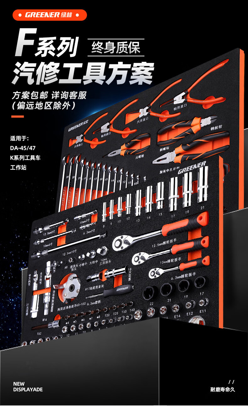 GREENER Socket Ratchet Wrench Combination Tool Set Cabinet Tool Car Repair Box Cart Lining Solution F06-236 Tool Solution (Contact customer service for discounts)