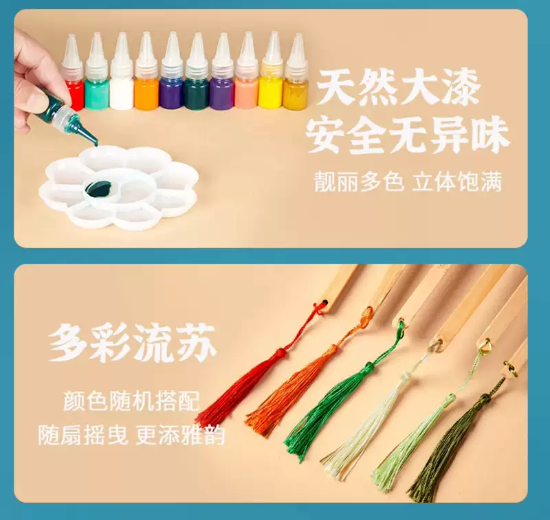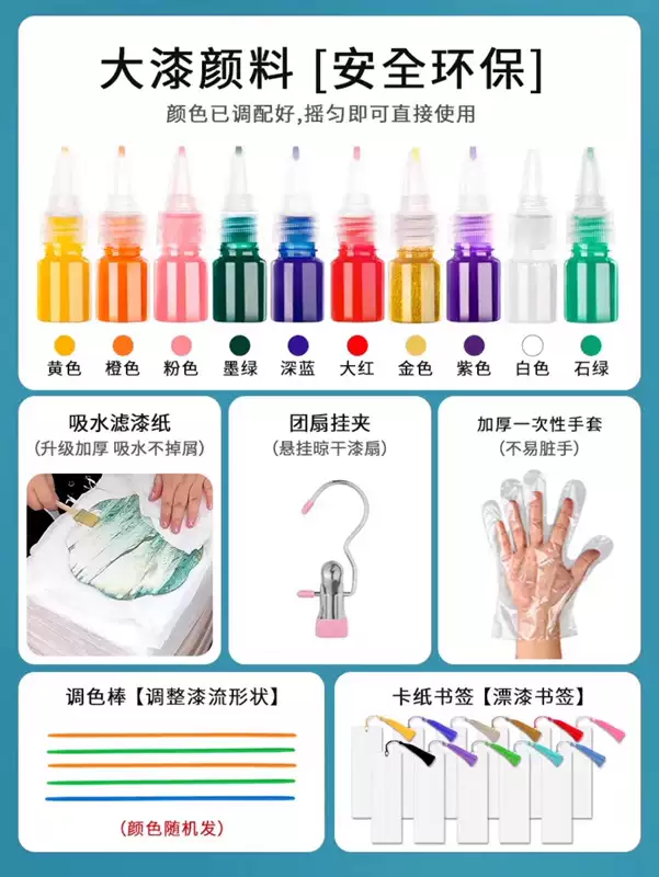 Yusenyi non-blank lacquer fan full set of materials for bleaching and making pigment relics fan natural bag diy special fan lacquer (blank) lacquer fan 30 pieces - 10 colors 10ml natural lacquer tool 39-piece set (free 10 pieces of suction craft fan