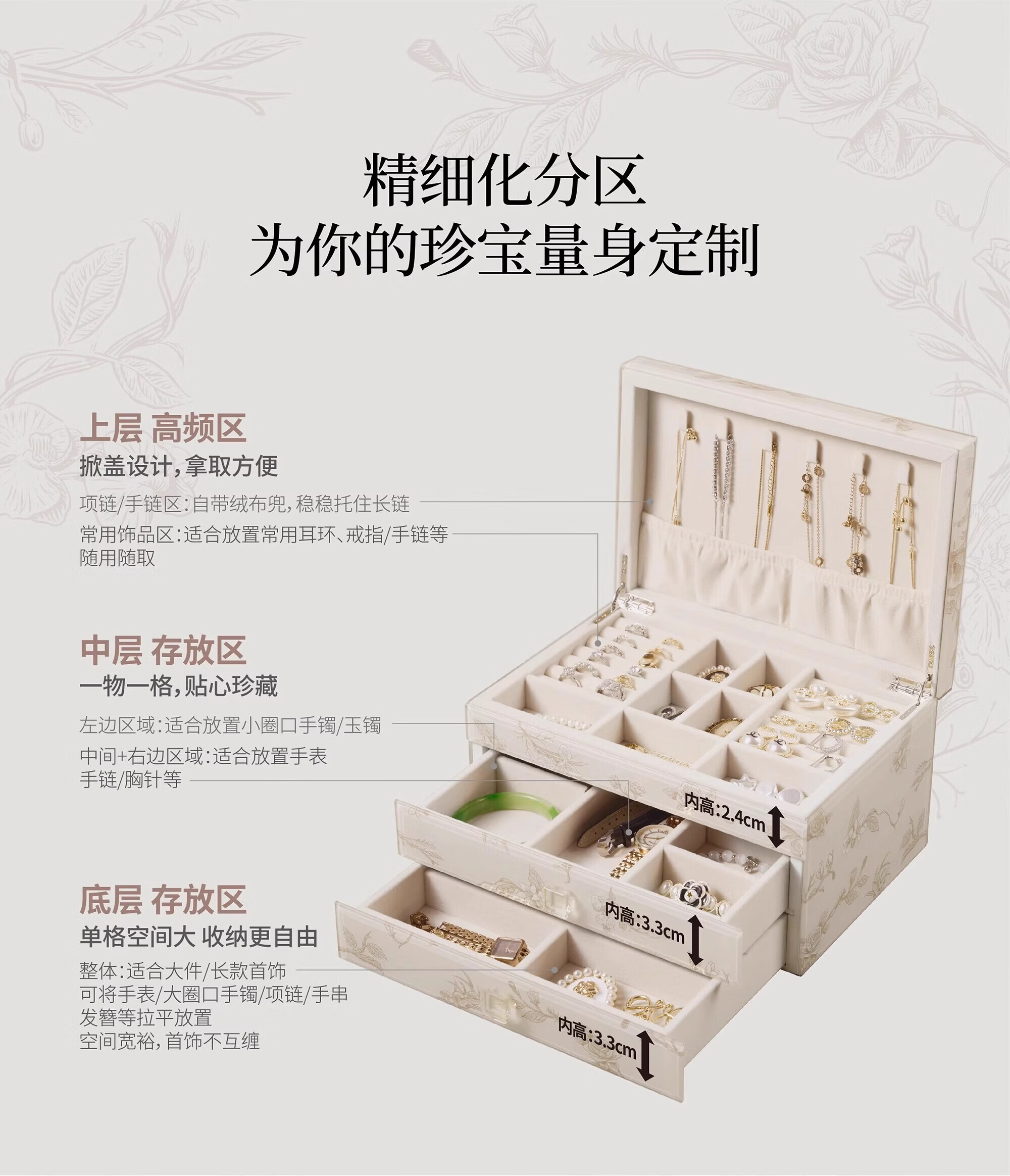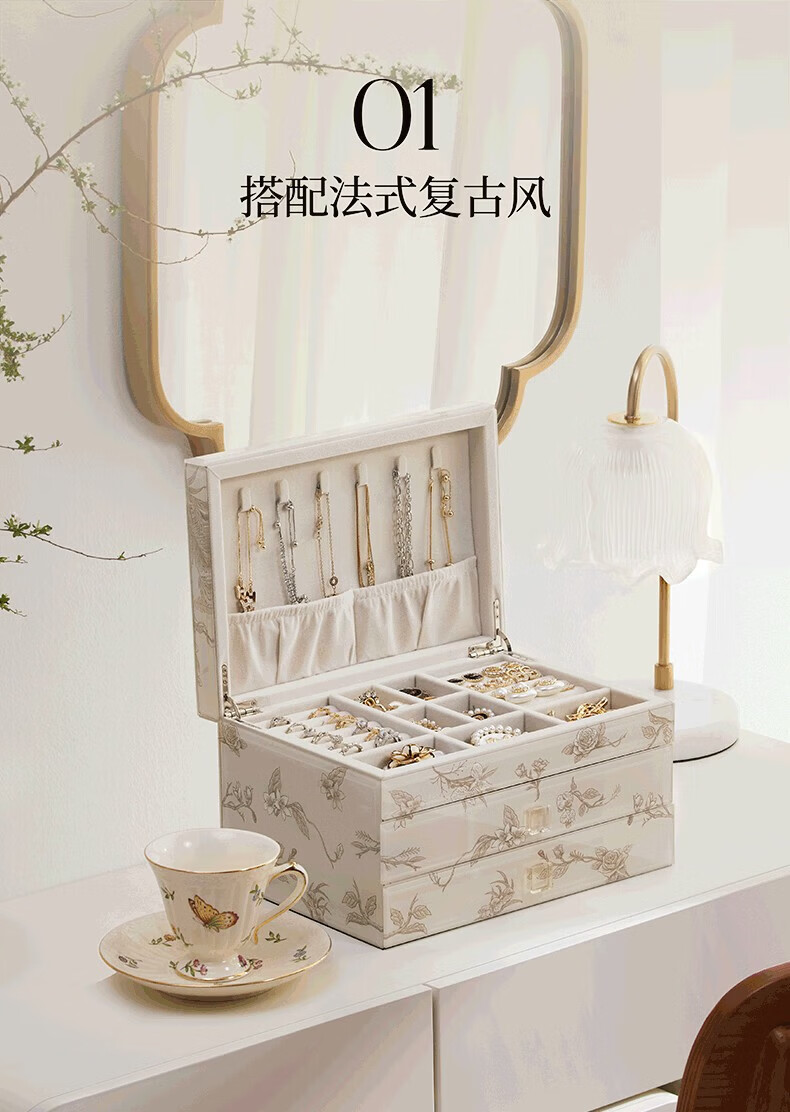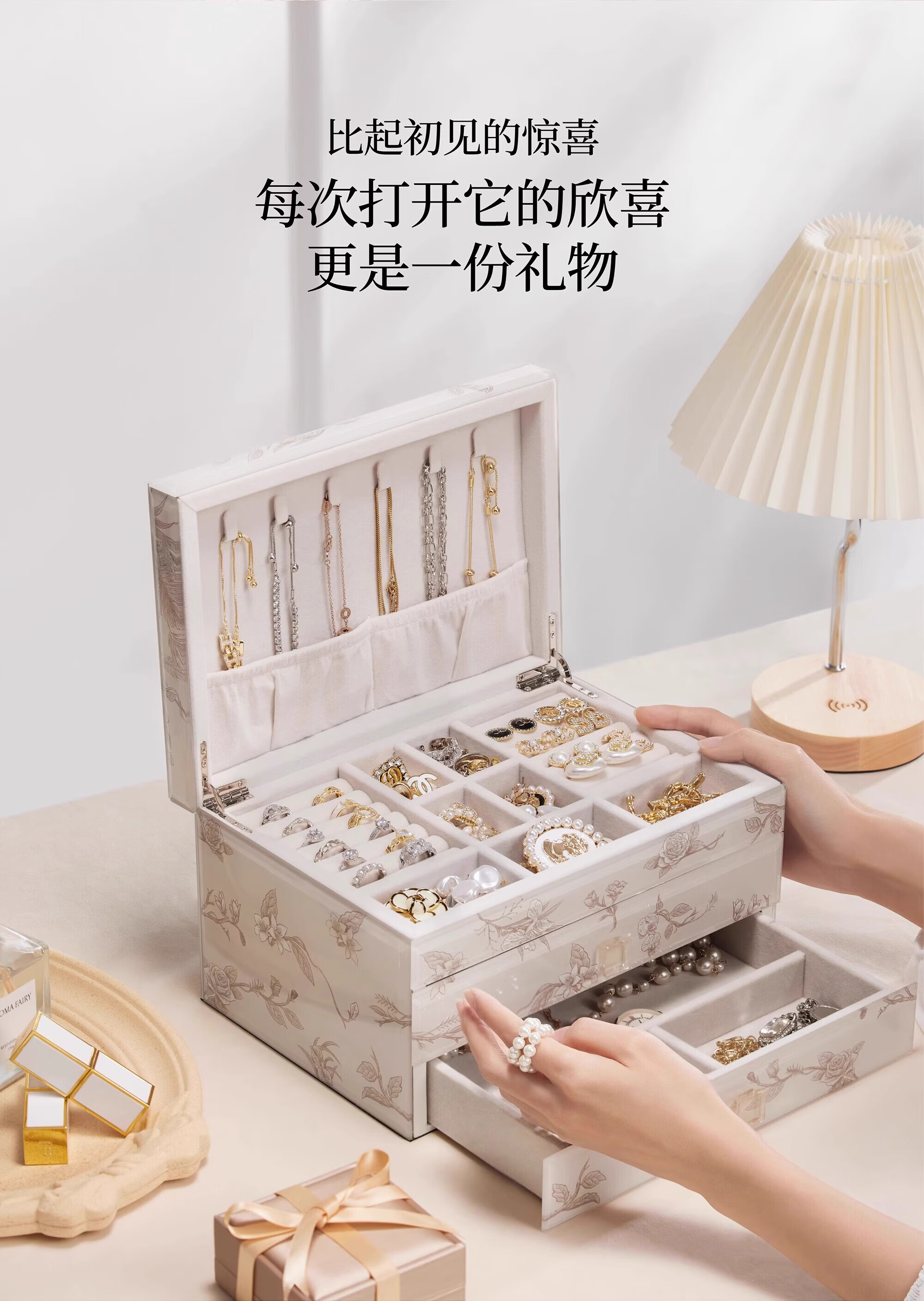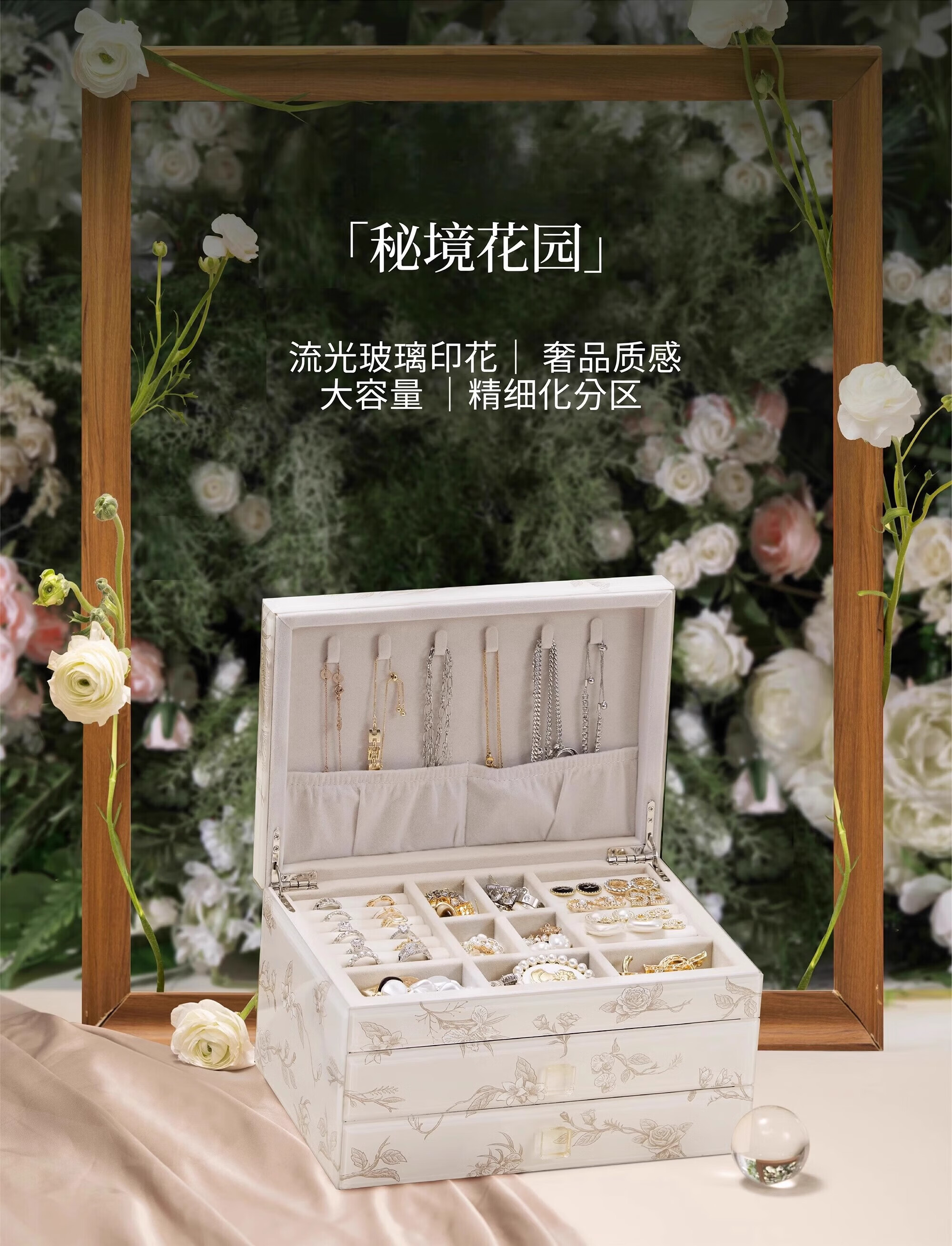 DEZZYS German brand jewelry box, exquisite, light and luxurious, large capacity earrings, necklaces, rings, jewelry storage box, Secret Garden