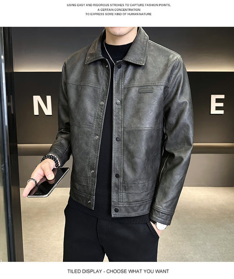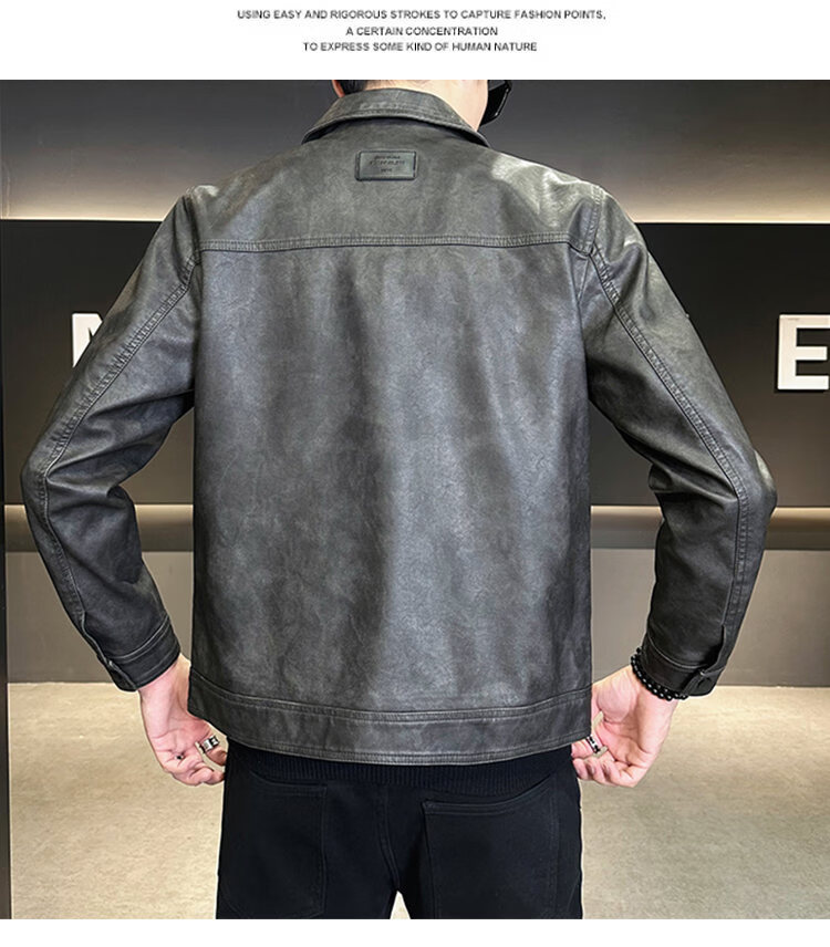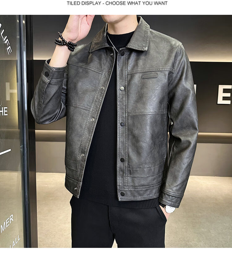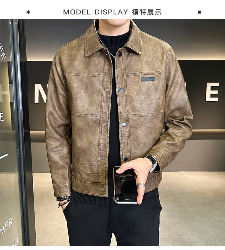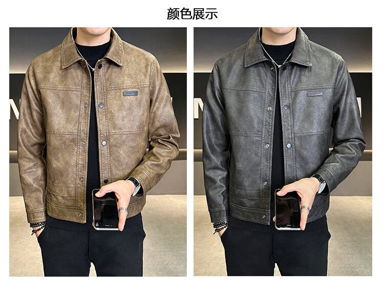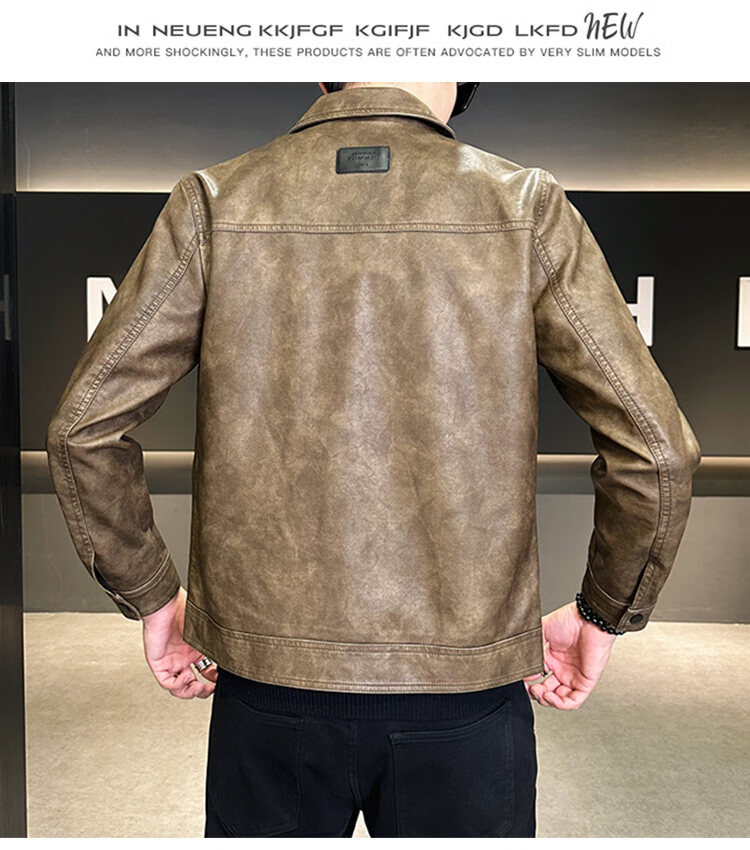 ROMON American fashion brand leather jacket men's autumn 2026 new retro trendy high-end motorcycle leather jacket top black XL