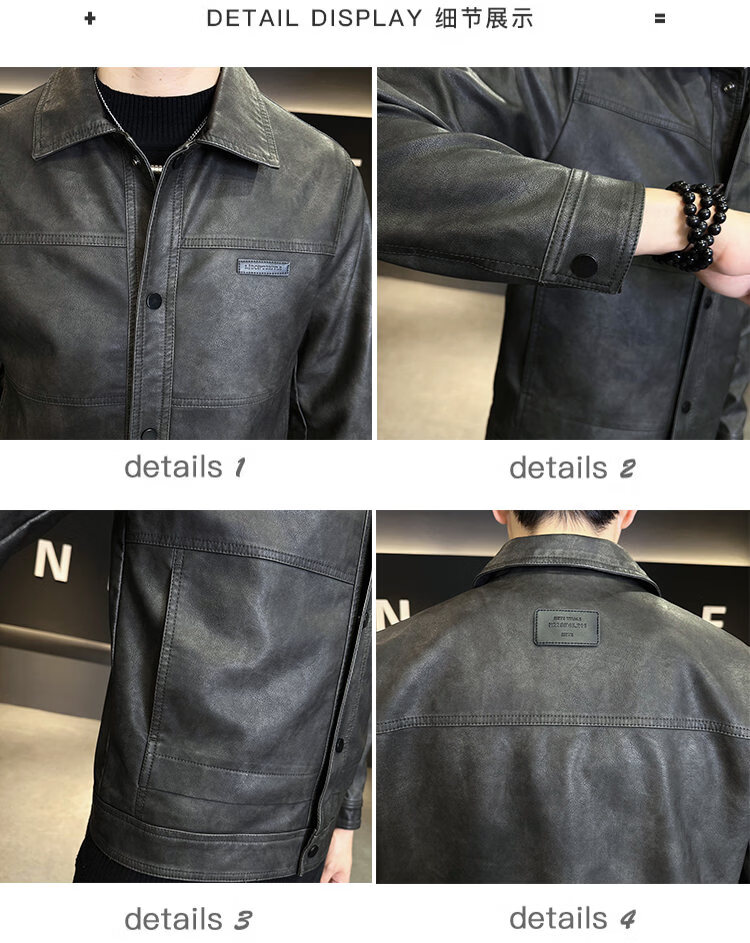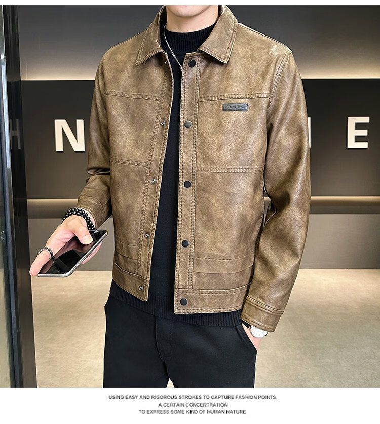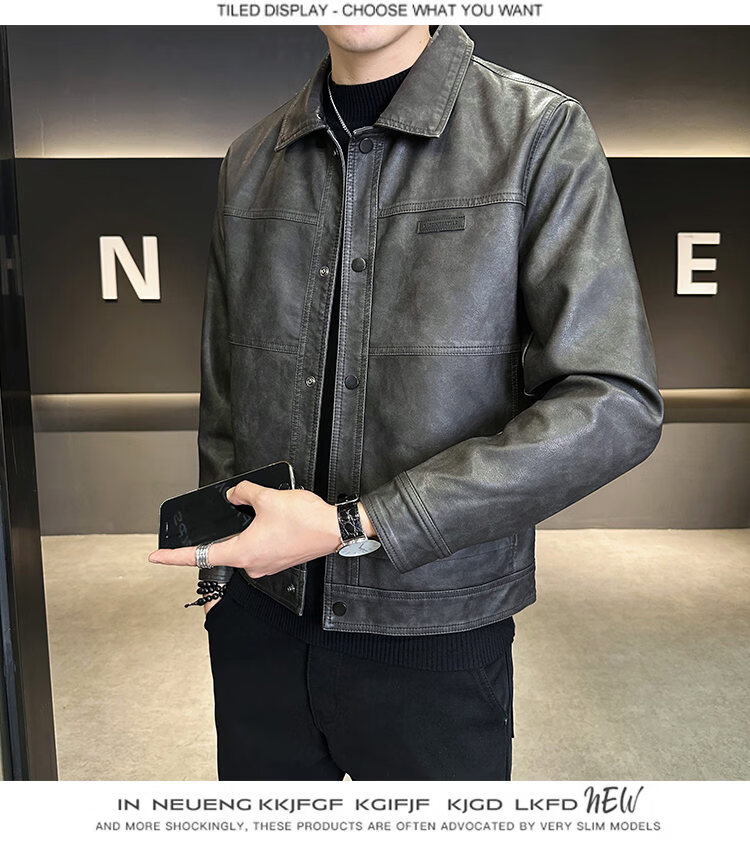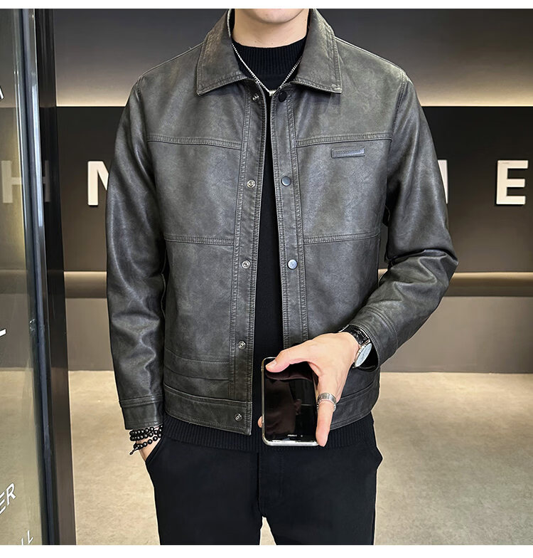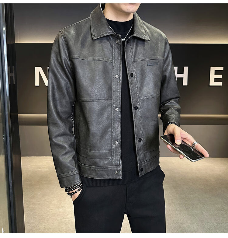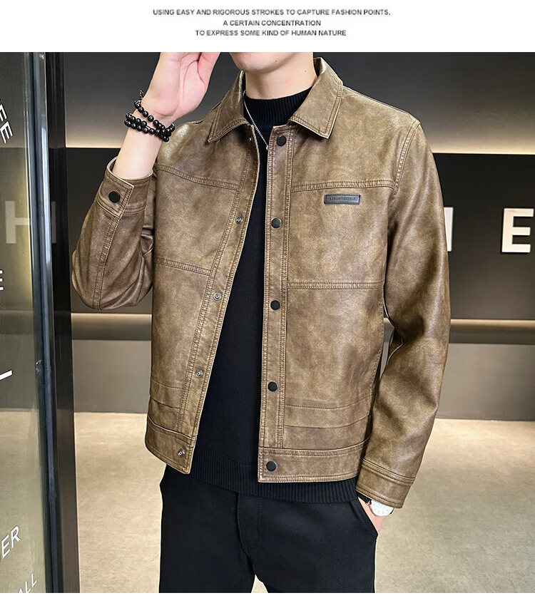 ROMON American fashion brand leather jacket men's autumn 2026 new retro trendy high-end motorcycle leather jacket top black XL