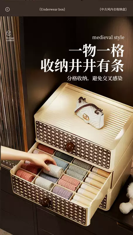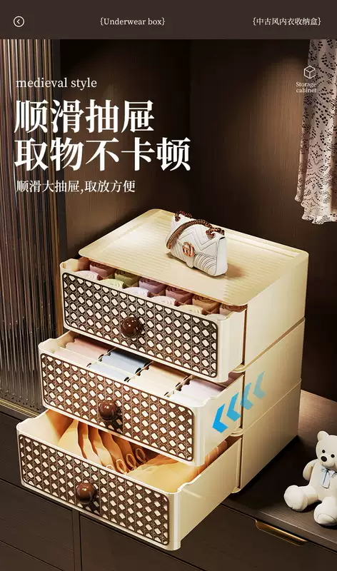 Yusenyi Cabinet Underwear Storage Box Drawer-type Dust-proof Underwear and Socks Organizing Basket Good-looking Storage Box for Close-fitting Clothes Unlatched 1-layer Underwear Box (Enlarged, Thickened, Sealed and Dust-proof)