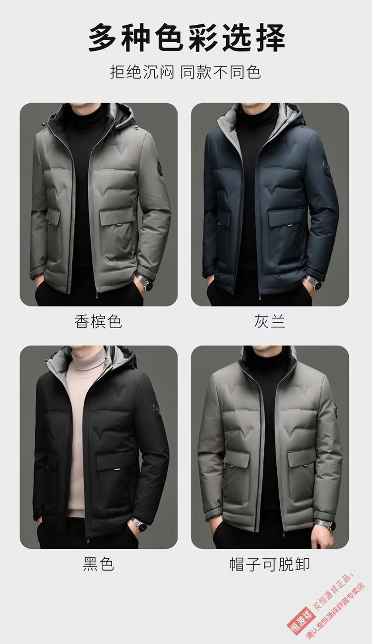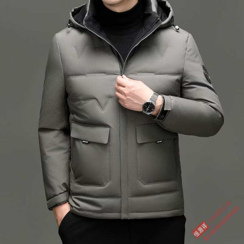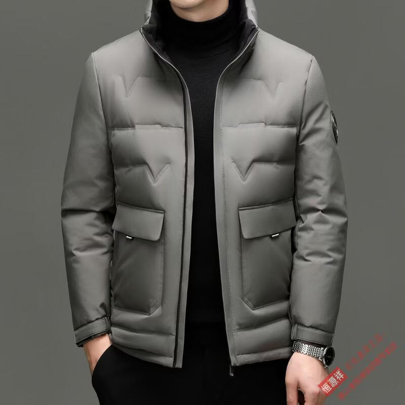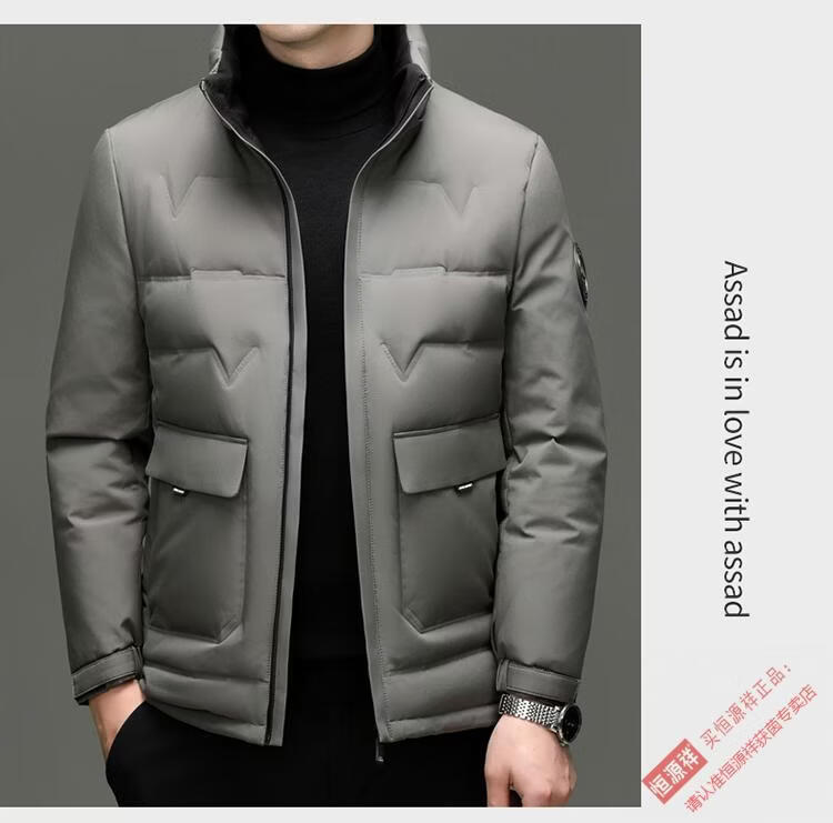 Hengyuanxiang's new 90 goose down down jacket short middle-aged business stand-up collar thickened casual warm winter men's jacket men's champagne color M
