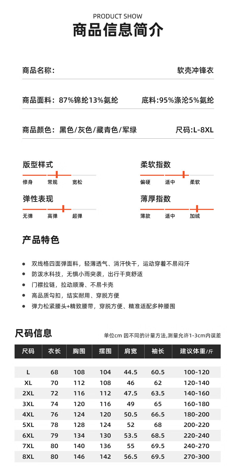 China (cm) 165 / 88-90 170 / 96-98 175 / 108-110 180 / 118-122 185 / 126-130