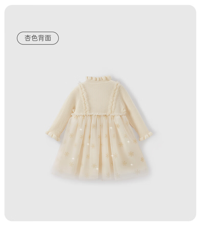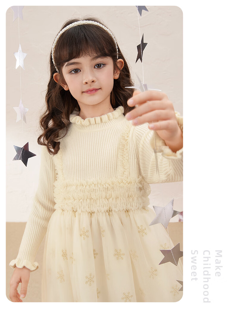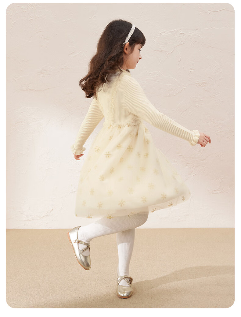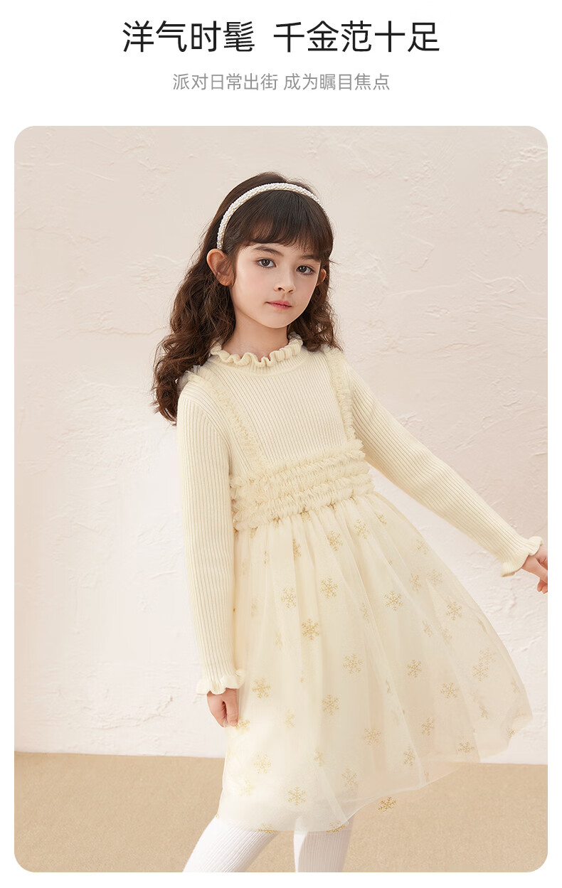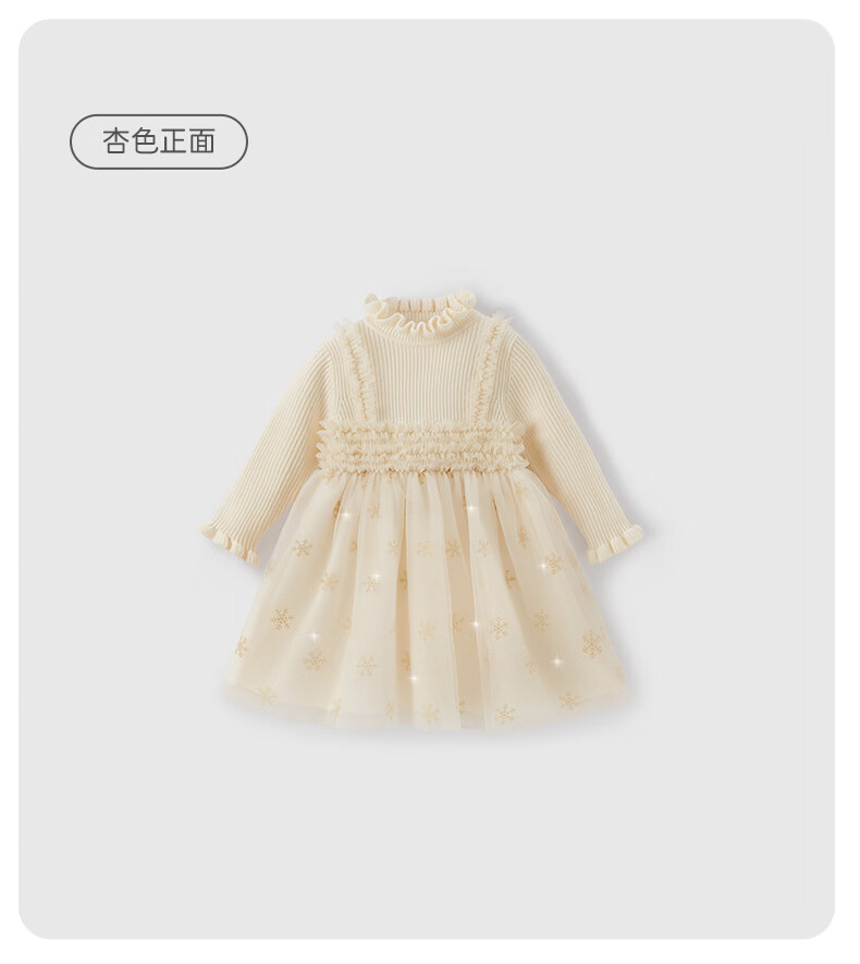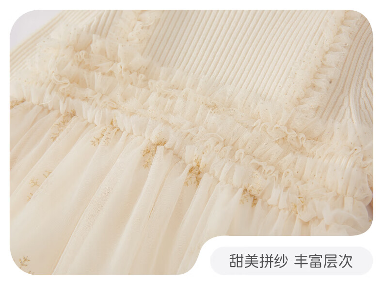 JELLYBABY high-end mesh princess dress 25 new winter style girls' woolen skirt plus velvet for older children, apricot 140