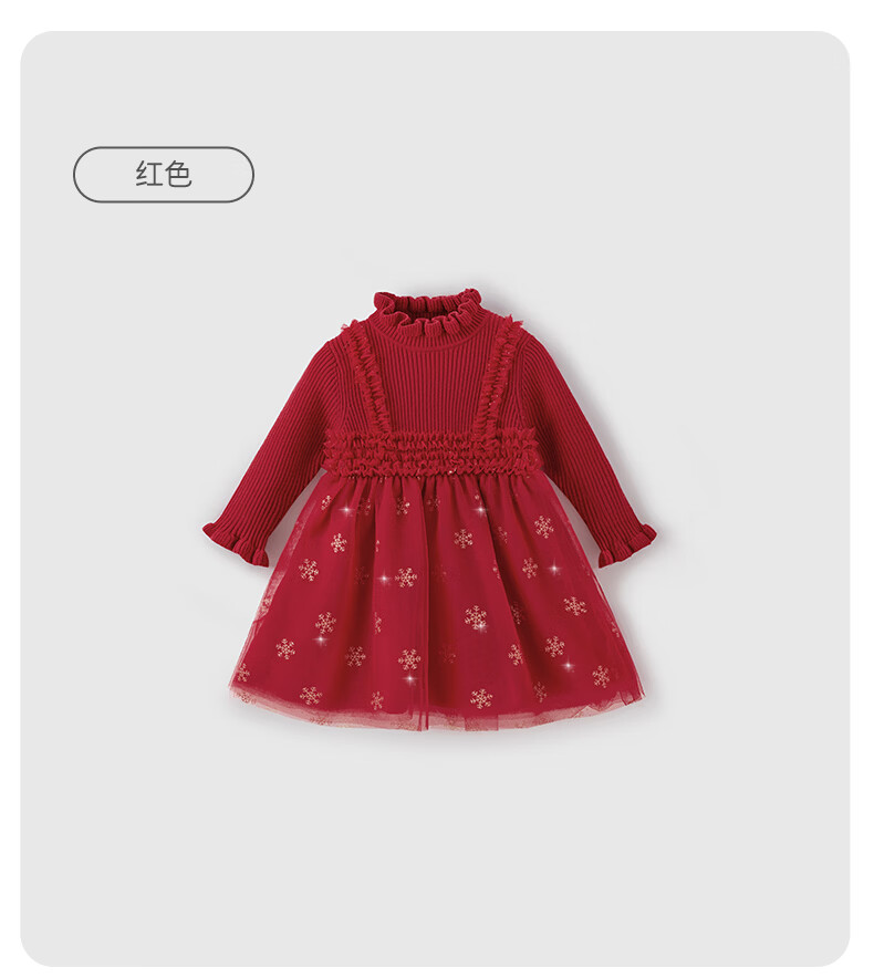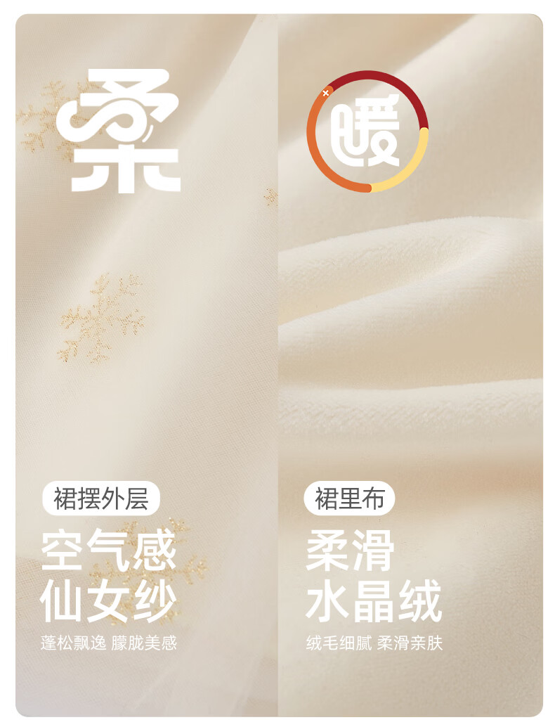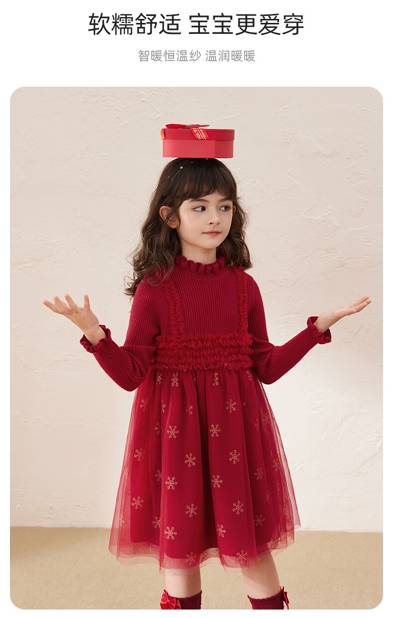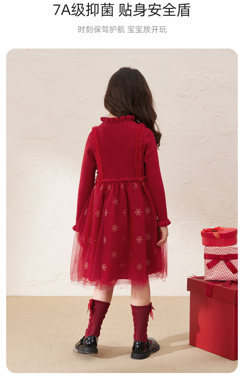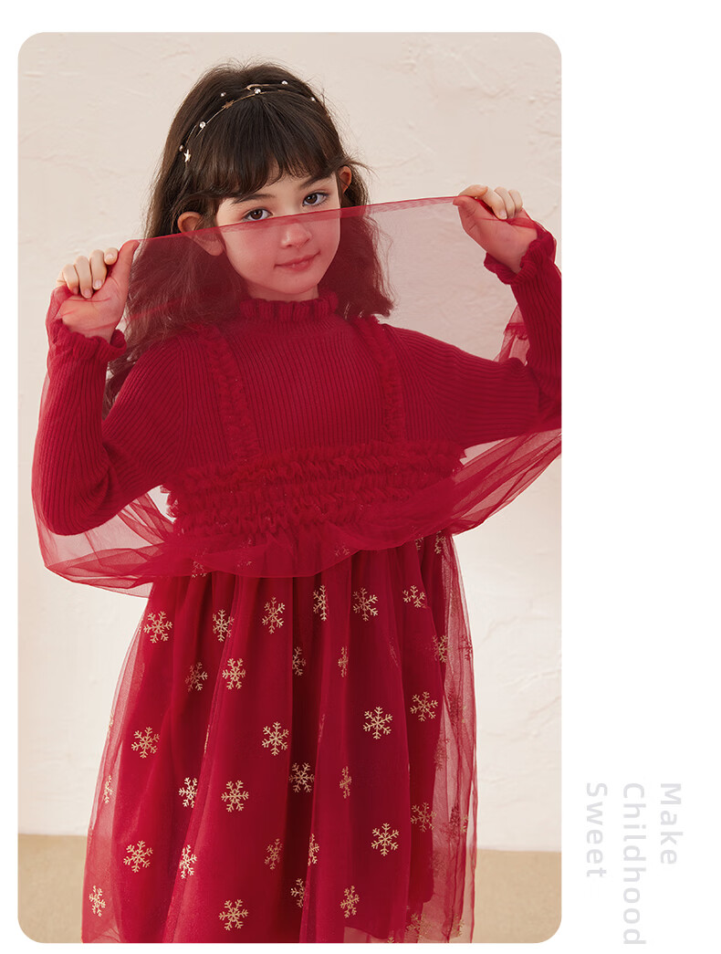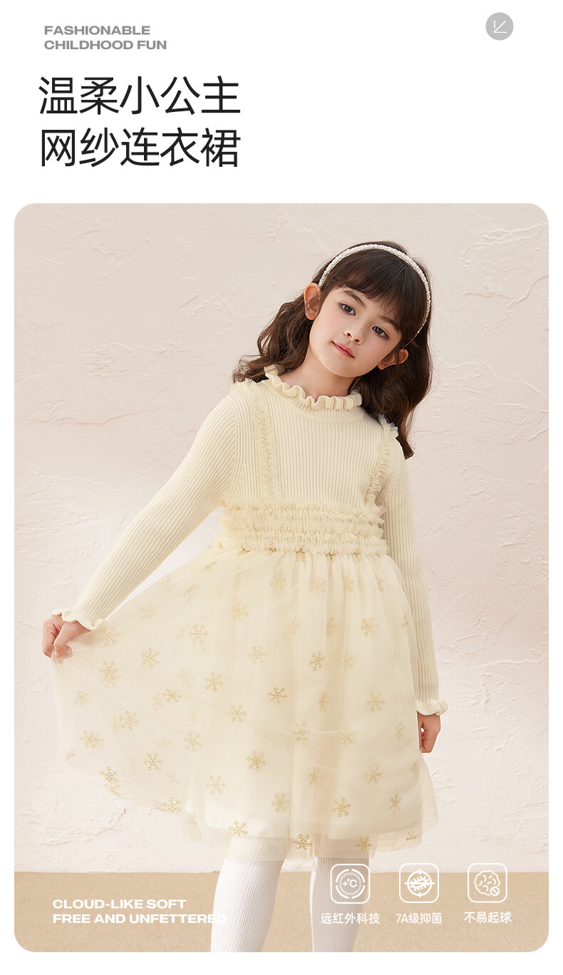 JELLYBABY high-end mesh princess dress 25 new winter style girls' woolen skirt plus velvet for older children, apricot 140