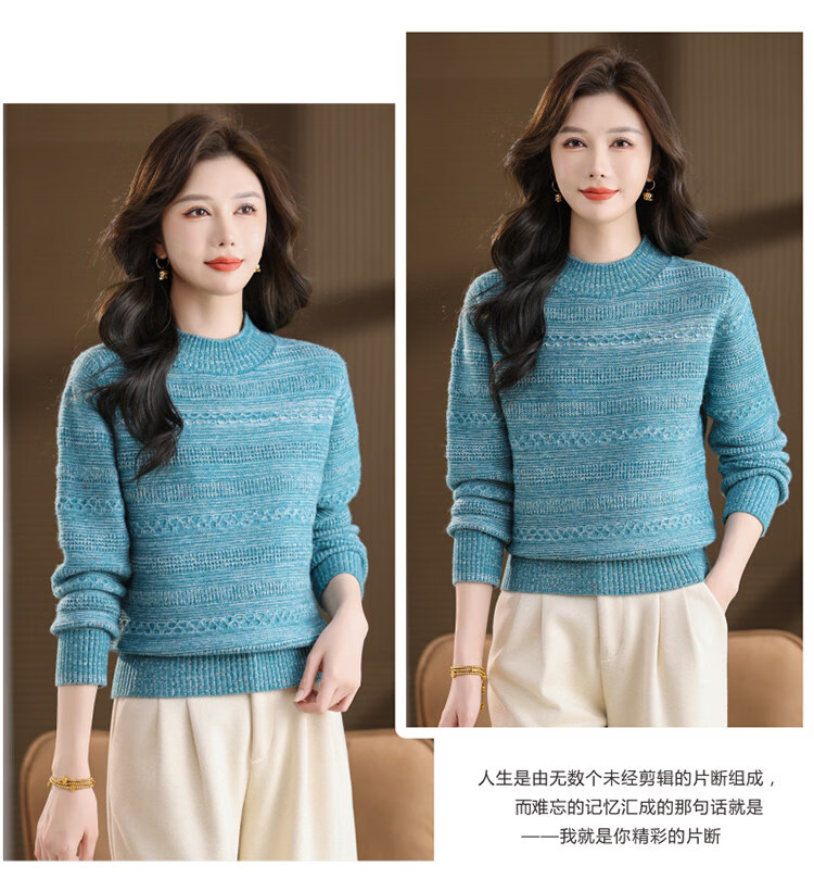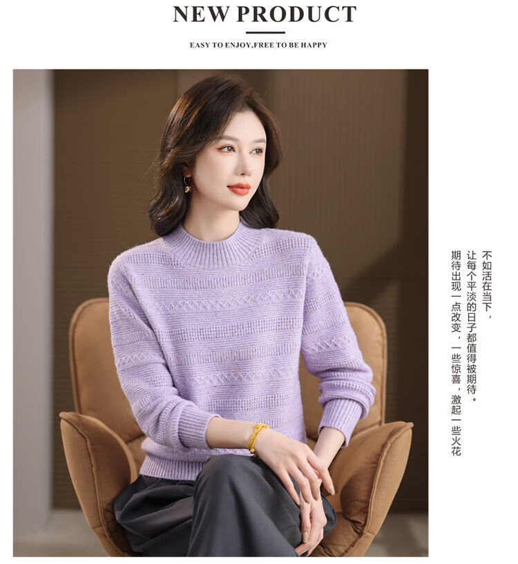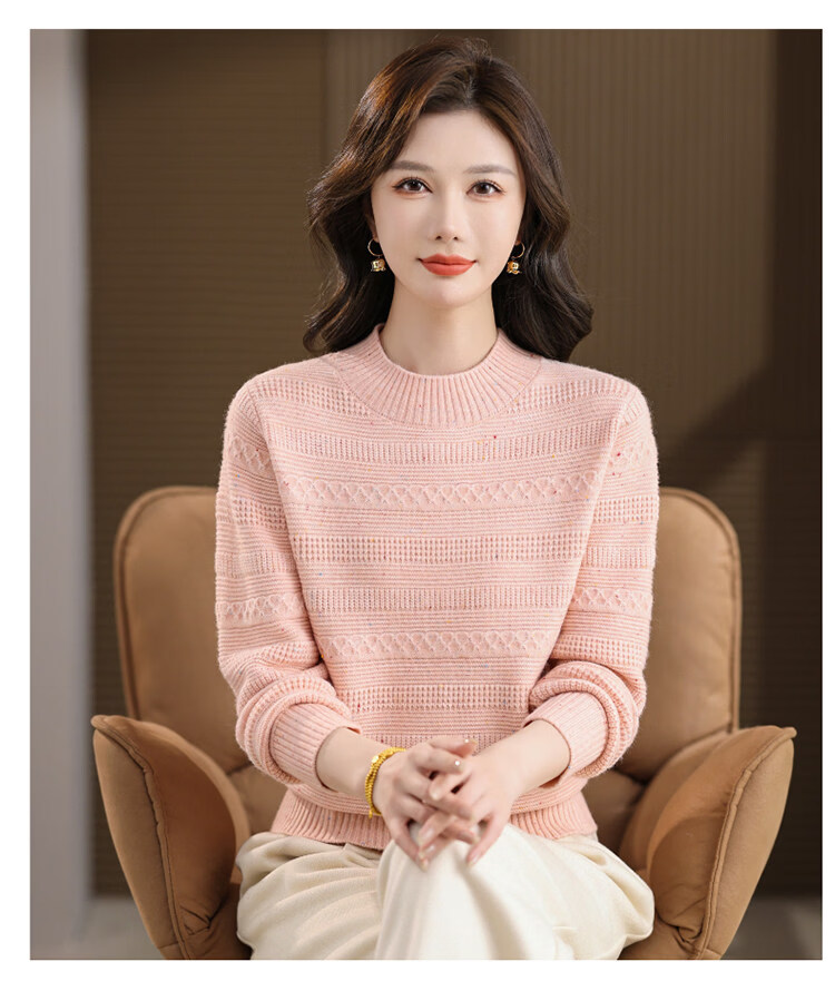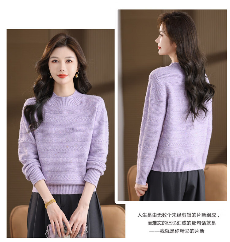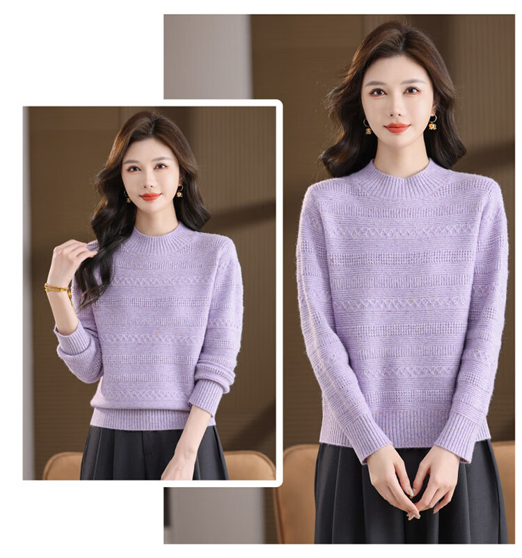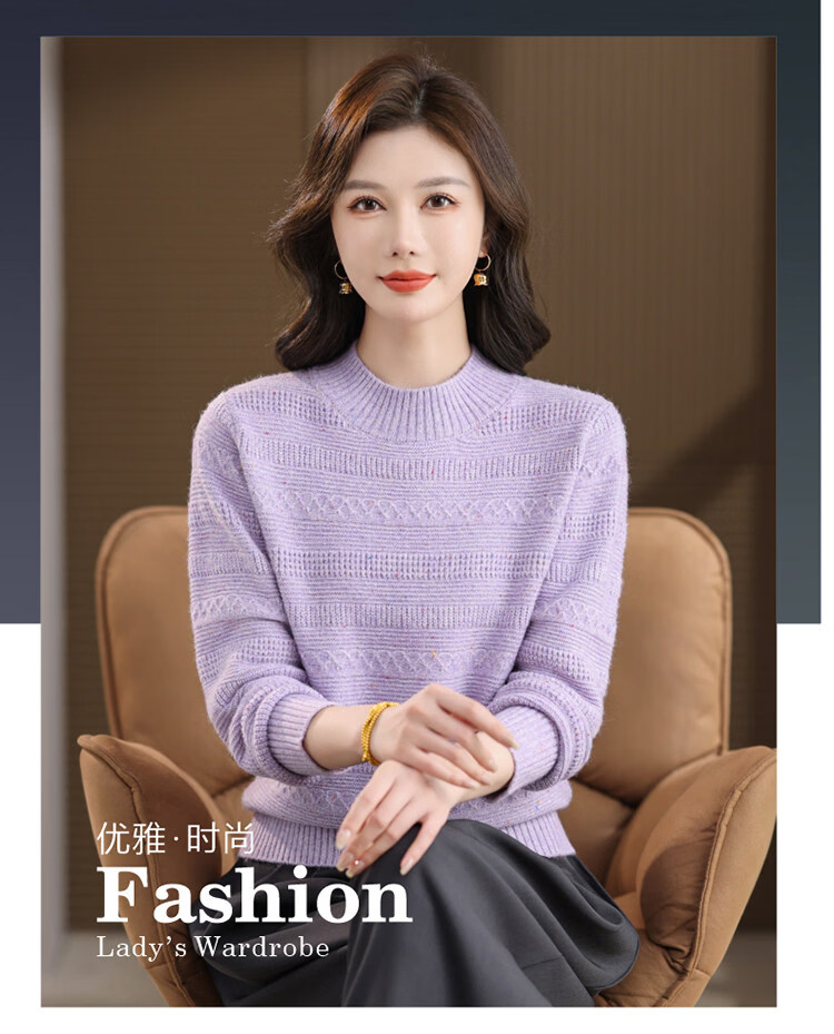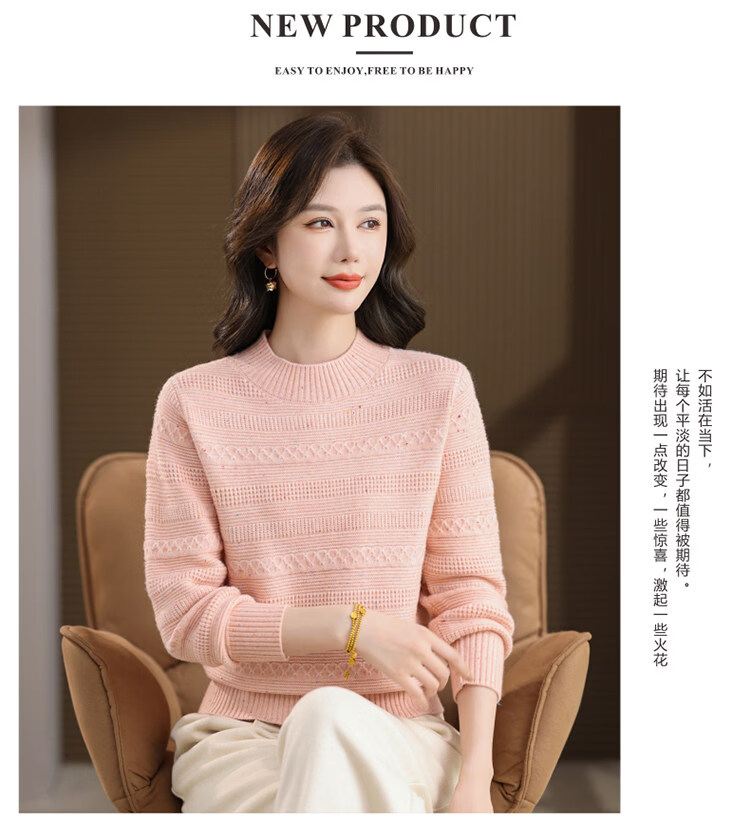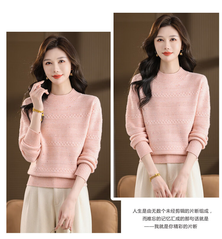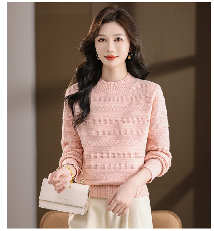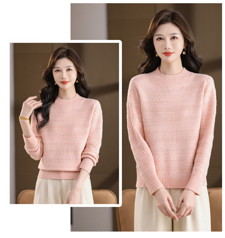 ROMON high-end half-turtleneck woolen sweater for women in autumn and winter new fashionable inner sweater fashionable age-reducing base sweater 100% pure wool-pink-Puyuan woolen sweater S suitable for 40-45 kg