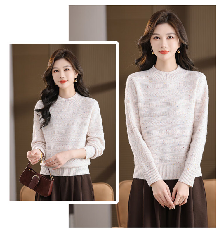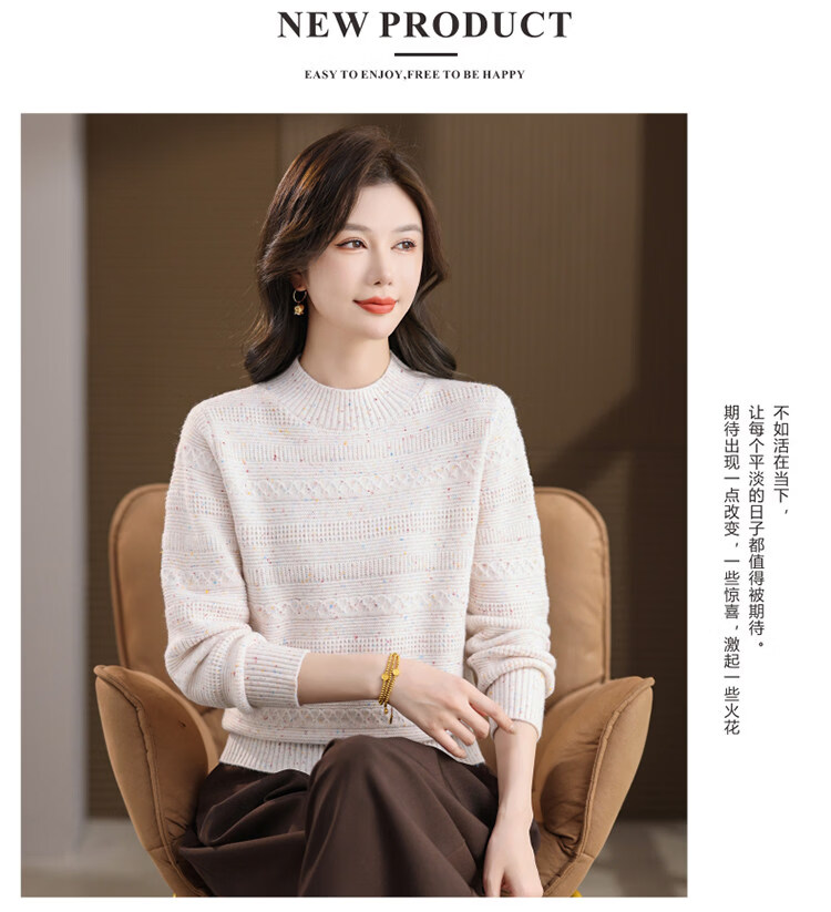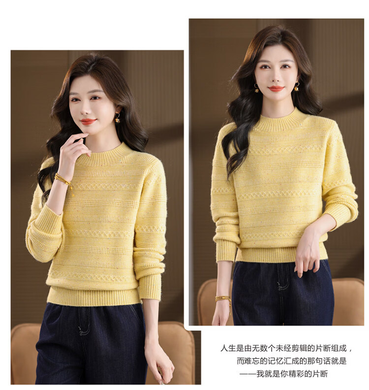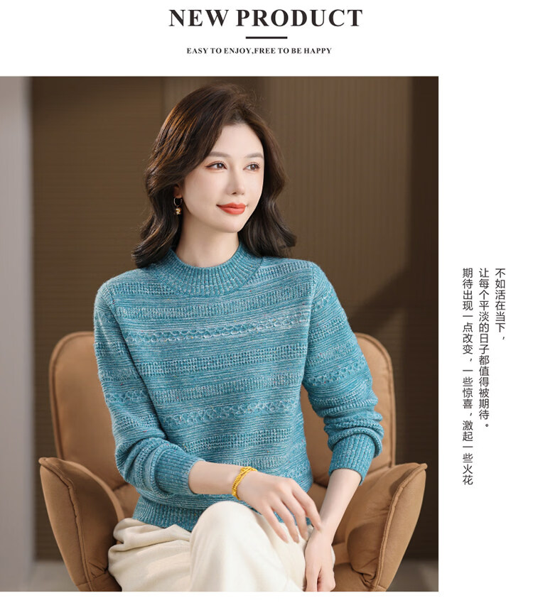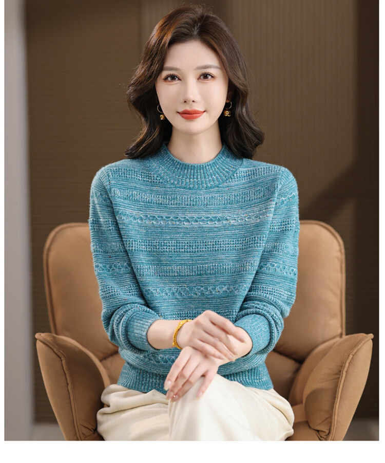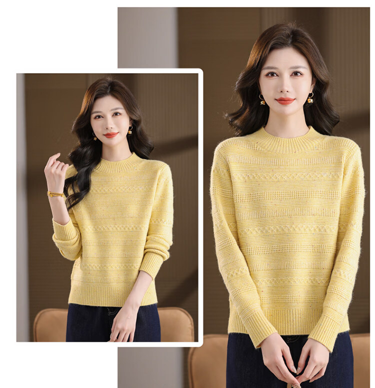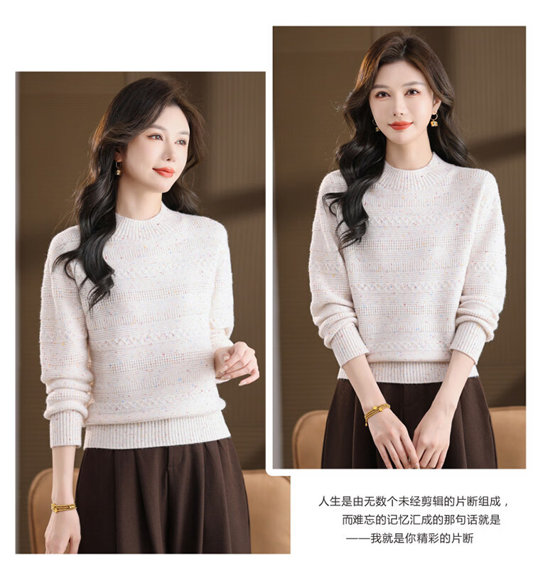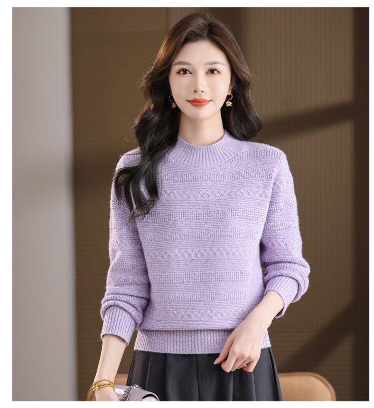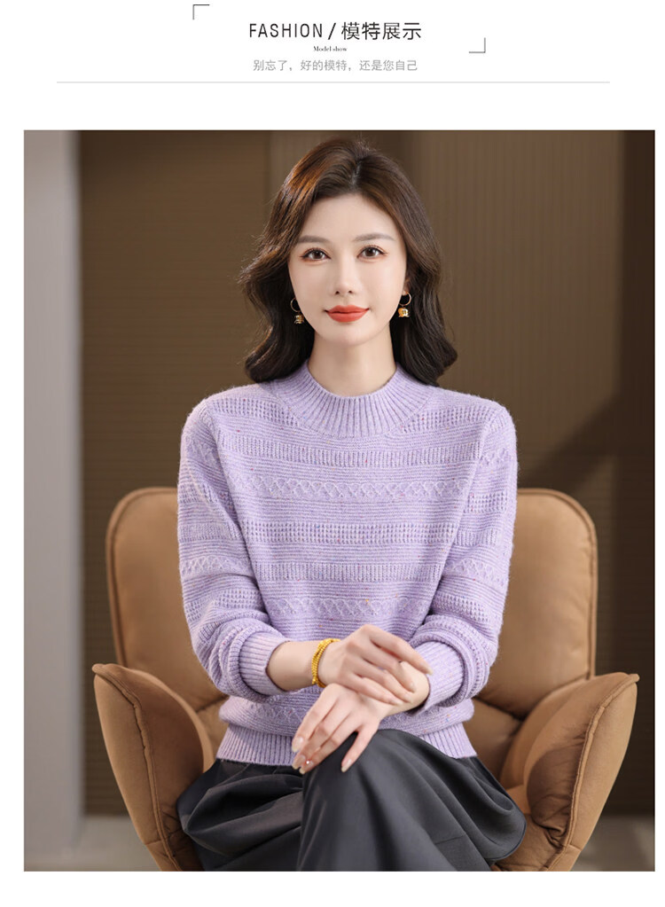 ROMON high-end half-turtleneck woolen sweater for women in autumn and winter new fashionable inner sweater fashionable age-reducing base sweater 100% pure wool-pink-Puyuan woolen sweater S suitable for 40-45 kg