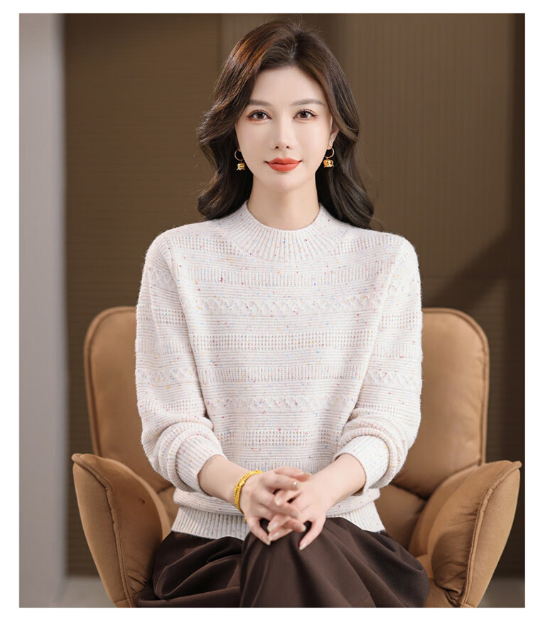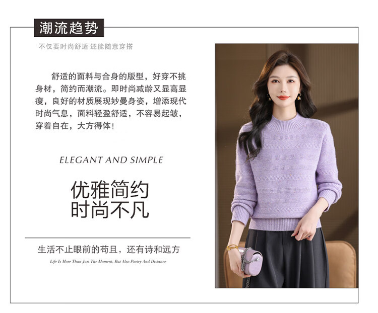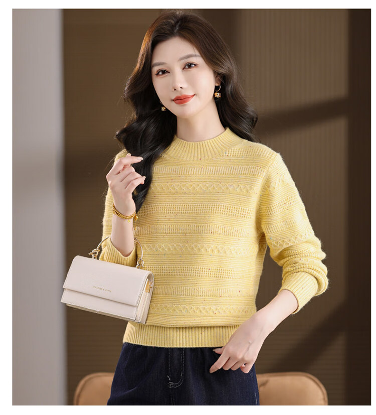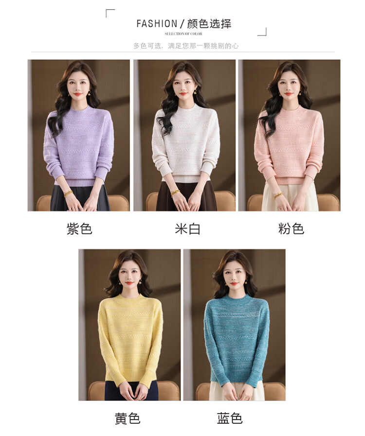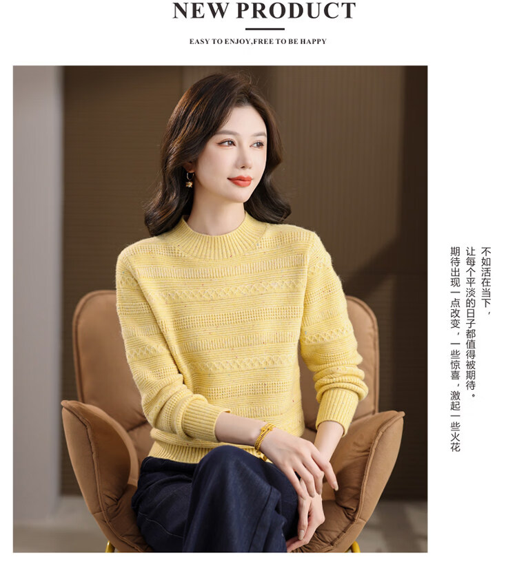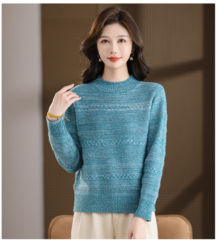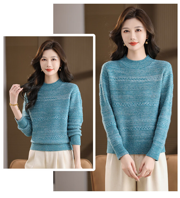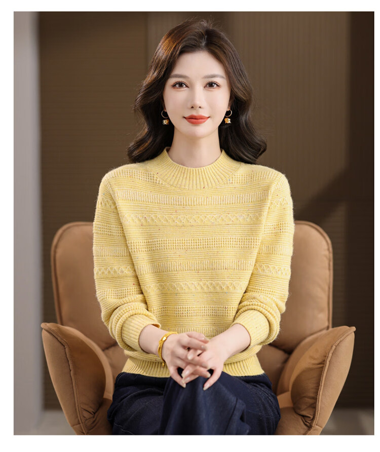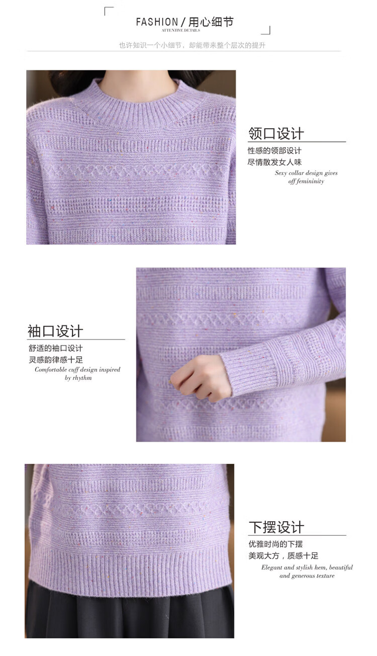 ROMON high-end half-turtleneck woolen sweater for women in autumn and winter new fashionable inner sweater fashionable age-reducing base sweater 100% pure wool-pink-Puyuan woolen sweater S suitable for 40-45 kg