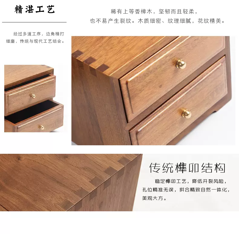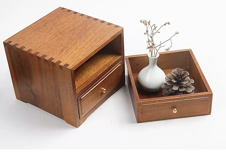 Yusen Yi Zhengtang desktop camphor walnut double-layer multi-layer drawer storage simple retro style jewelry jewelry box customization customization 1 piece 1 layer 1 piece