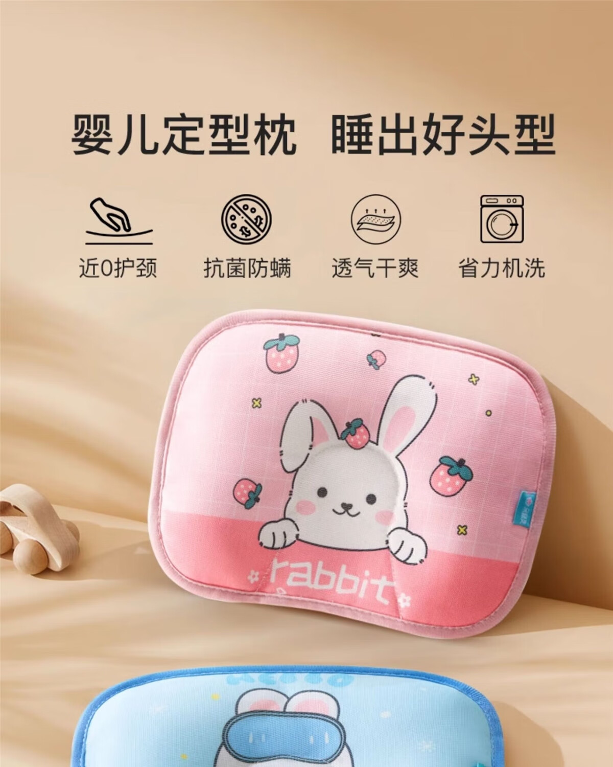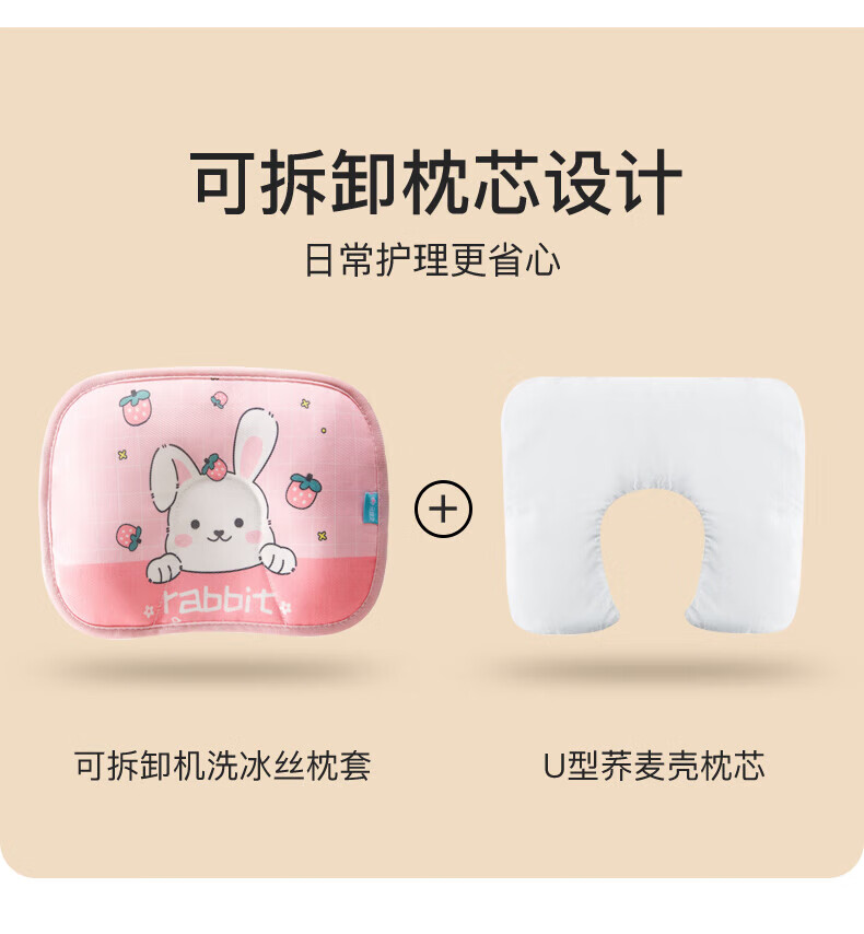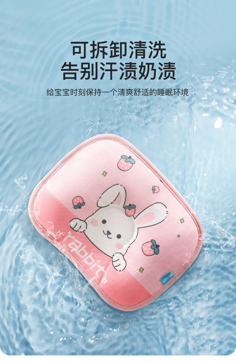 Duolinguo Ice Silk Styling Pillow Baby Pillow Baby 0-June Newborn Corrected Head Shape March Cooling Mat Summer Cooling Pillow Summer Removable Ice Silk Styling Buckwheat Pillow Rabbit Wave Points 28x20x1