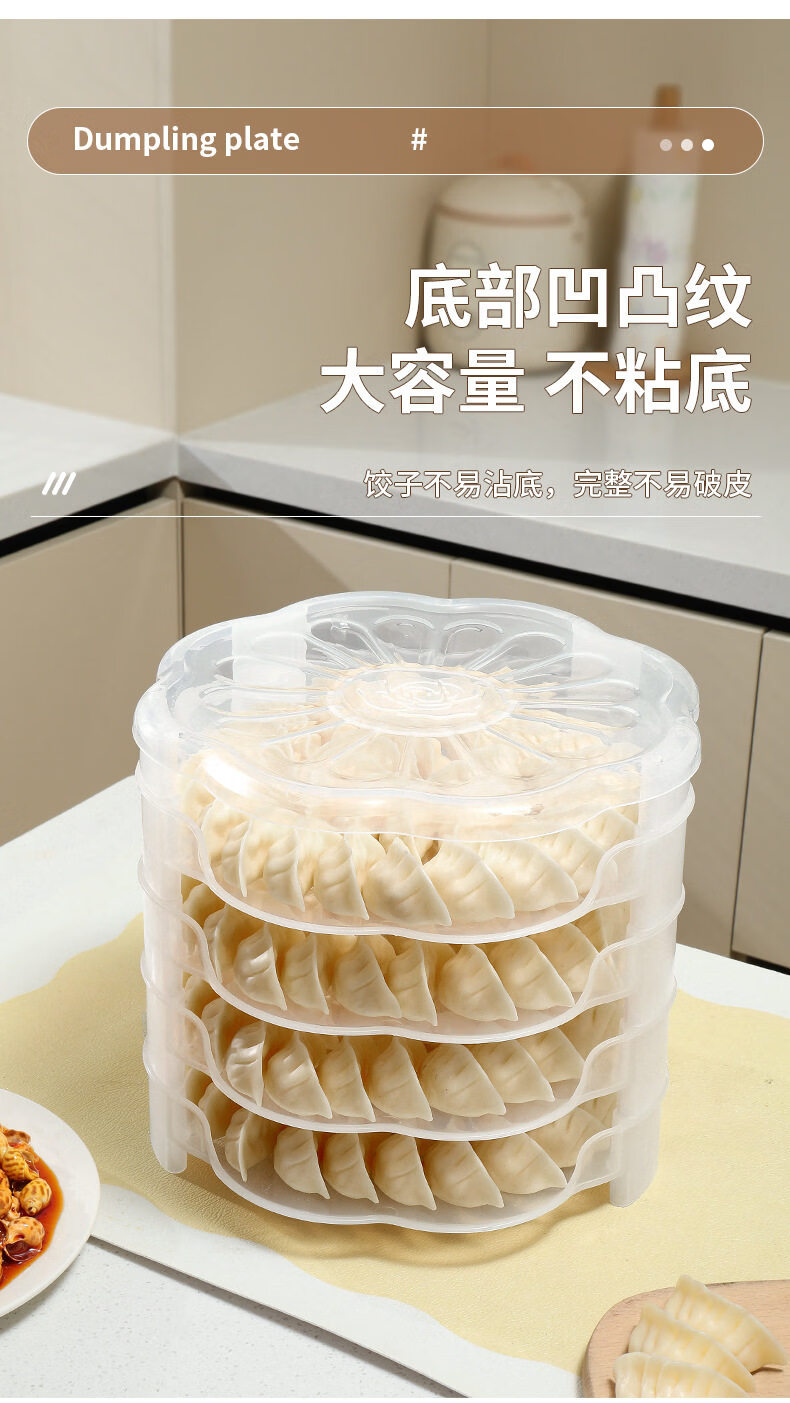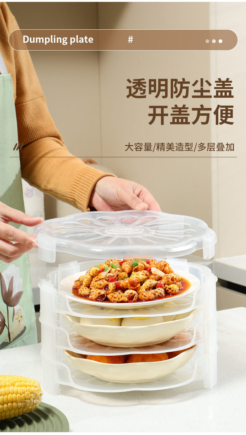 FGFN new multi-layer dumpling curtain household food-grade transparent anti-stick large-capacity cover curtain special tray for dumplings 1 layer 1 cover height 8 diameter 26cm