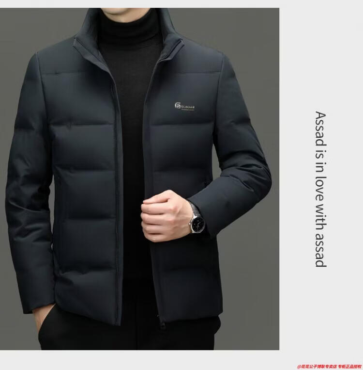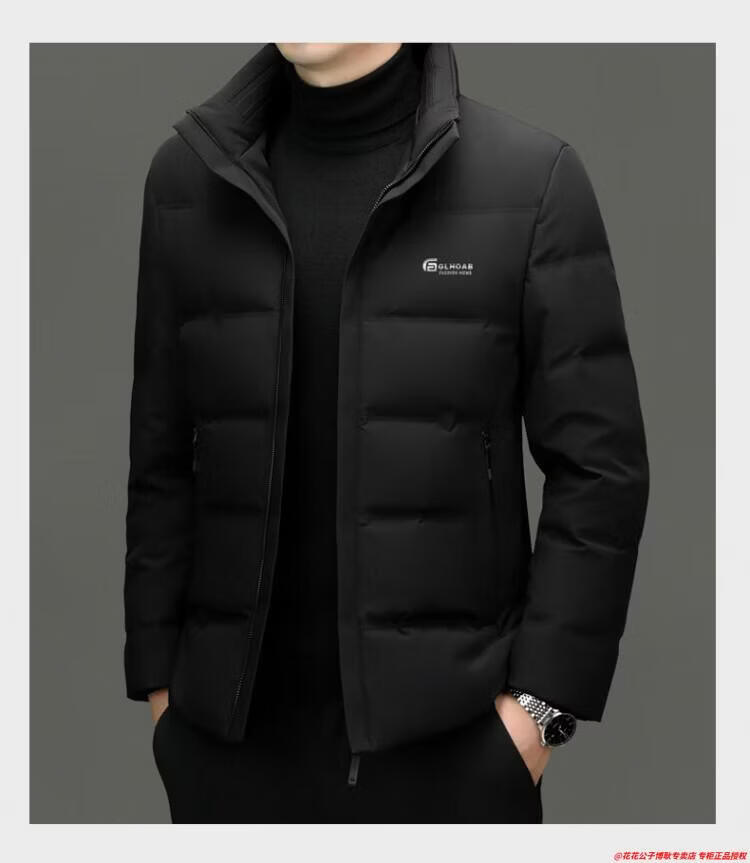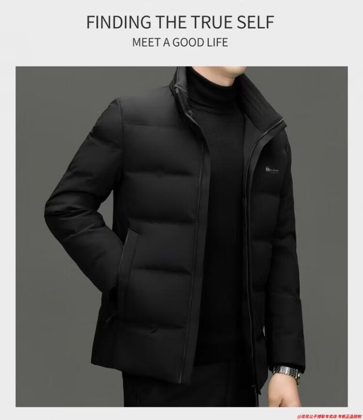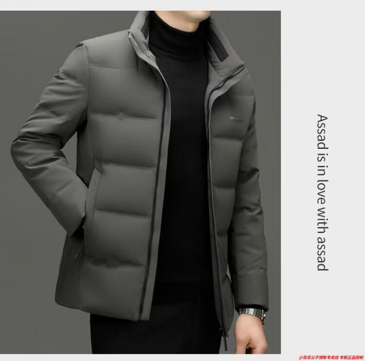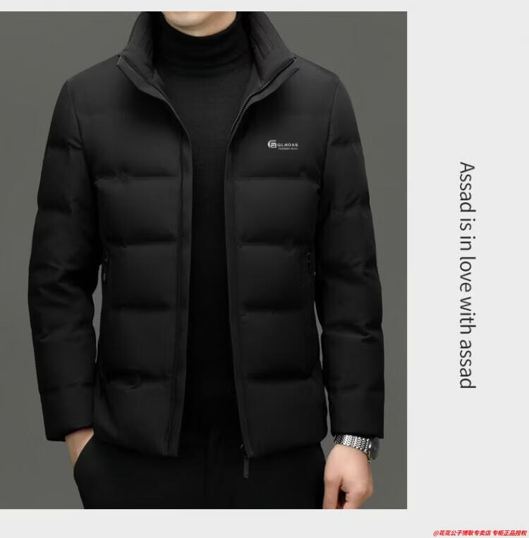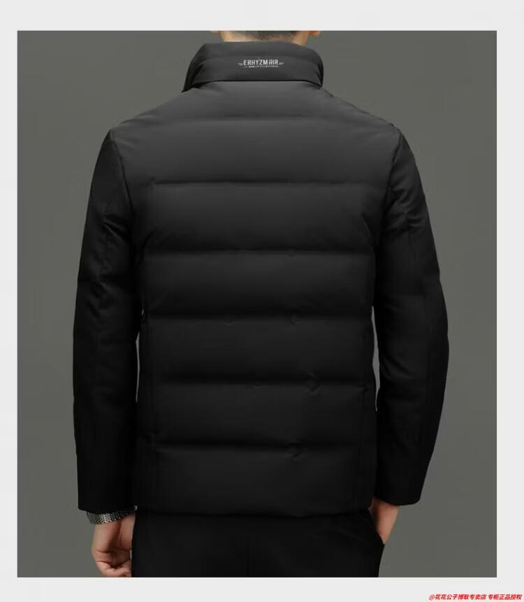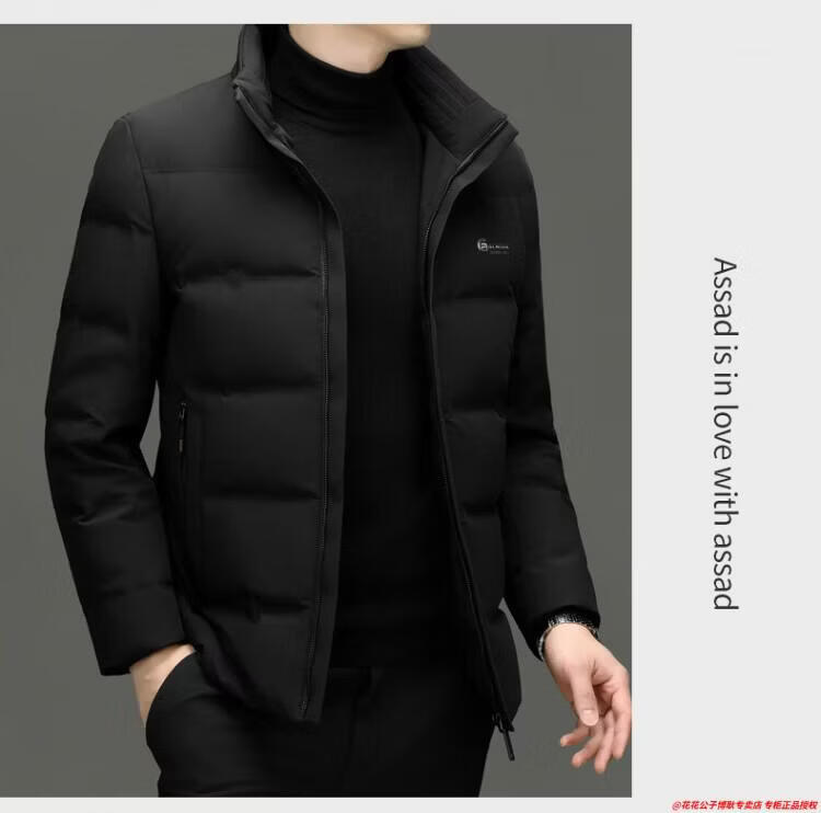 花花公子冬季加厚保暖90%鸭绒羽绒服男装御寒服短款立领防风鸭绒夹克男 黑色 2XL 185(建议153-170斤)