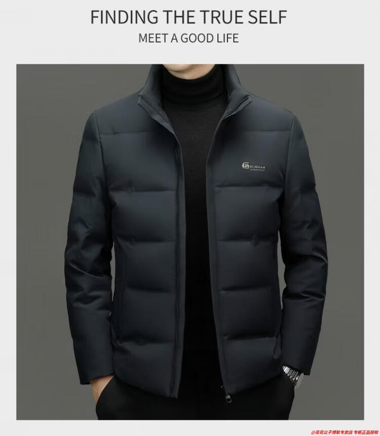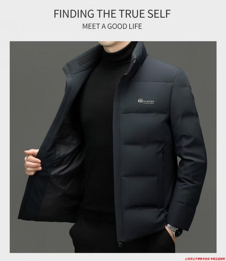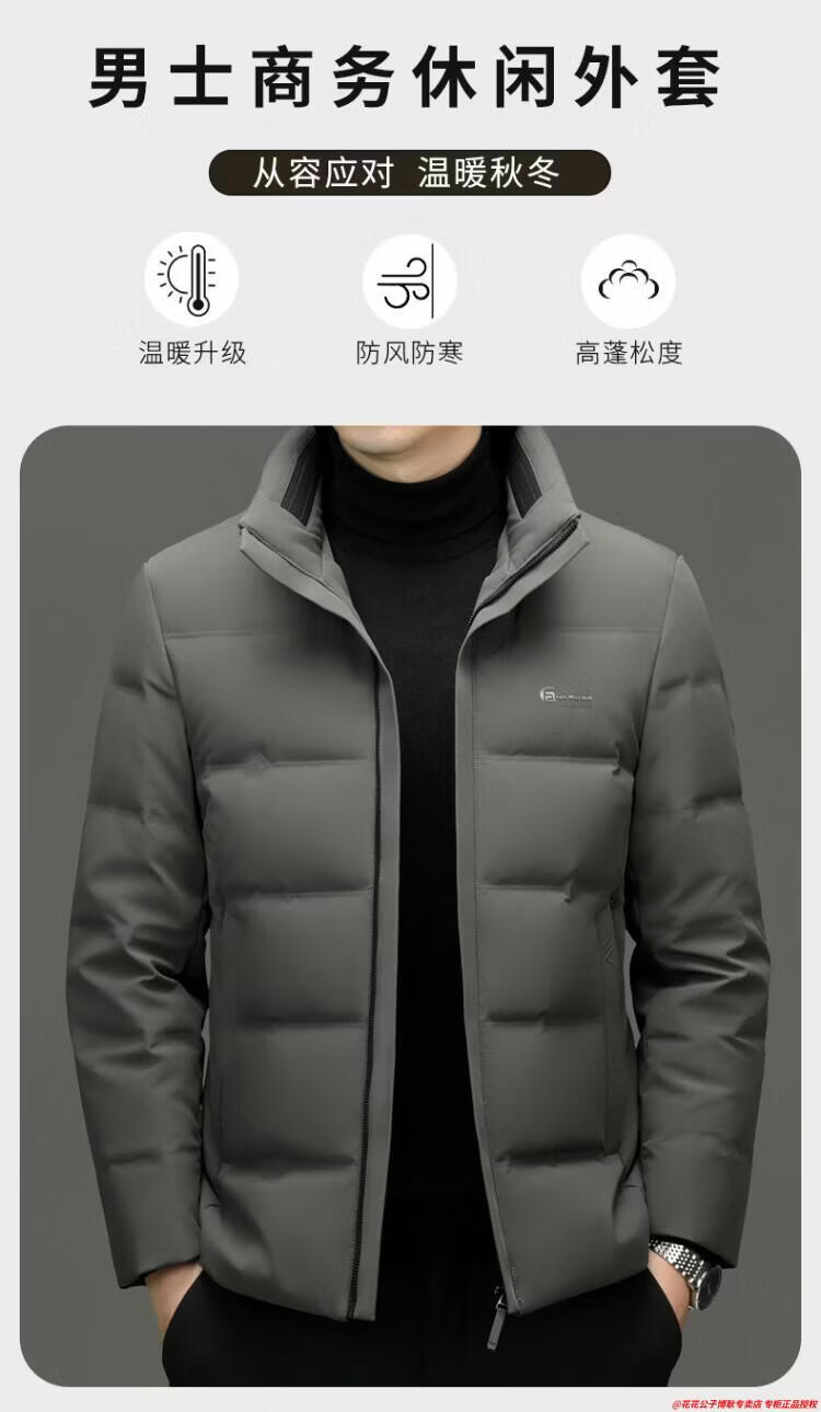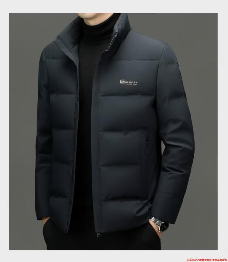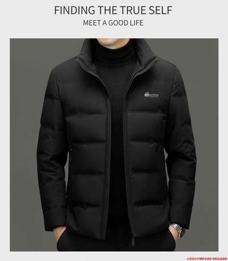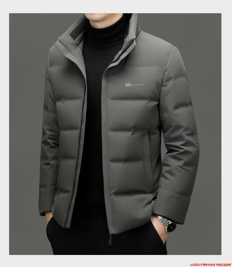 花花公子冬季加厚保暖90%鸭绒羽绒服男装御寒服短款立领防风鸭绒夹克男 黑色 2XL 185(建议153-170斤)