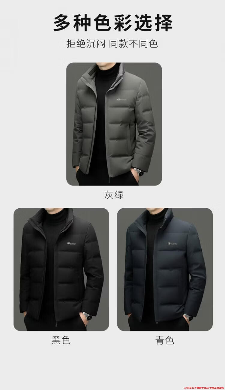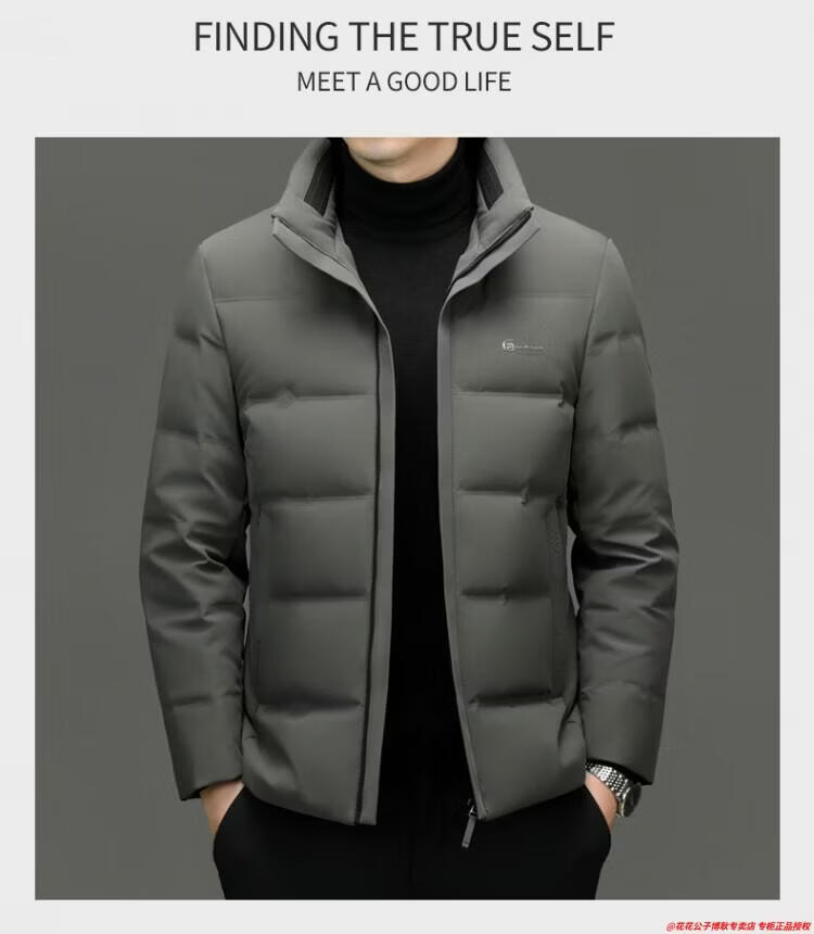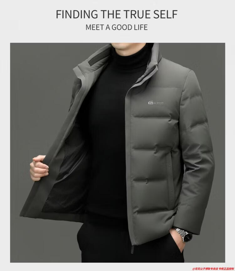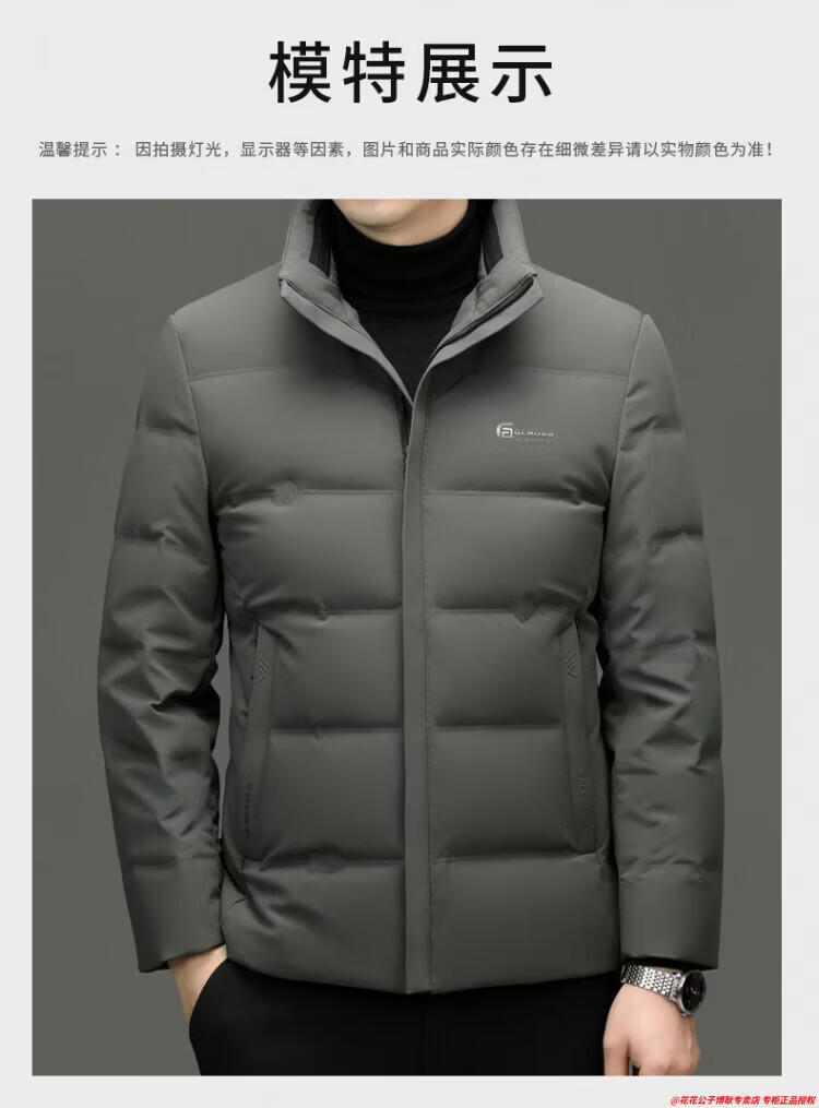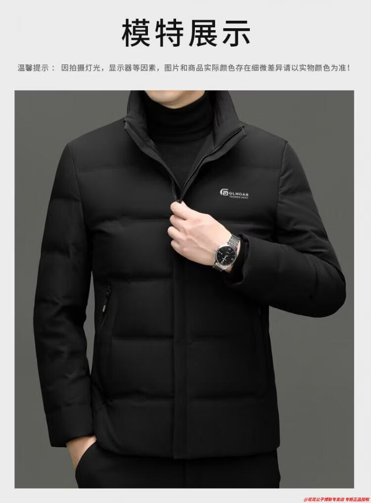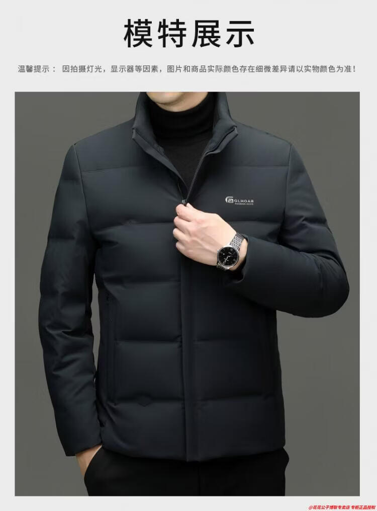 花花公子冬季加厚保暖90%鸭绒羽绒服男装御寒服短款立领防风鸭绒夹克男 黑色 2XL 185(建议153-170斤)
