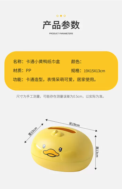 Yusenyi Living Room Cute Tissue Box Home Kitchen Creative Cartoon Napkin Box Bedroom Coffee Table Desktop Tissue Paper Storage Box Little Yellow Duck