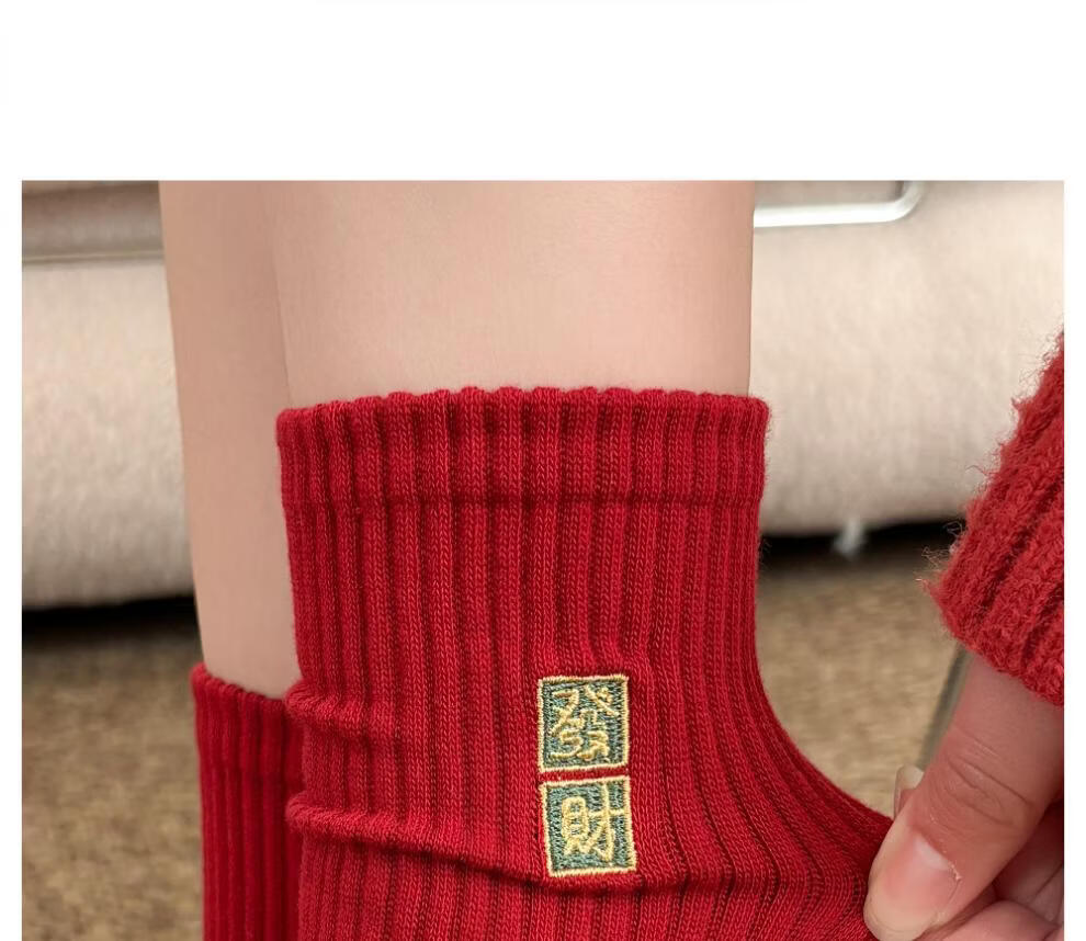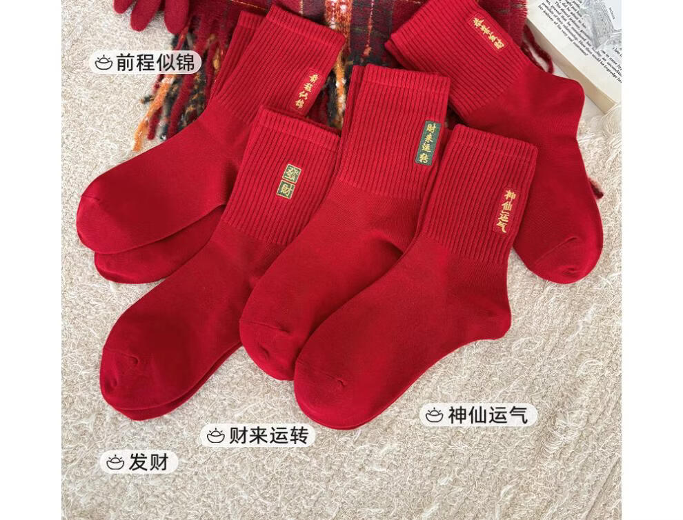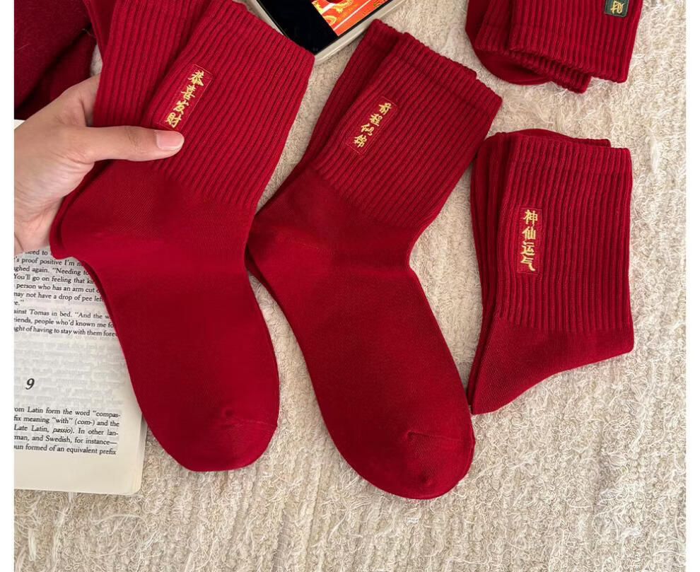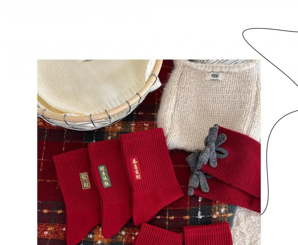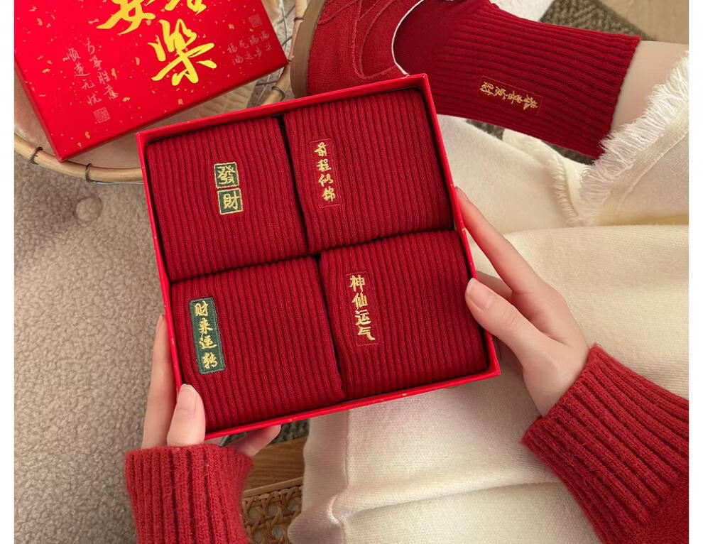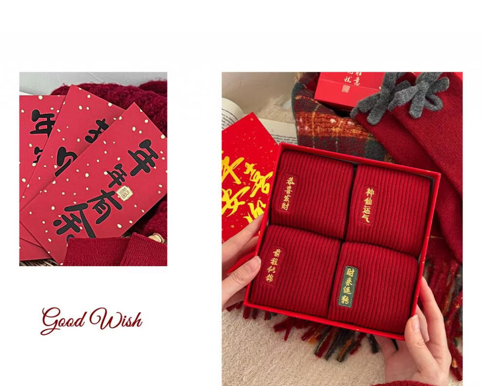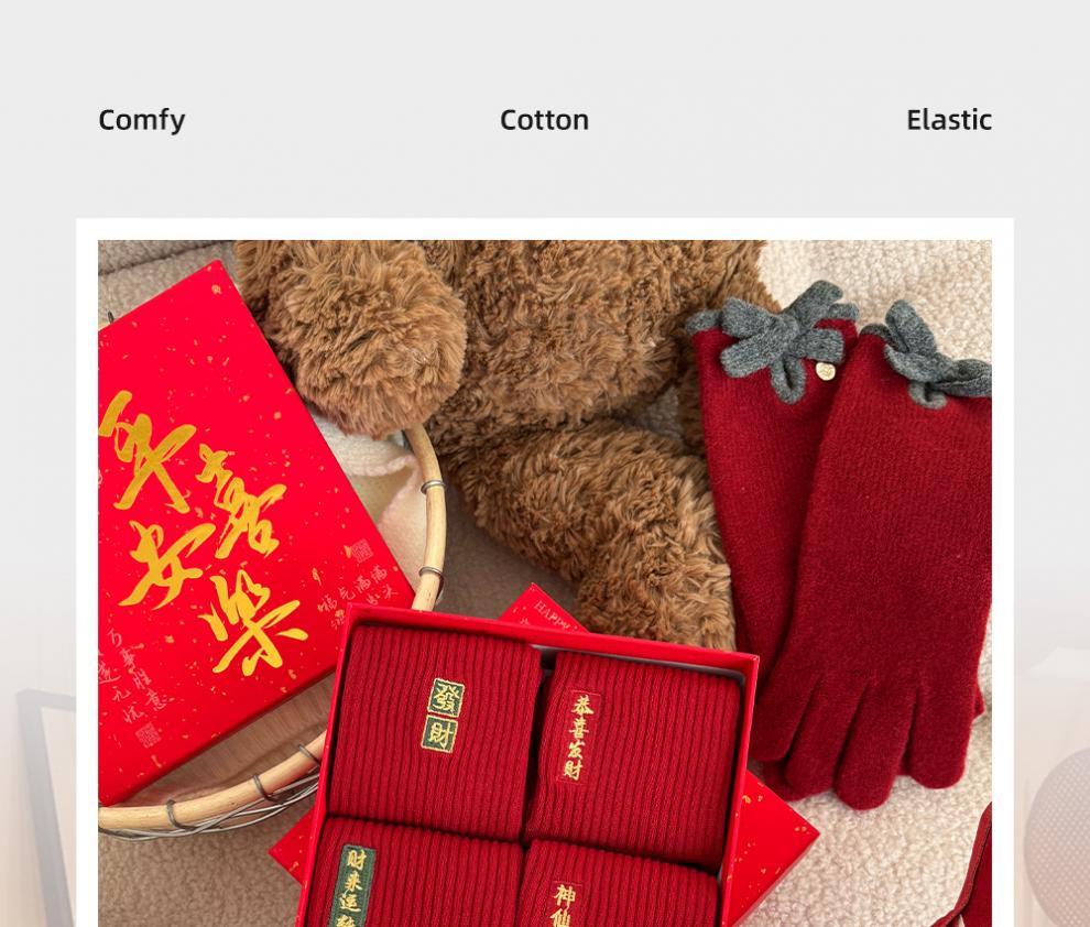 JSUAY2026 New Year Horse Year Animal Year Big Red Socks Women's Medium Tube Cotton Socks Wedding Festive Red Socks Wholesale Fairy Luck + Congratulations on Prosperity + Bright Future + Prosperity Gift Box Gift Bag 4 Pairs