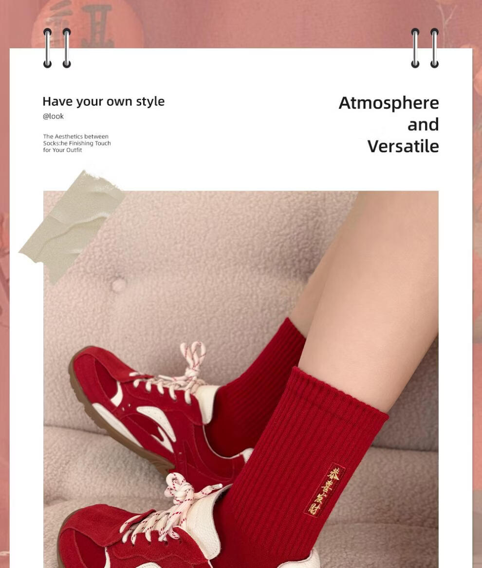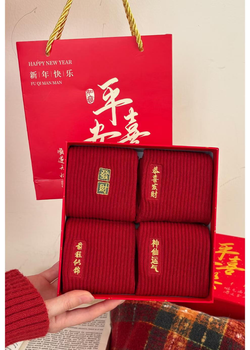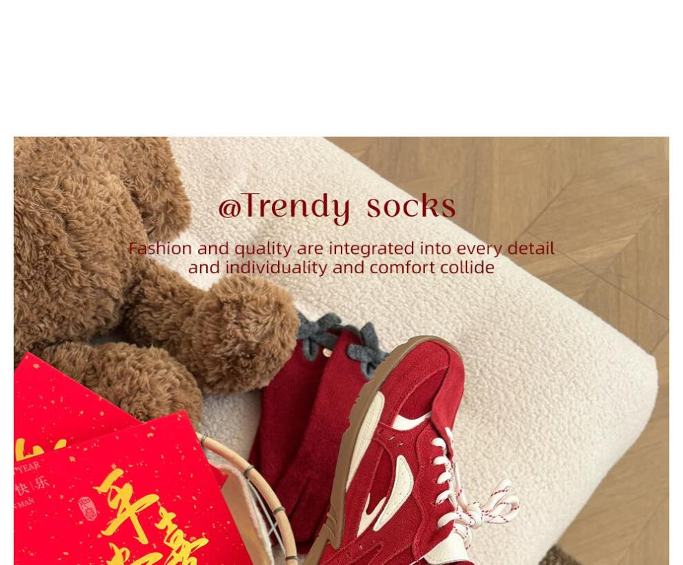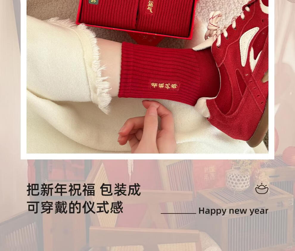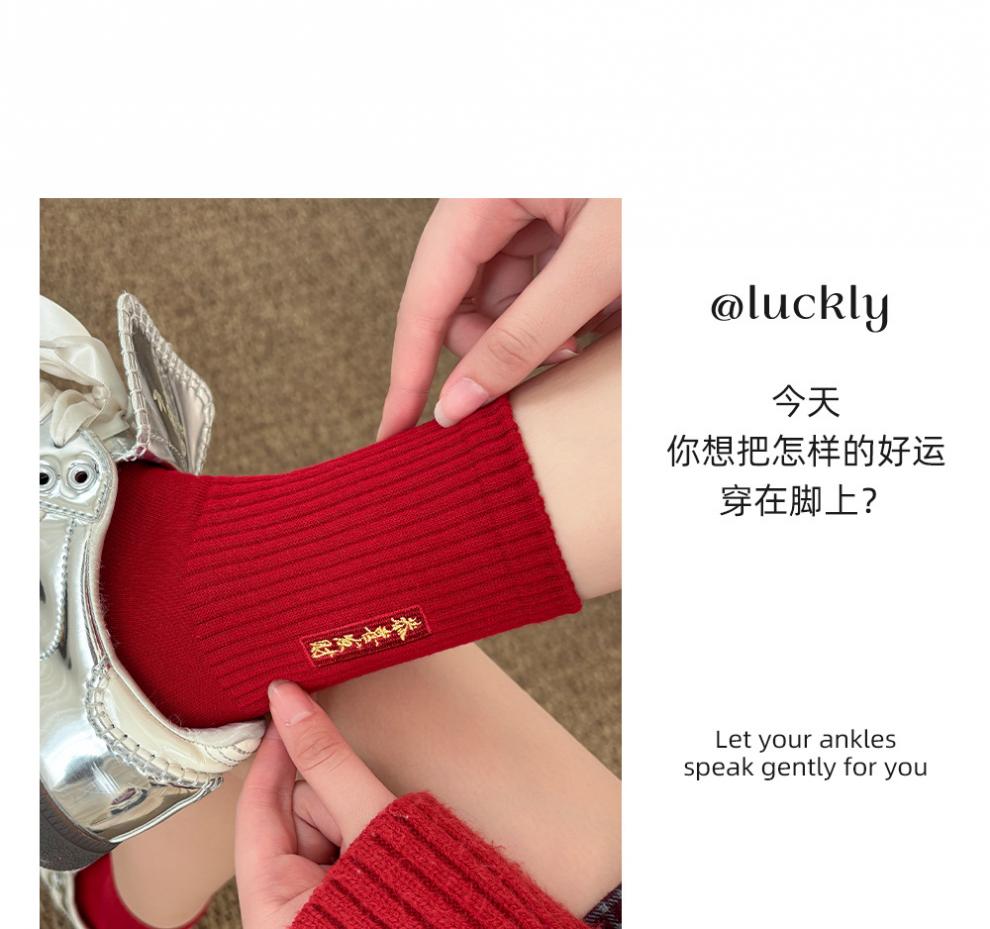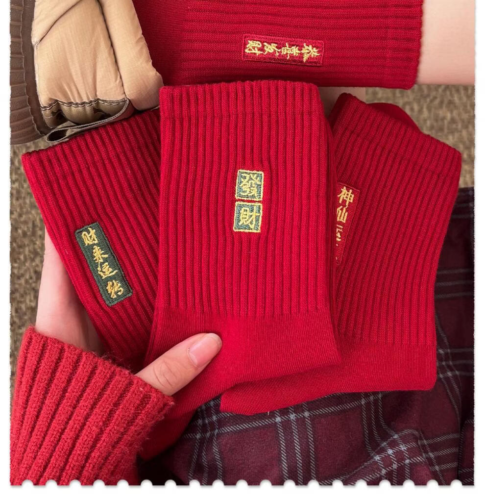 JSUAY2026 New Year Horse Year Animal Year Big Red Socks Women's Medium Tube Cotton Socks Wedding Festive Red Socks Wholesale Fairy Luck + Congratulations on Prosperity + Bright Future + Prosperity Gift Box Gift Bag 4 Pairs