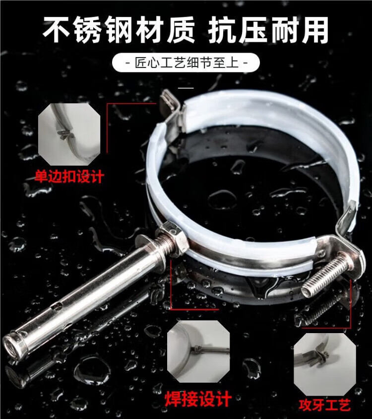 Xu ordered stainless steel pull-and-explode pipe code hoop hanging code pipe clip buckle PVC pipe buckle rubber-coated drainage pipe 110 water pipe lift buckle 40mm stainless steel pull-and-explode 1 piece