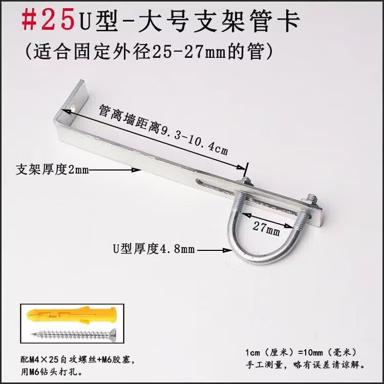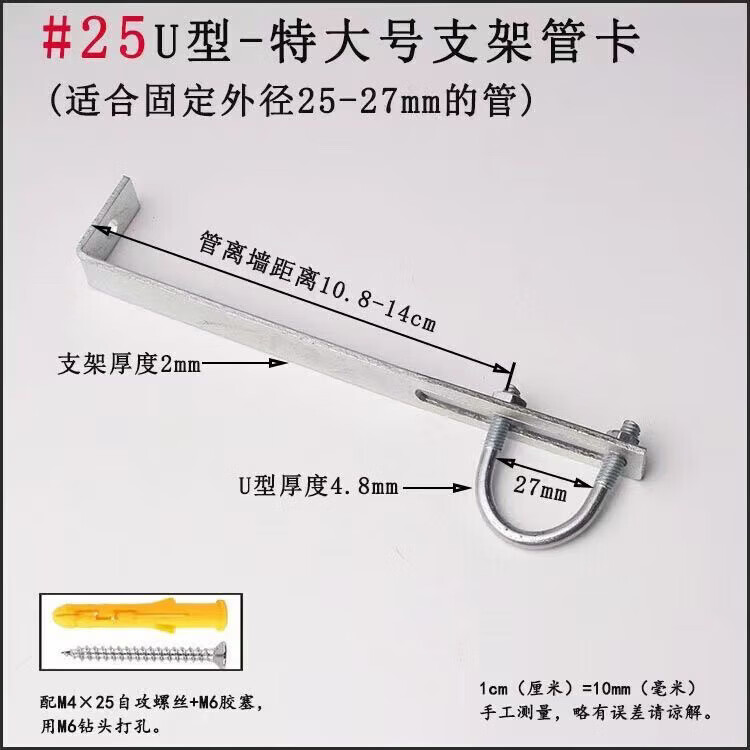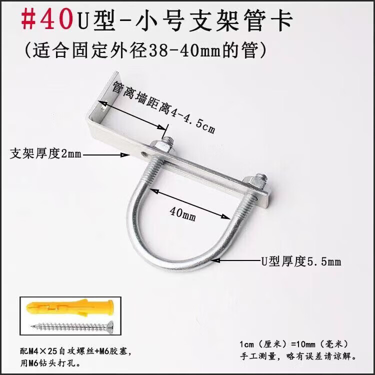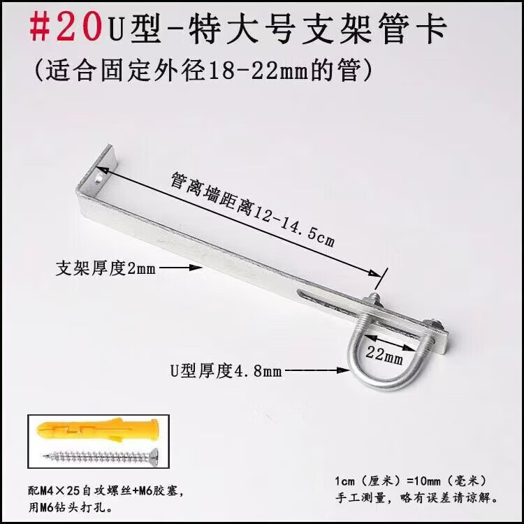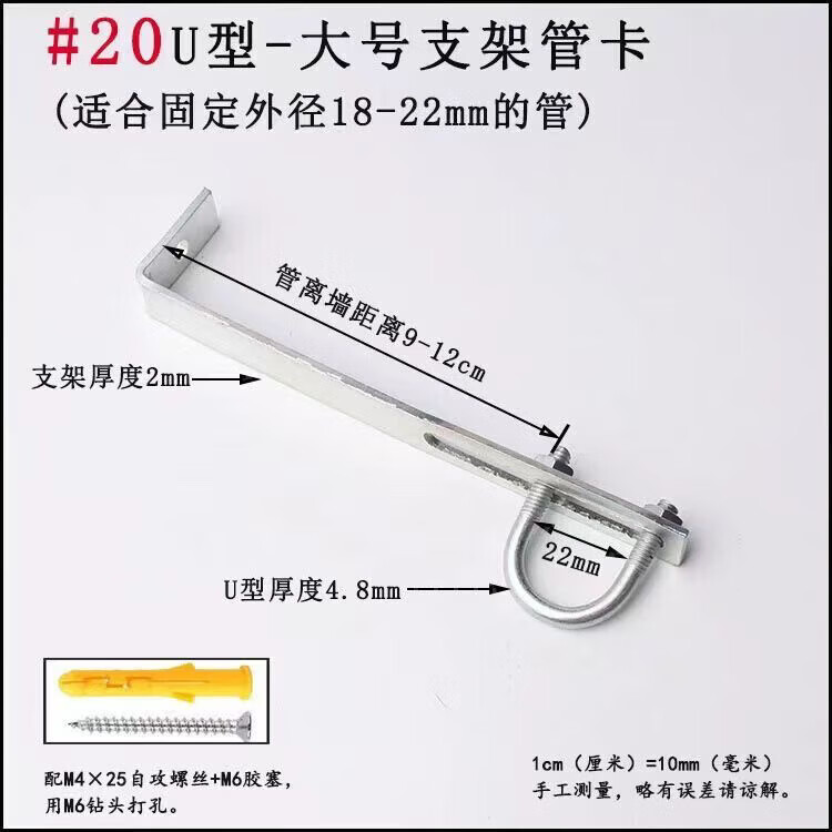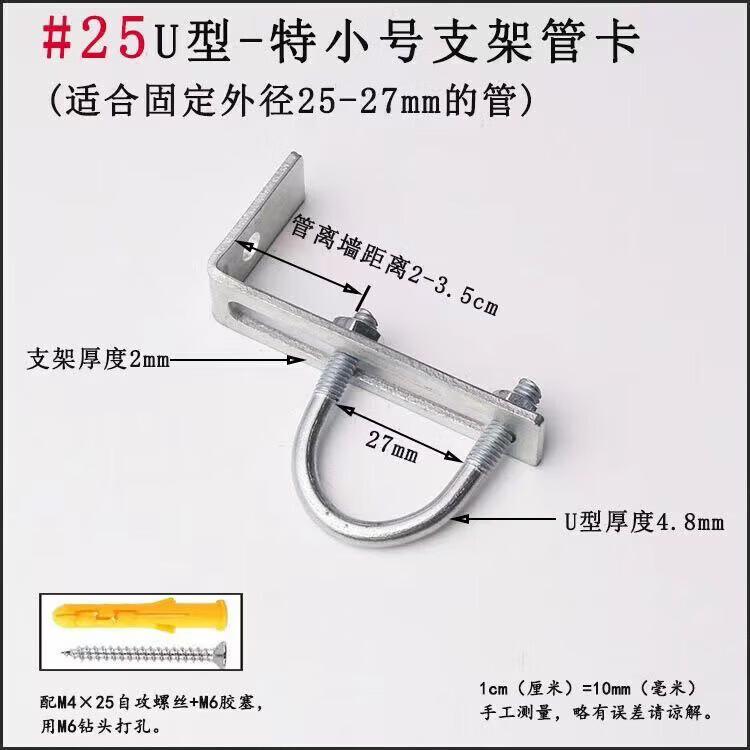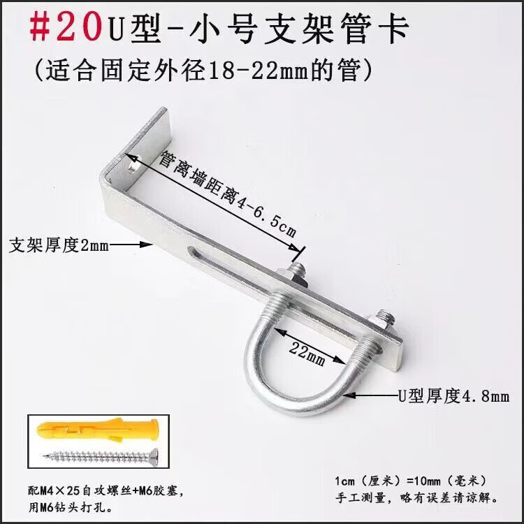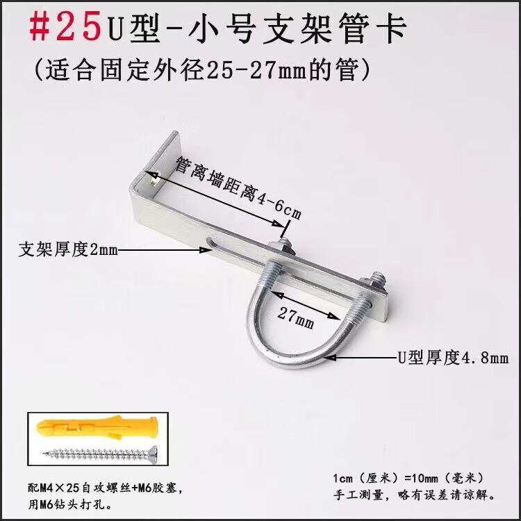 Xu Dingtian gas fire pipe U-shaped pipe clamp bracket is drilled to fix the 20 25 pipe bracket with plastic expansion screws #20U type extra small pipe clamp 1 piece with screw rubber plug
