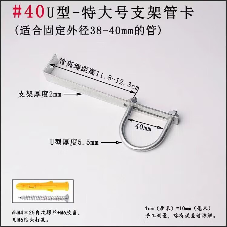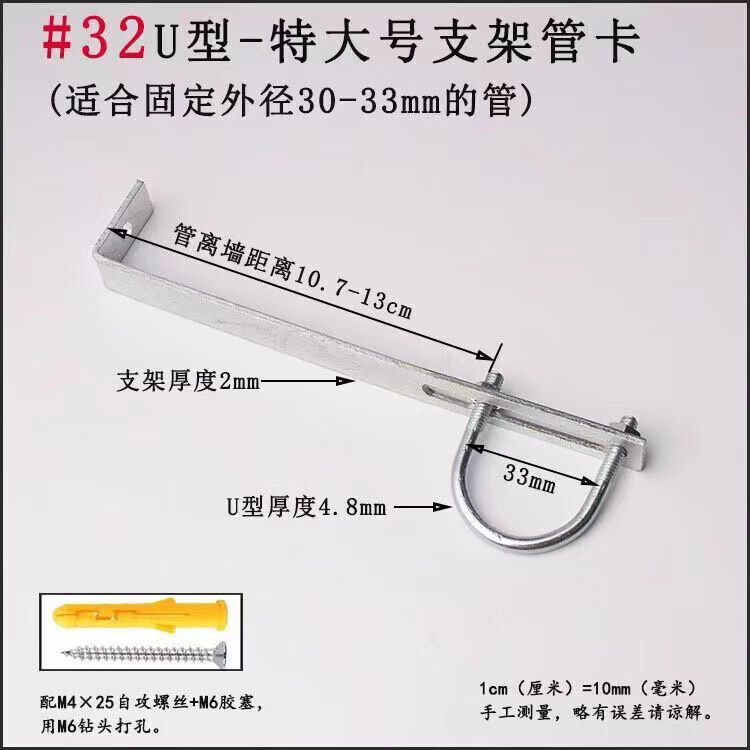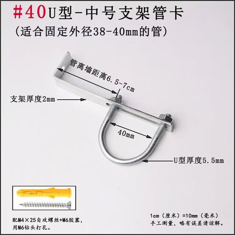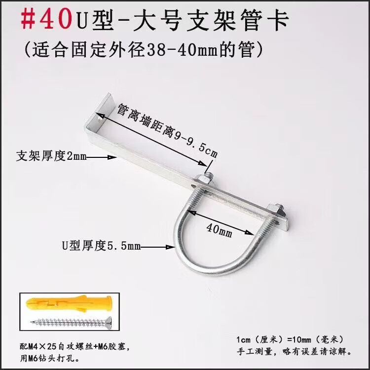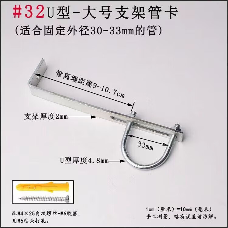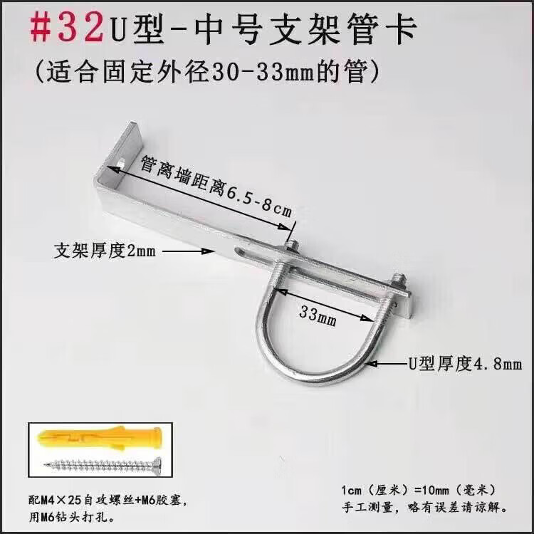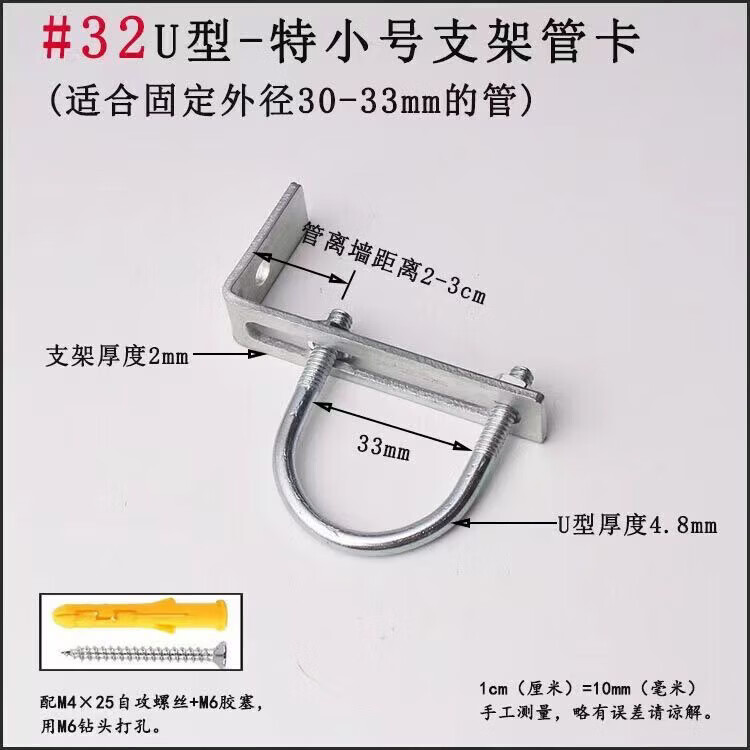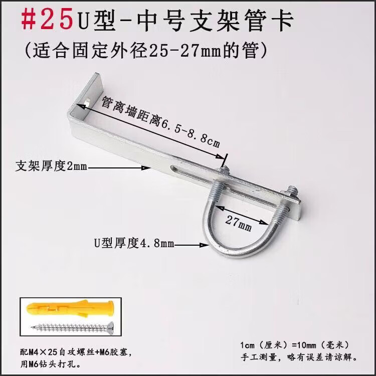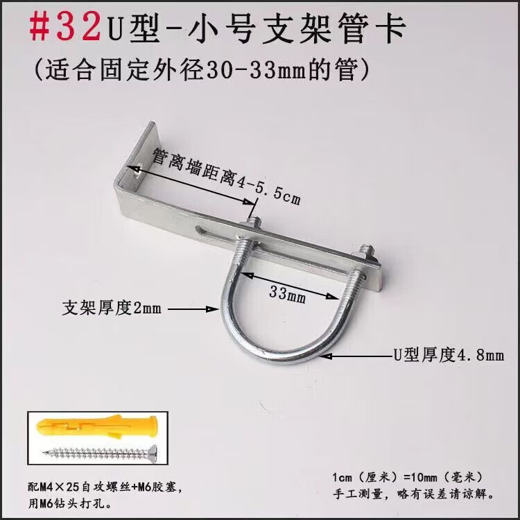Xu Dingtian gas fire pipe U-shaped pipe clamp bracket is drilled to fix the 20 25 pipe bracket with plastic expansion screws #20U type extra small pipe clamp 1 piece with screw rubber plug