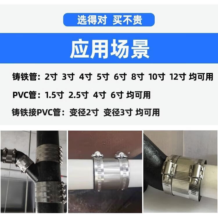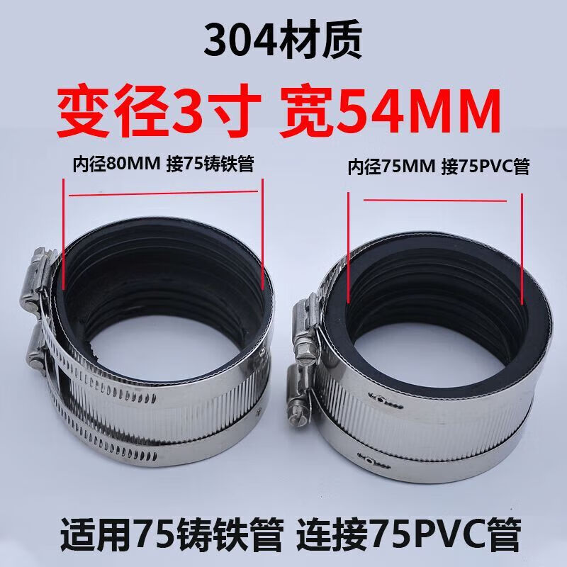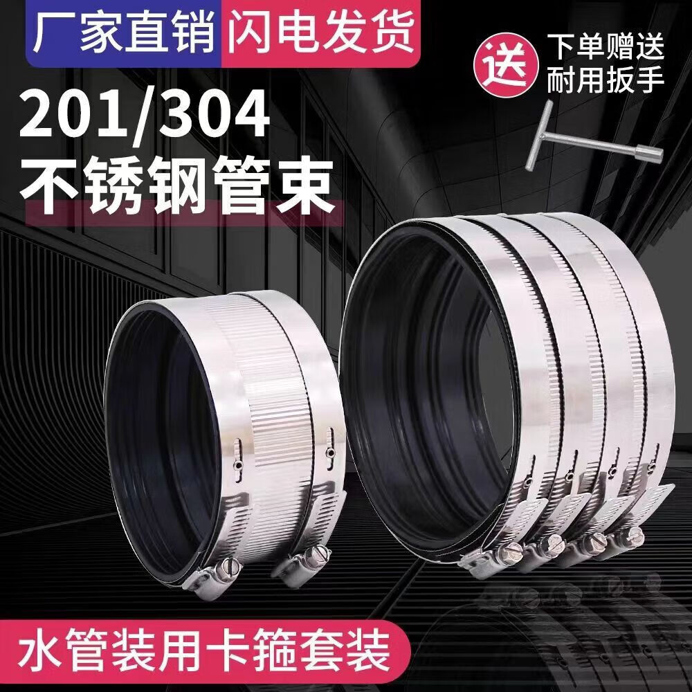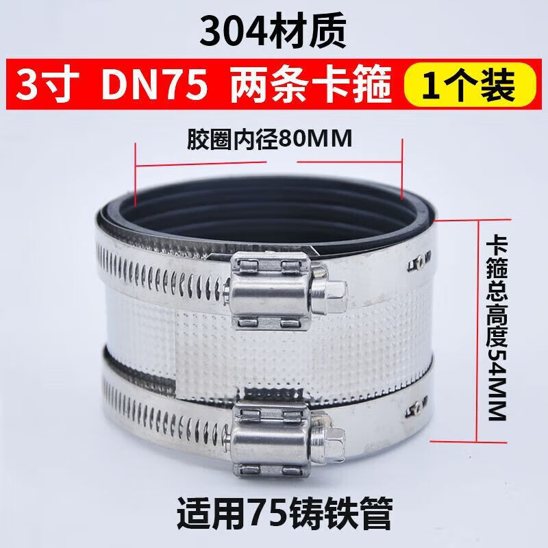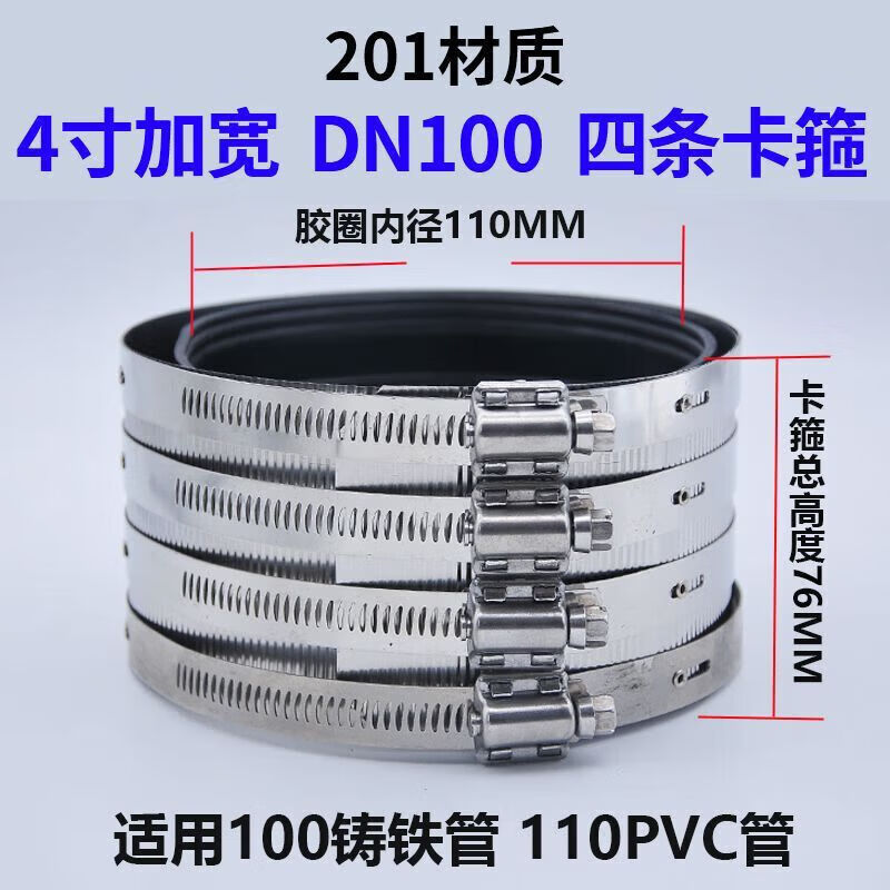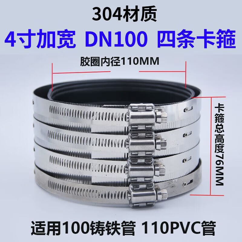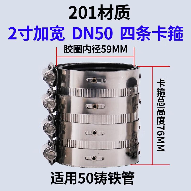 Xu ordered pipe bundle flexible quick-installation cast iron drainage pipe clamp widened extra wide 304 stainless steel clamp extra thick pipe 201 clamp 3 inch DN75 heightened 76