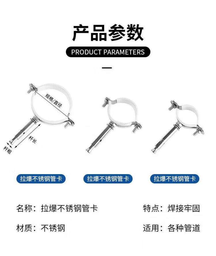 Xu ordered stainless steel expansion pipe code pull-expansion pipe code pipe clamp widened sewer pipe clamp pipe wall wall universal type 201 pack 10 pack 160mm thick pull-expansion pipe stainless steel clamp
