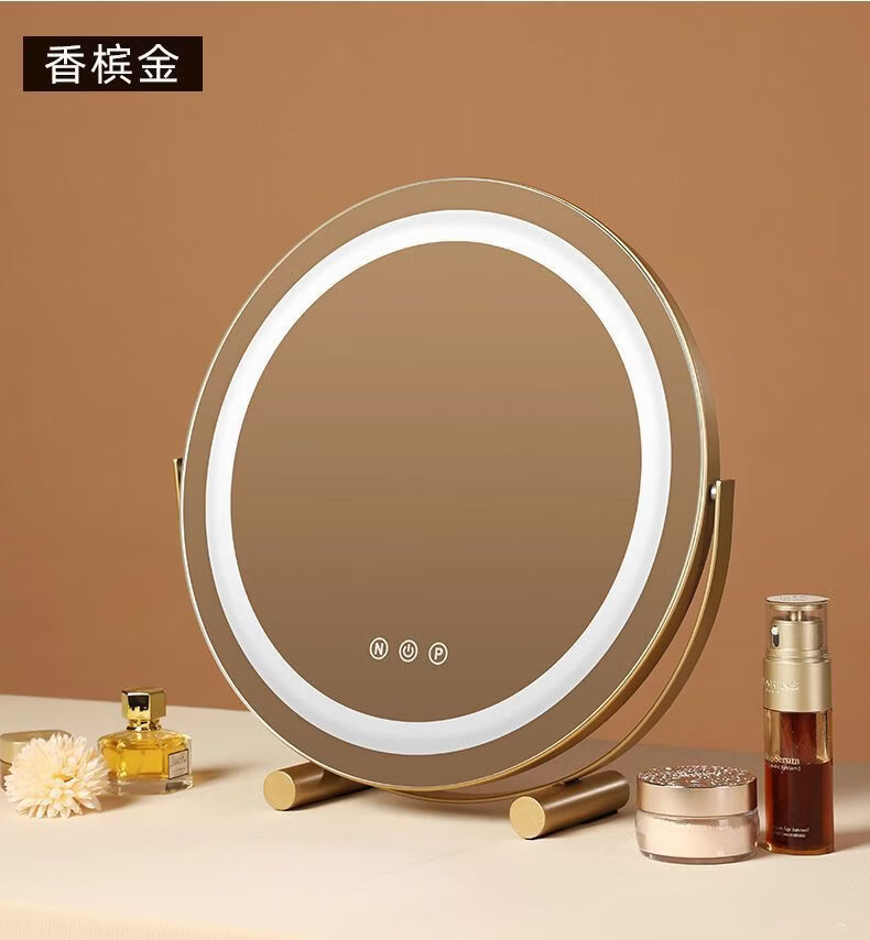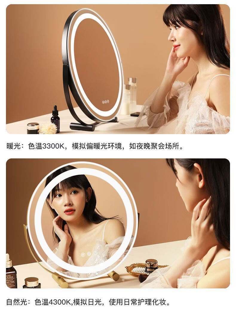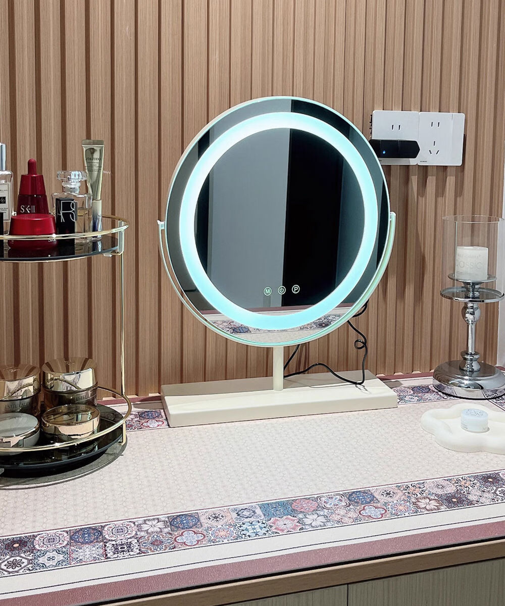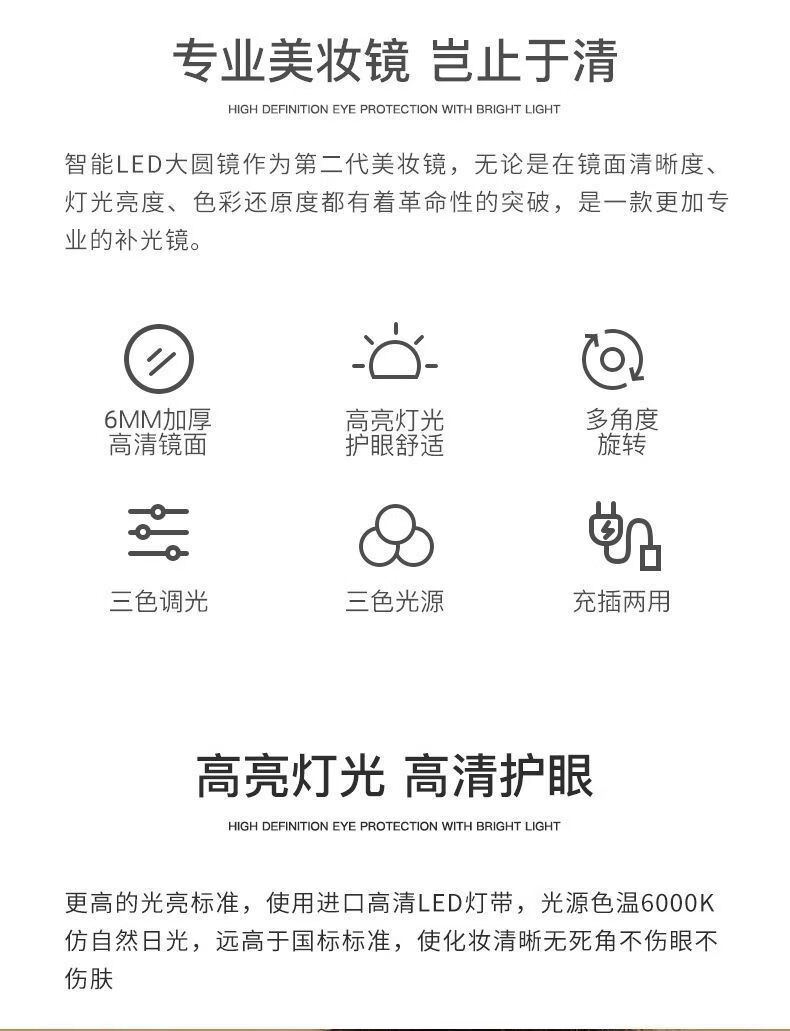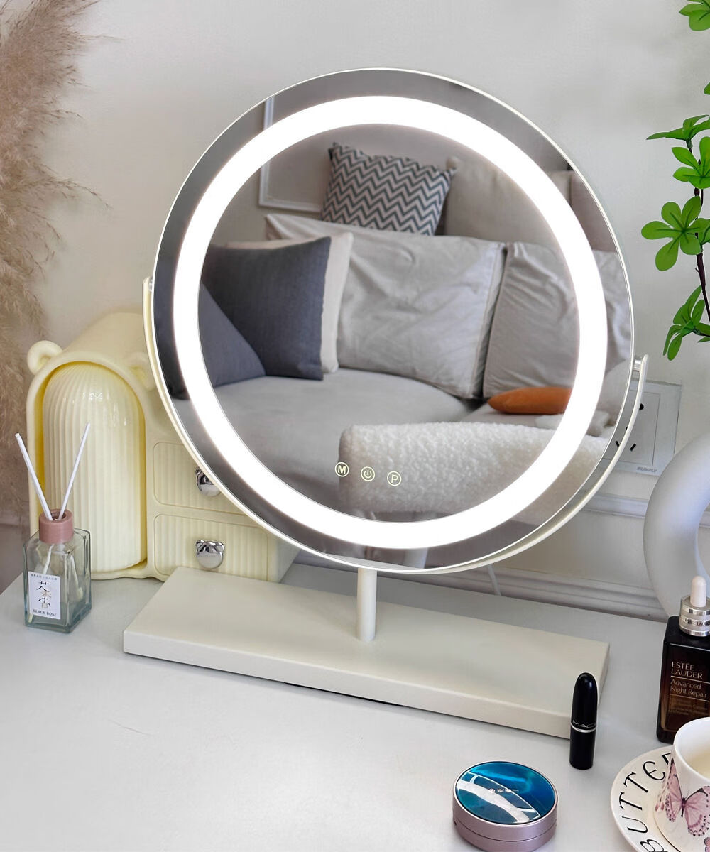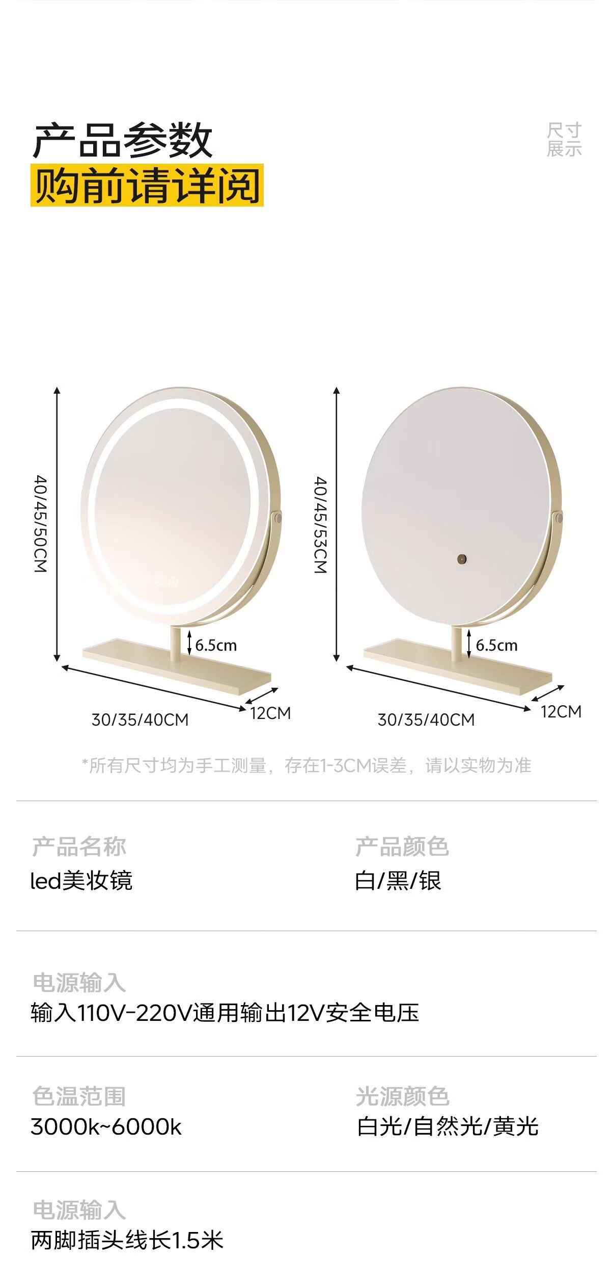 Desktop makeup mirror LED with light dormitory student ins style dressing table bedroom internet celebrity fill-in light round mirror 40 diameter fashionable white plug-in 360 degree rotation