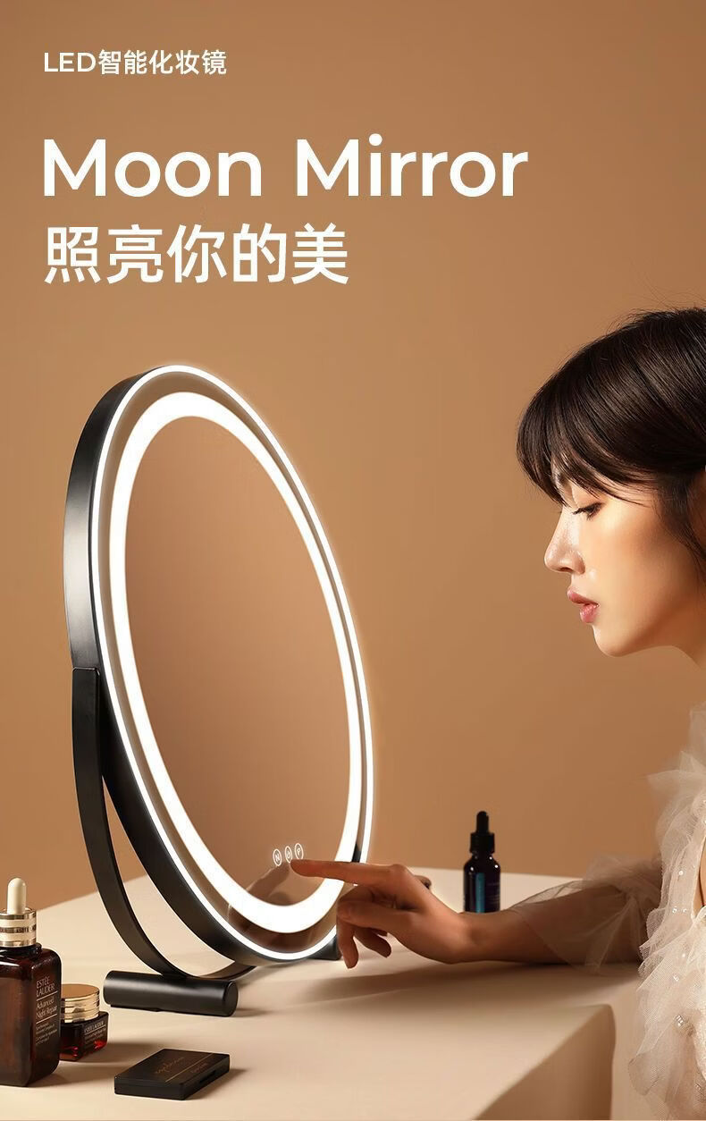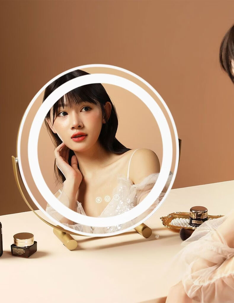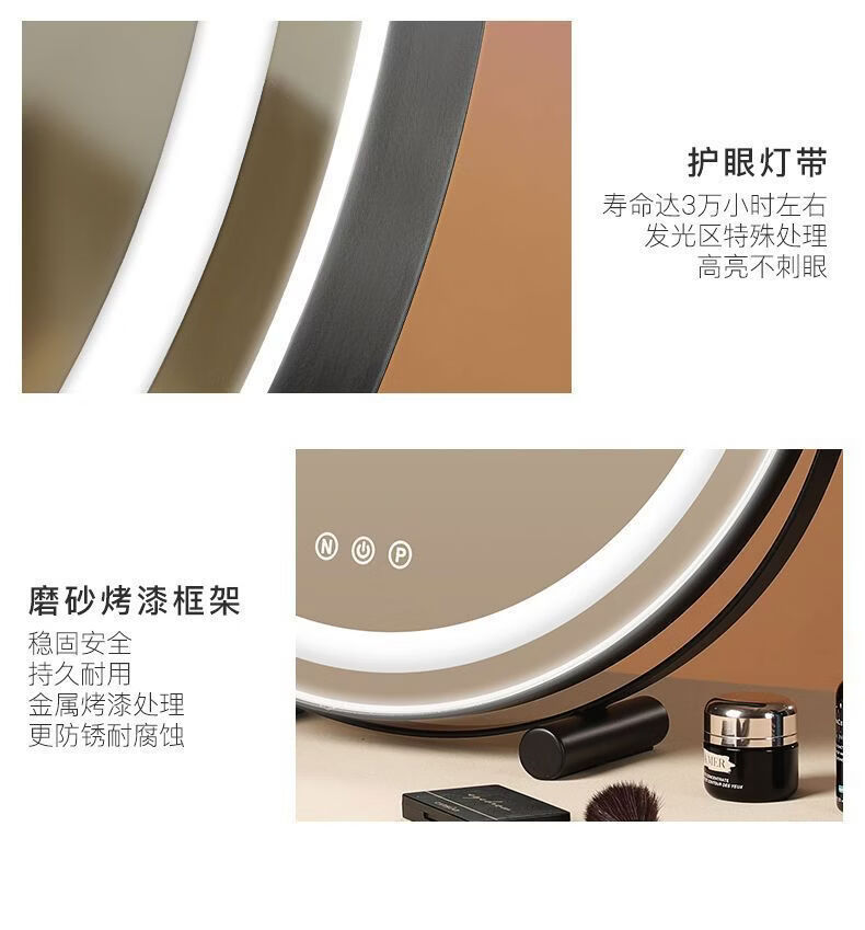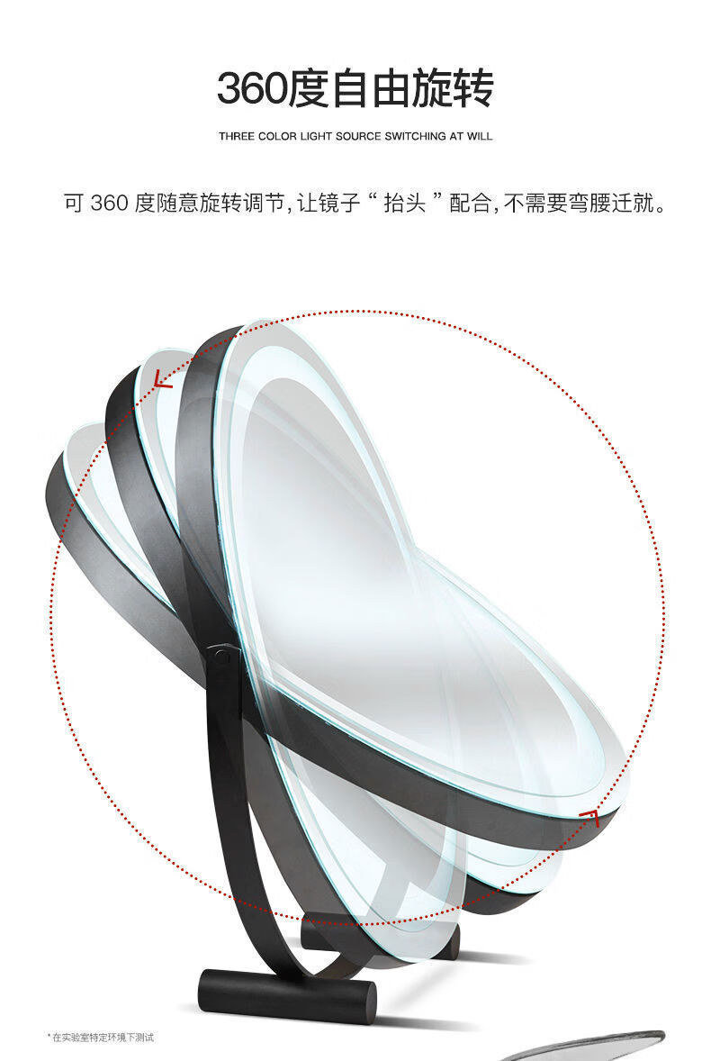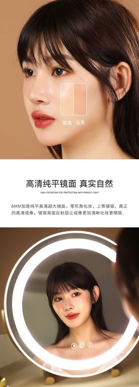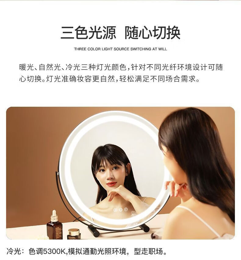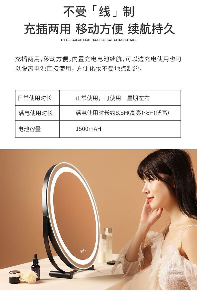 Desktop makeup mirror LED with light dormitory student ins style dressing table bedroom internet celebrity fill-in light round mirror 40 diameter fashionable white plug-in 360 degree rotation