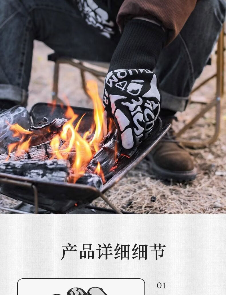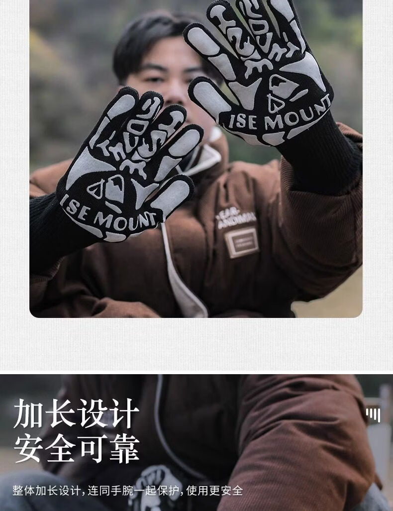 Yong Huan anti-scalding gloves with high temperature resistance of 800 degrees for barbecue special oven outdoor long version thickened silicone baking insulation and fireproof one size black