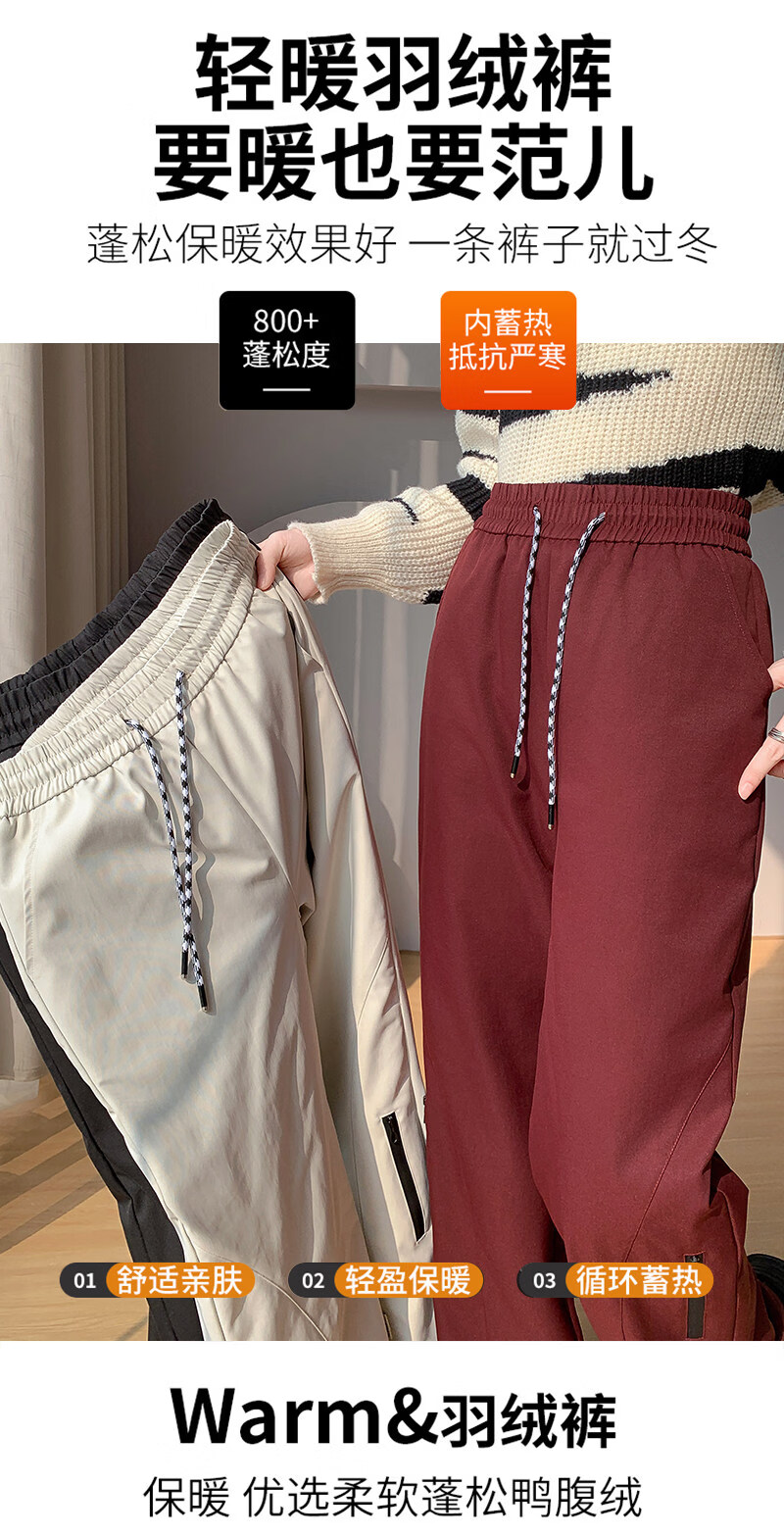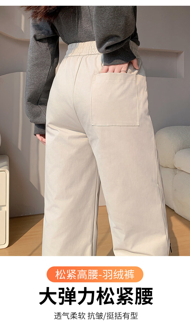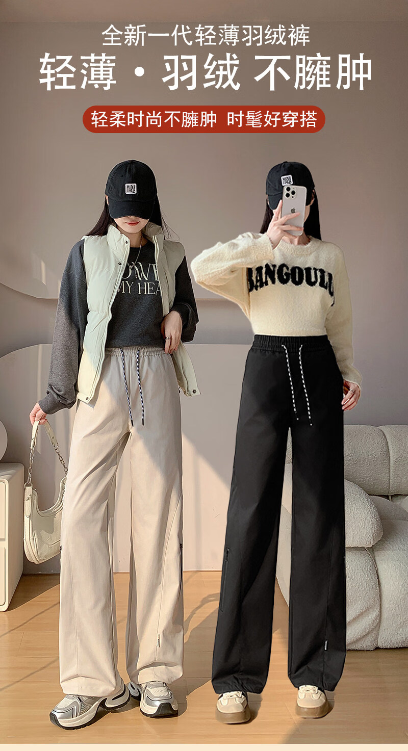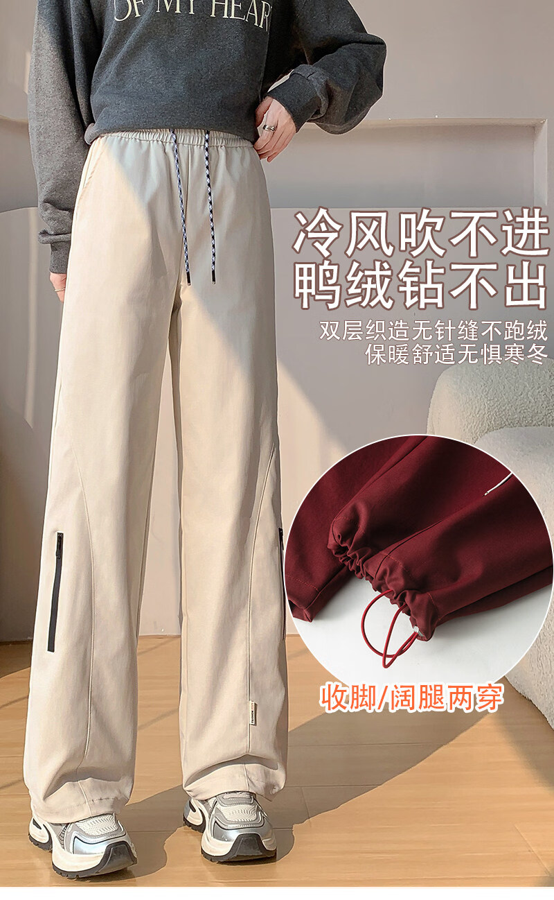 Woodpecker (TUCANO) Official 2026 New Down Pants Women's Outerwear Plus Velvet Thickened Cotton Pants Coldproof Loose Straight Casual Overalls Black White Duck Down Filling丨Warm and Comfortable 7588 L