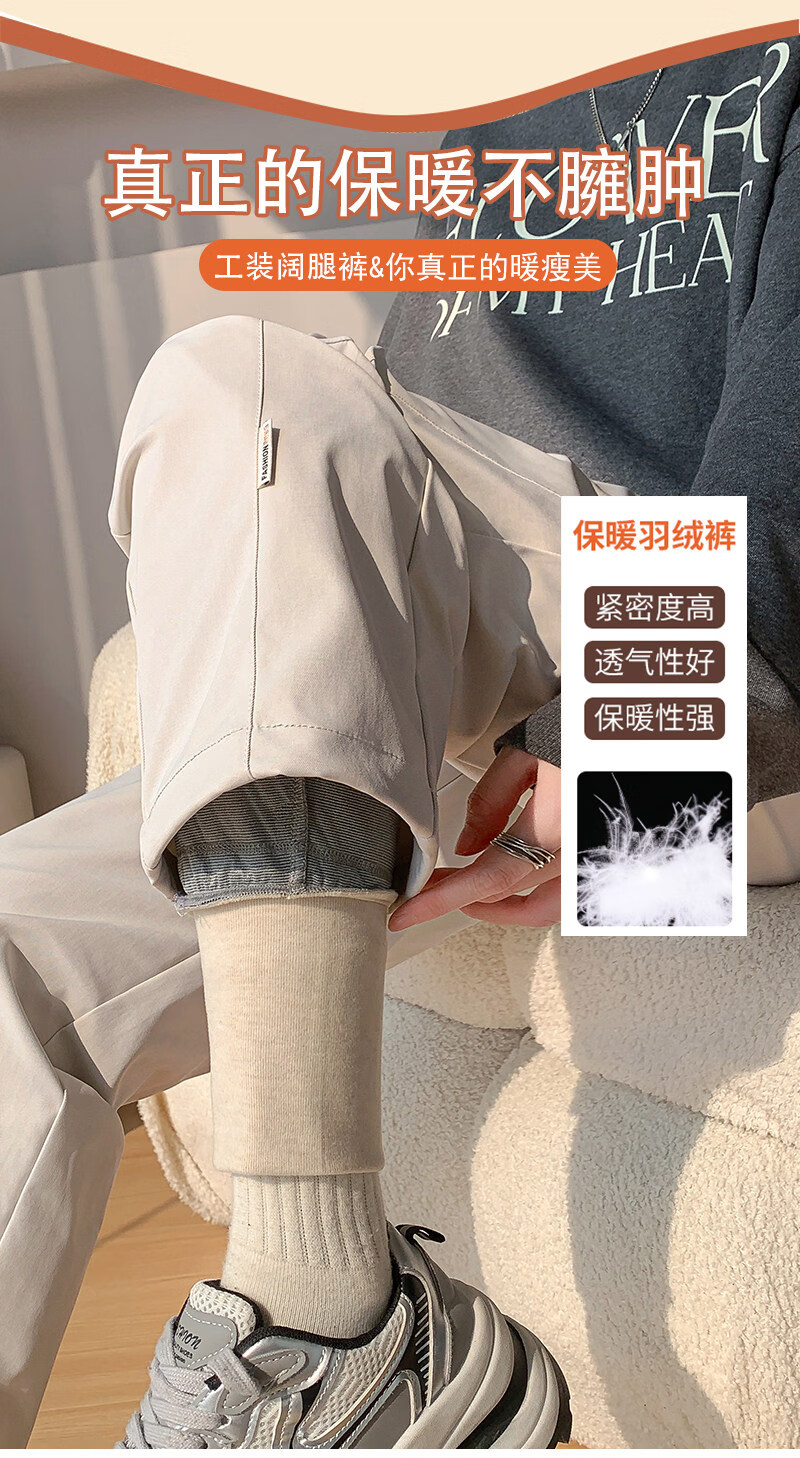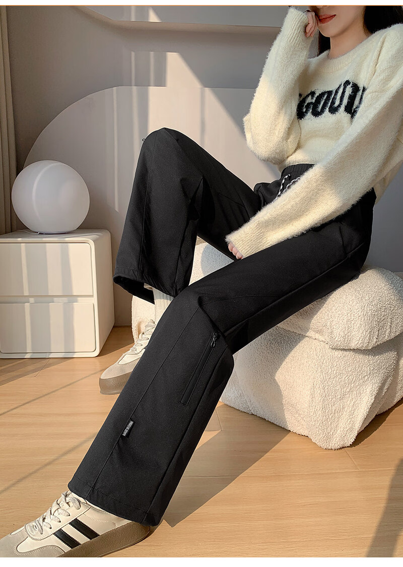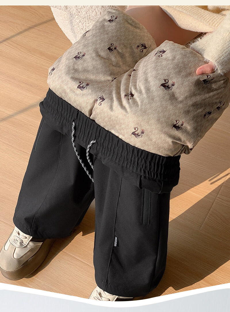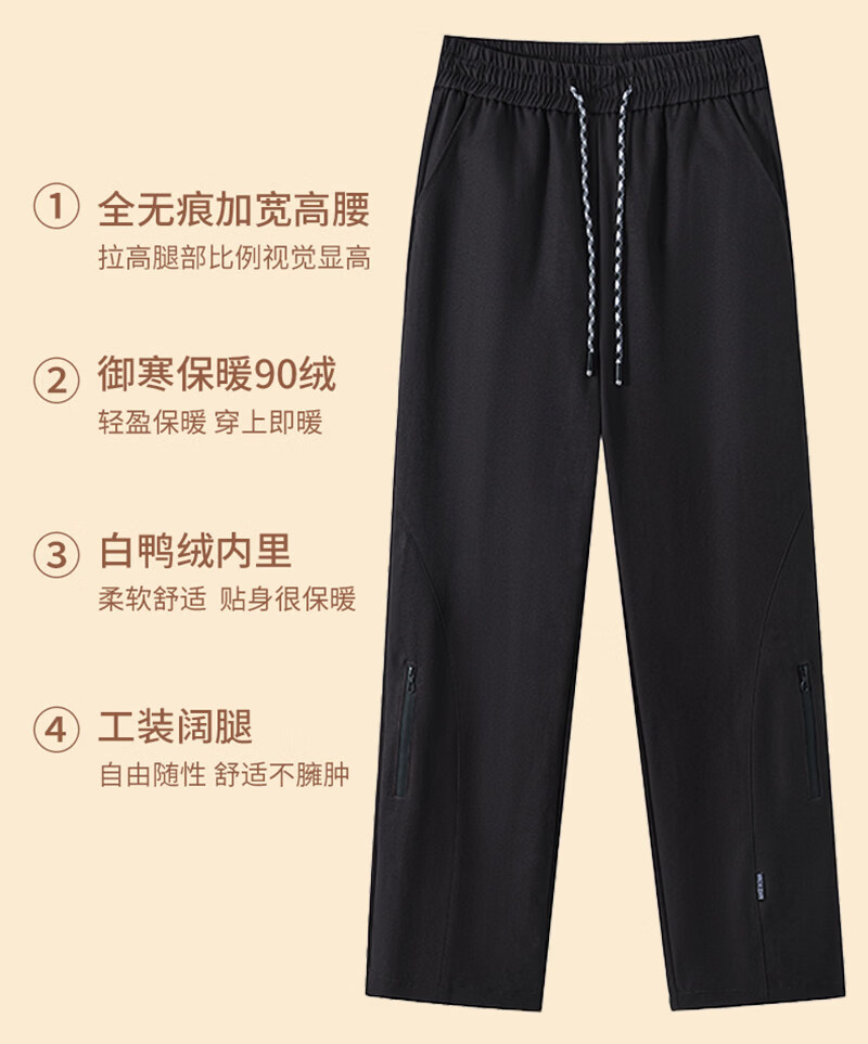 Woodpecker (TUCANO) Official 2026 New Down Pants Women's Outerwear Plus Velvet Thickened Cotton Pants Coldproof Loose Straight Casual Overalls Black White Duck Down Filling丨Warm and Comfortable 7588 L
