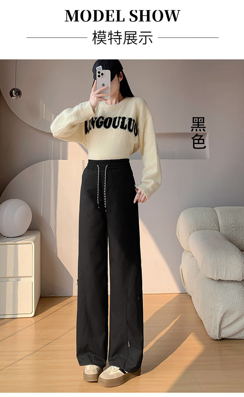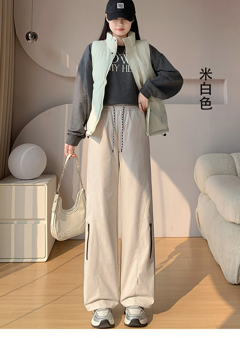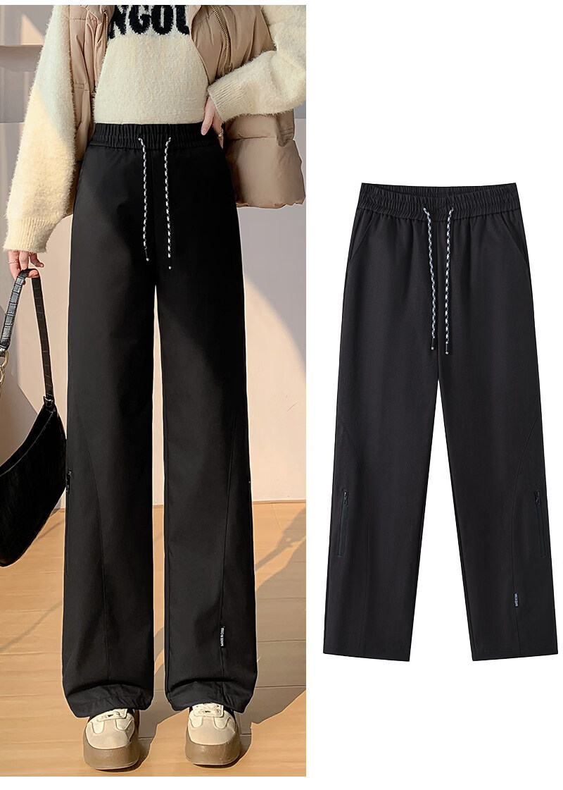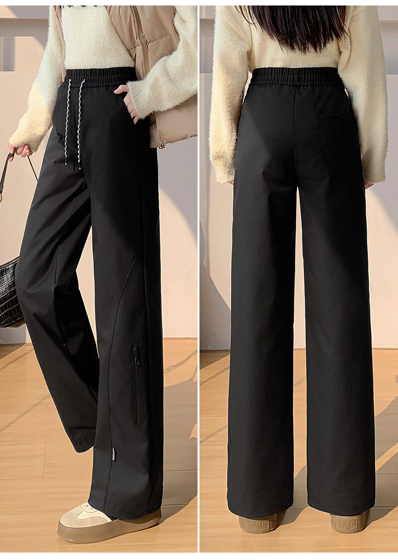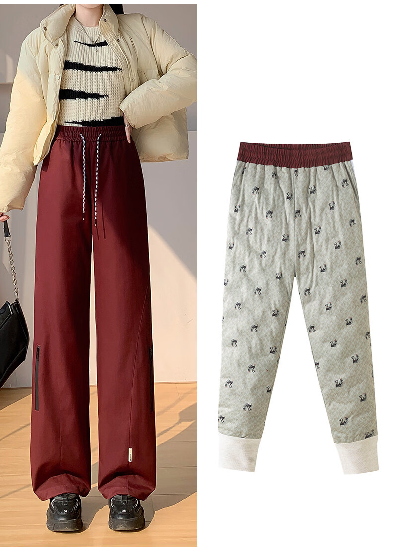 Woodpecker (TUCANO) Official 2026 New Down Pants Women's Outerwear Plus Velvet Thickened Cotton Pants Coldproof Loose Straight Casual Overalls Black White Duck Down Filling丨Warm and Comfortable 7588 L