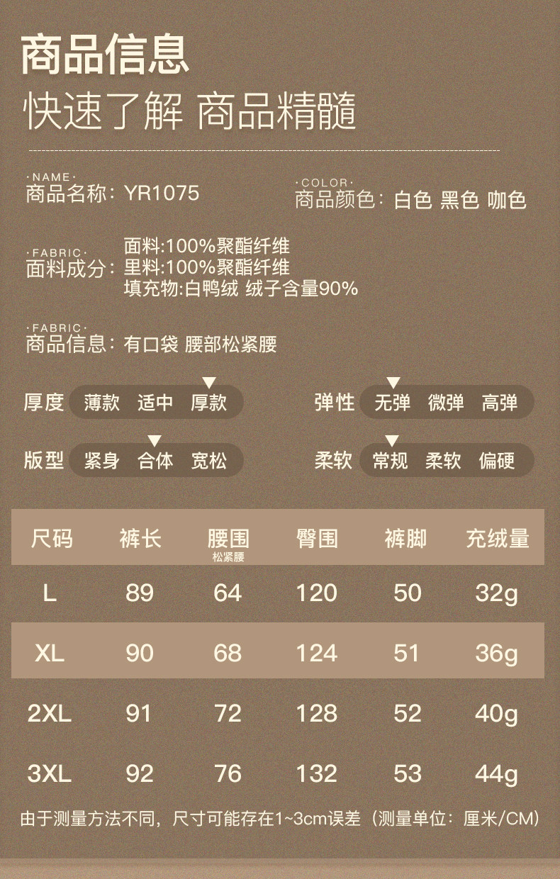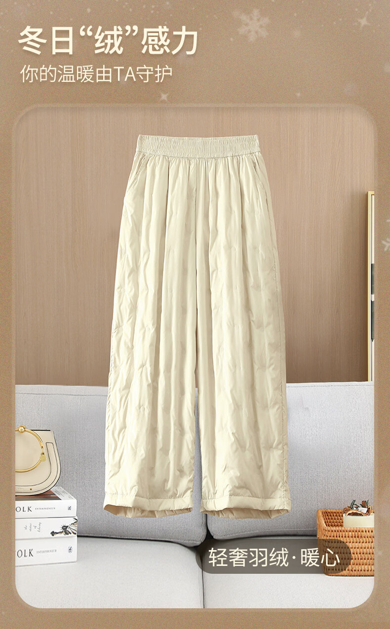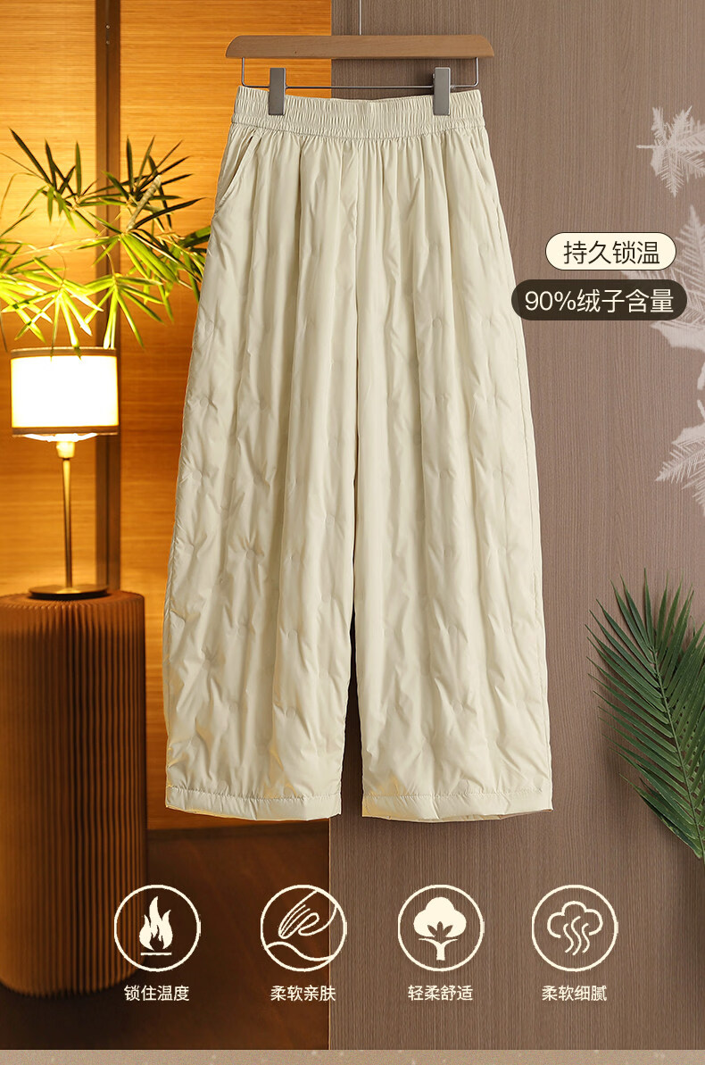 Woodpecker (TUCANO) official fashion loose cold-proof cotton pants for women 2026 new winter white elastic waist thickened warm down pants white XL suitable for 115-130 Jin Jin is equal to 0.5 kg