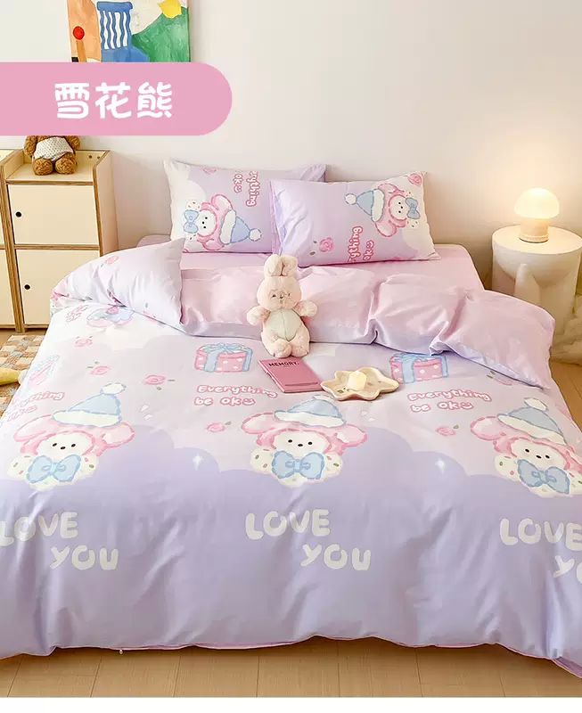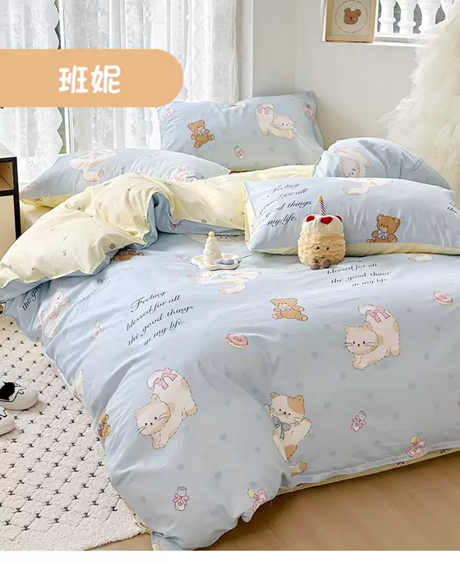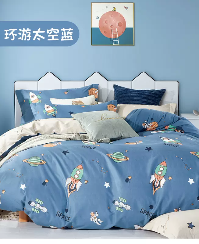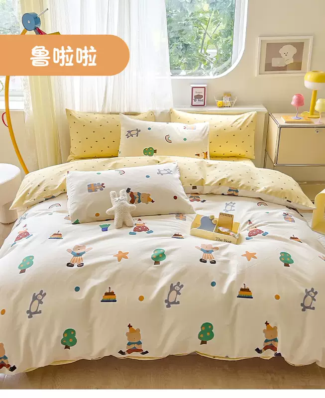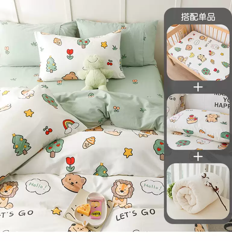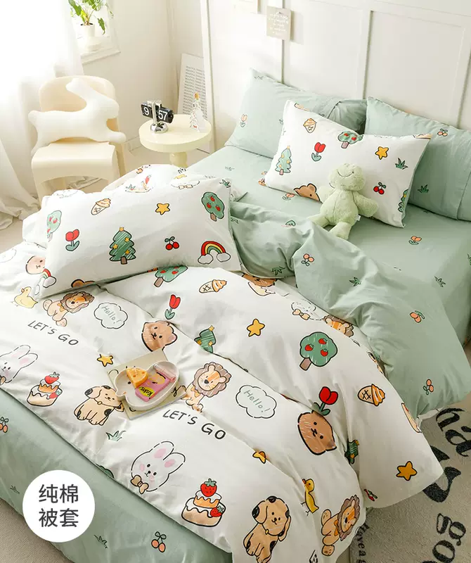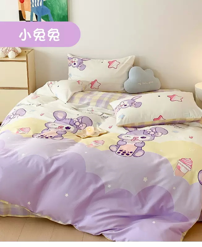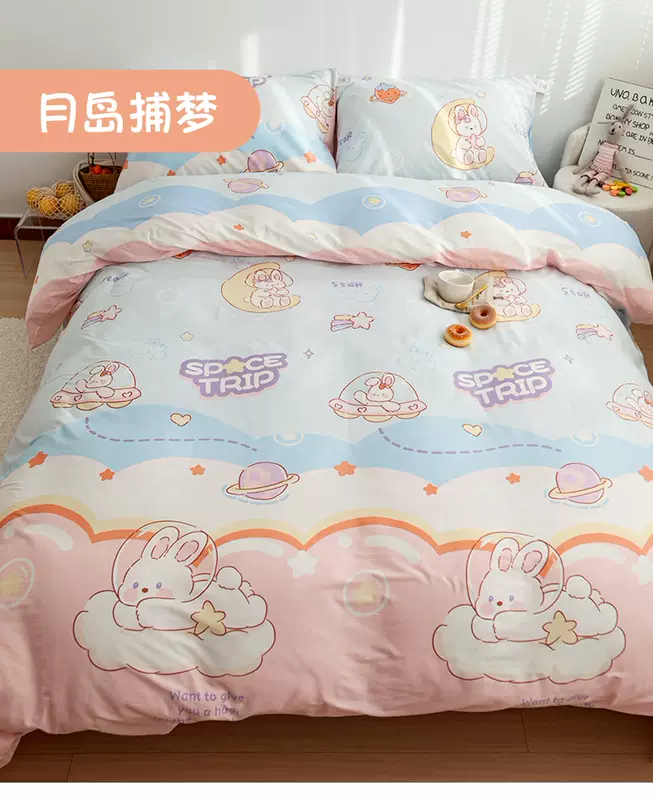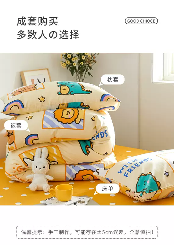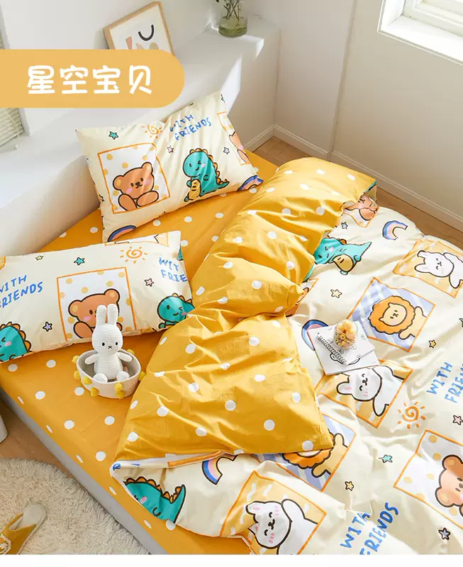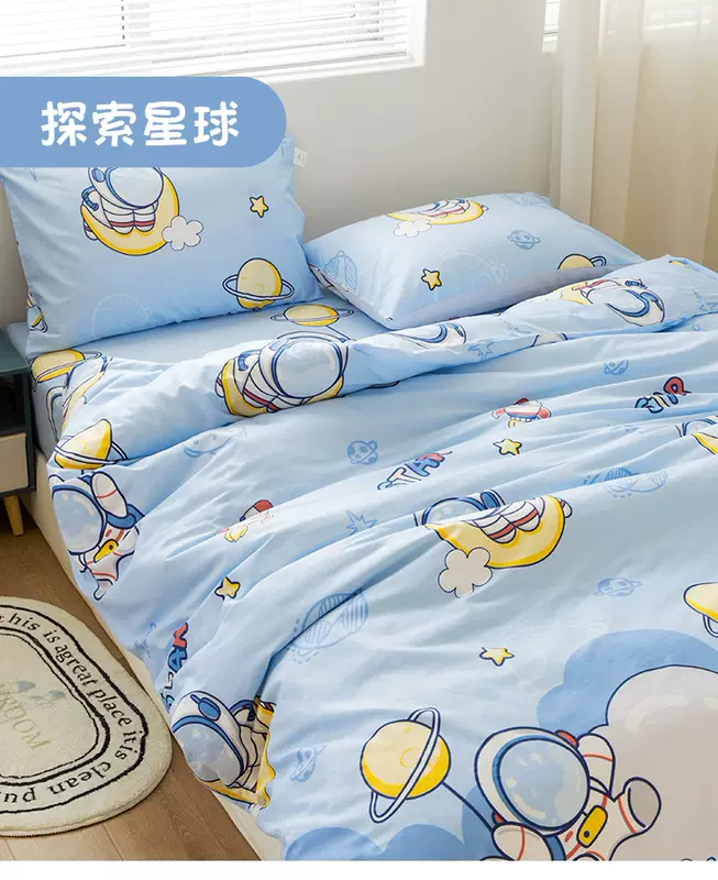 Yusenyi three-piece quilt cover for boys single-piece kindergarten cover 120x150cm children's 1.5 single pure cotton girl's mattress Banny 180x210cm (high count and high density)