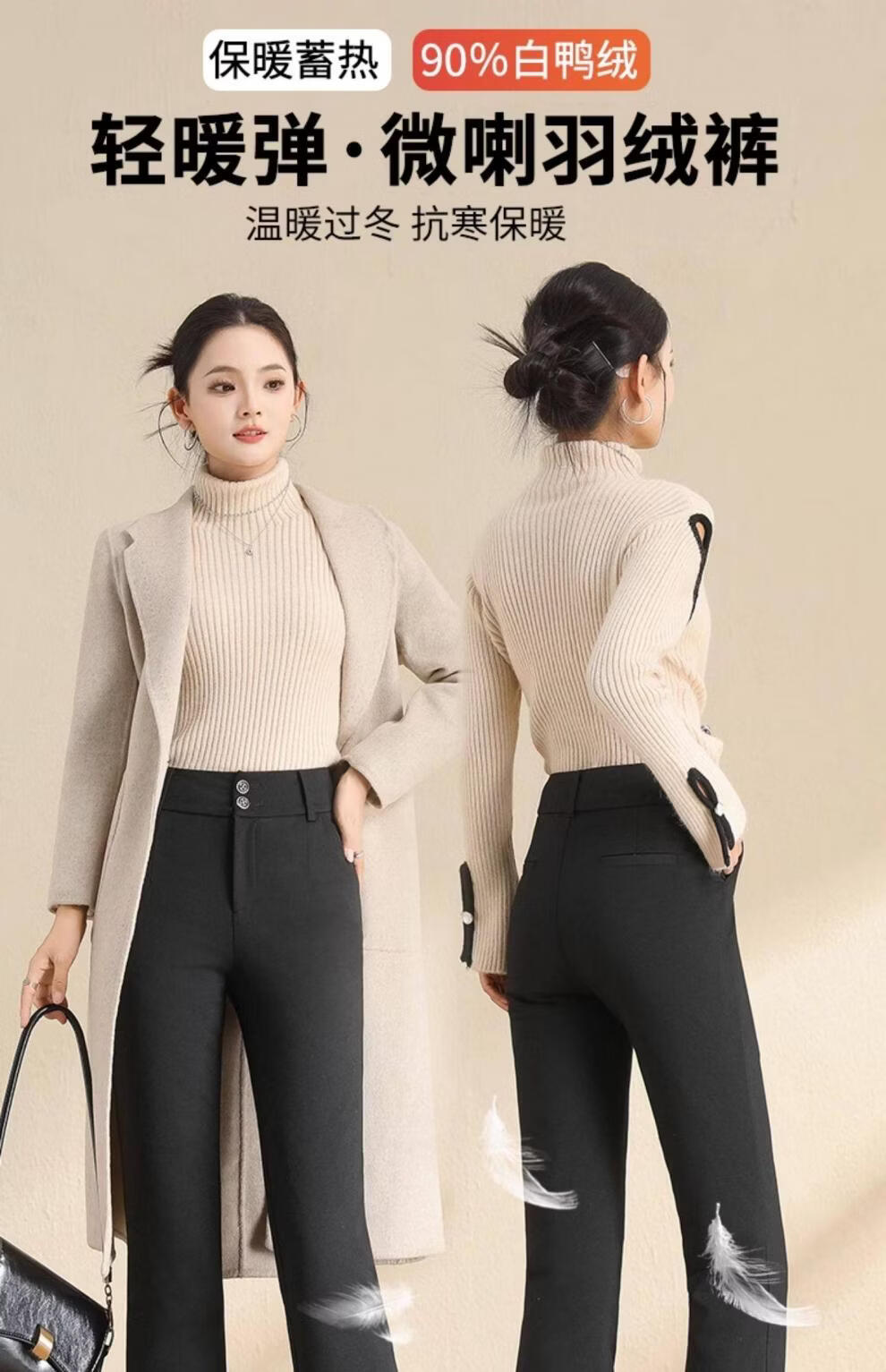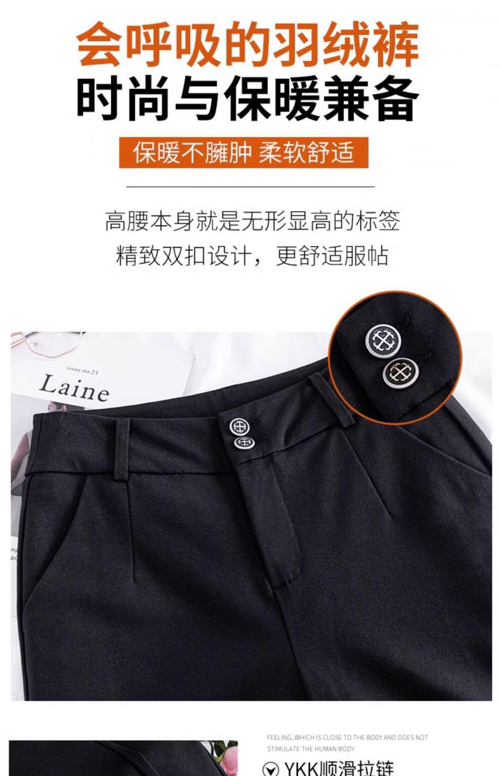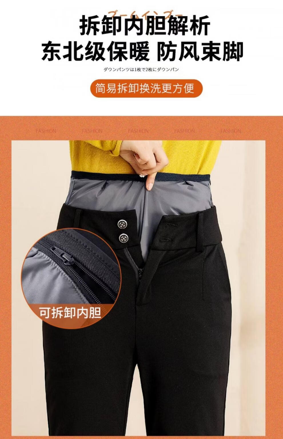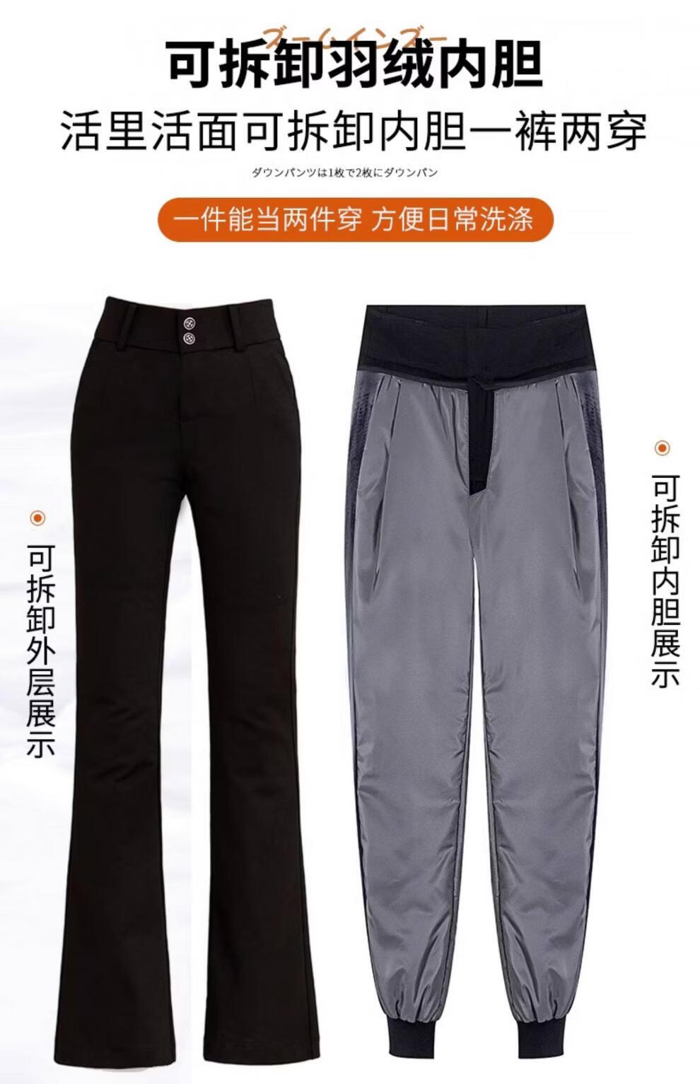 Woodpecker (TUCANO) detachable down pants for women, 2026 new winter high-waisted slimming middle-aged and elderly warm and thickened women's cotton pants black (open placket) M
