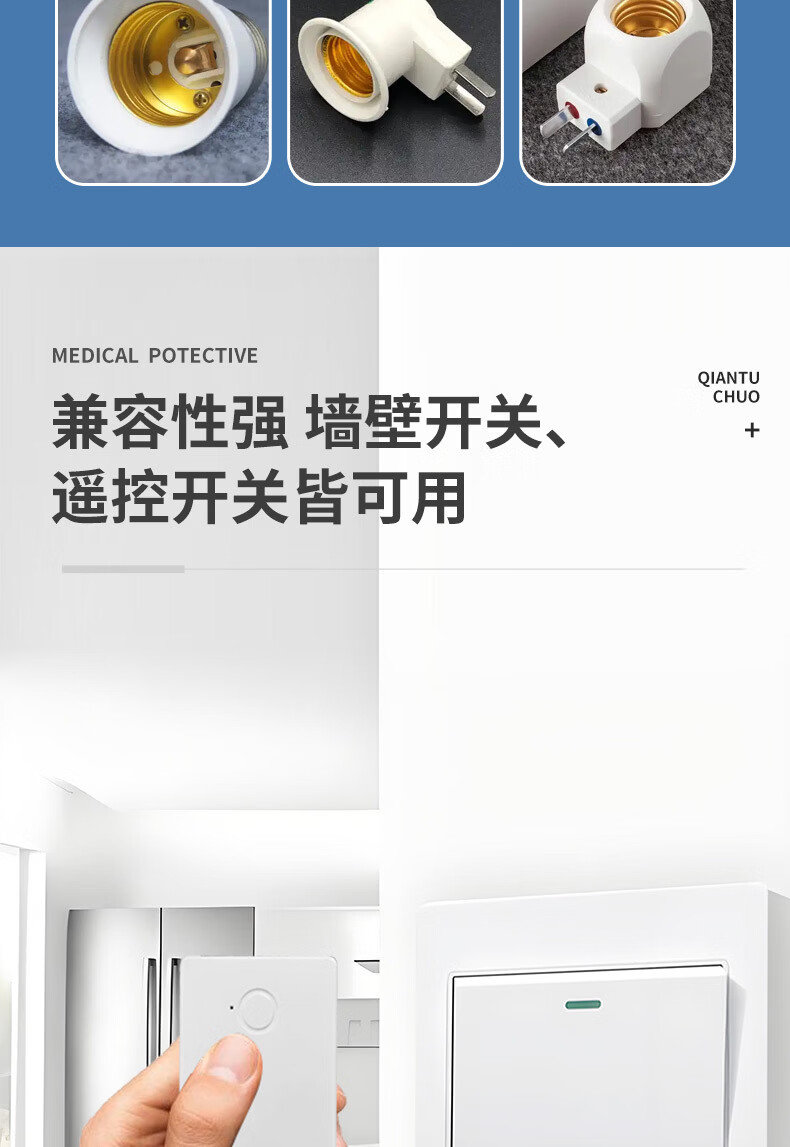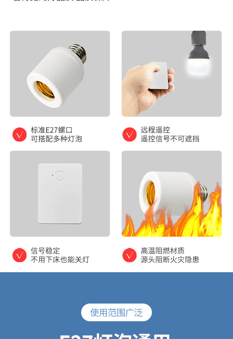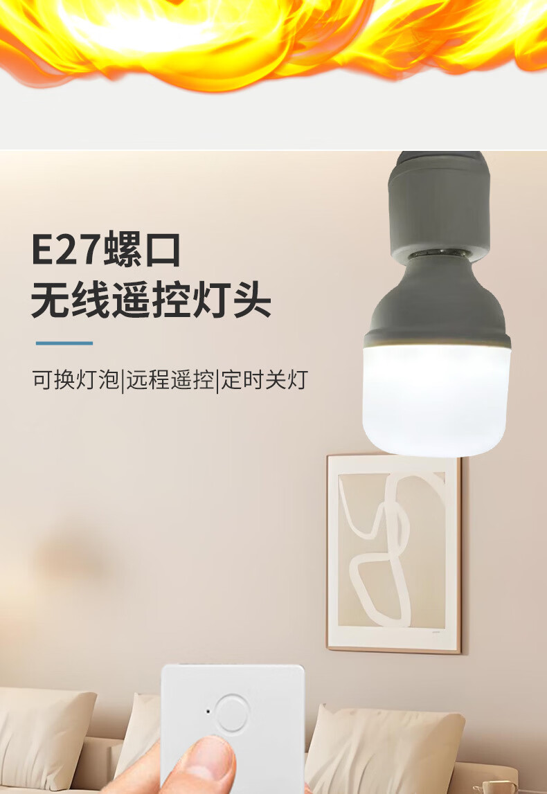 Shantou Lincun Wireless Remote Control Lamp Head E27 Screw Intelligent Timing Switch Lamp Remote Control Lamp Household Light Switch Set Lamp Head + Remote Control
