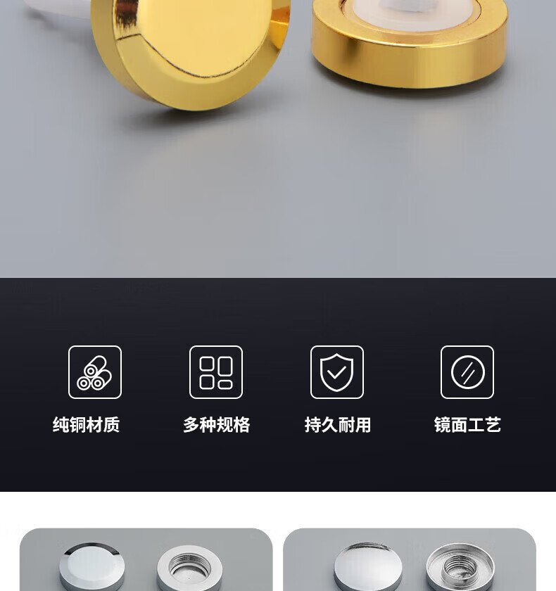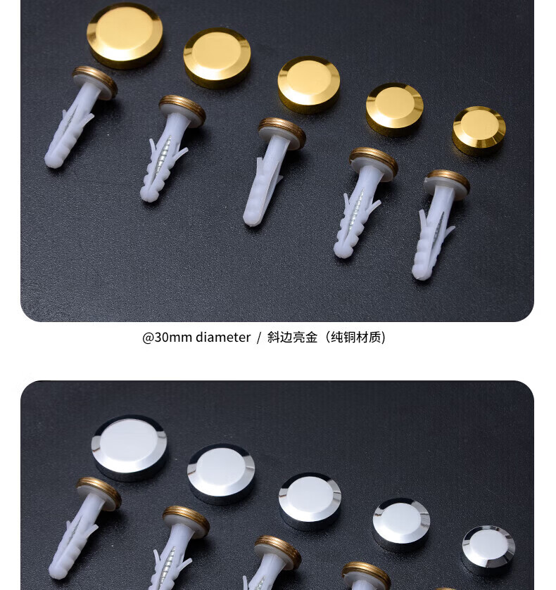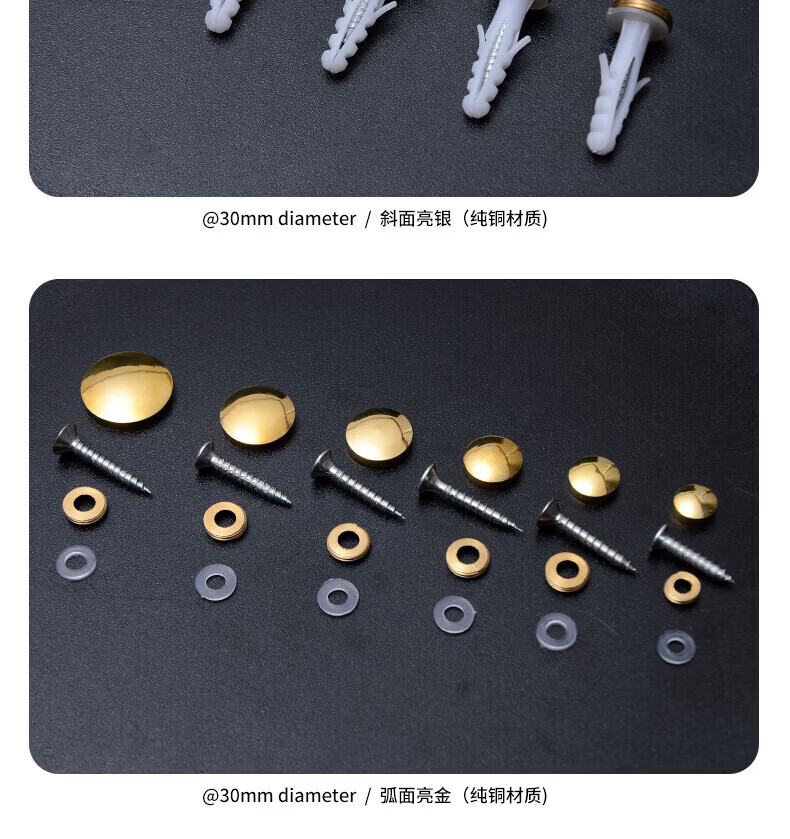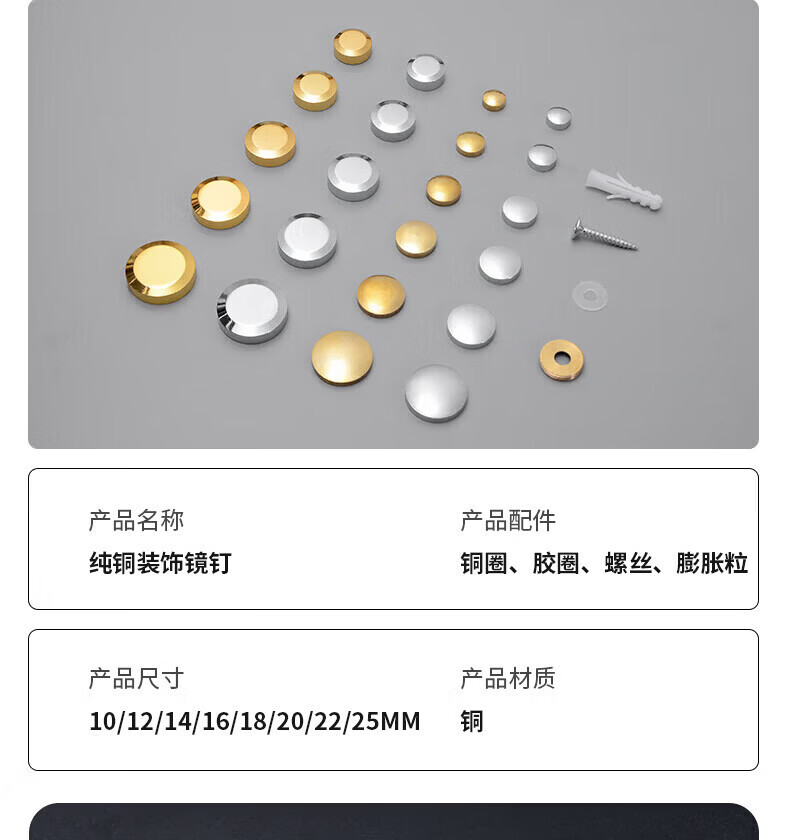 Xu ordered bronze mirror nails, advertising nails, ceramic tile glass fixing nails, decorative nail caps, self-tapping expansion screw caps, decorative caps to hide the ugliness, curved bright silver 10mm (set price of 10)