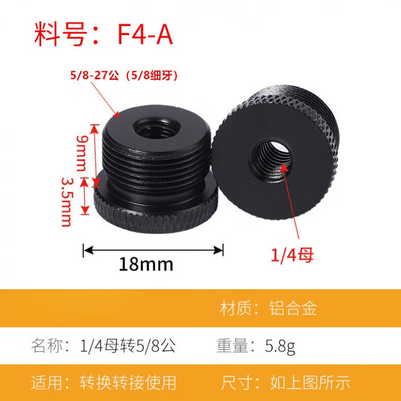 Xu ordered bracket conversion screw adapter nut 1/4 interchangeable 3/8 connector accessories microphone microphone fixed clip 5/8 screw black material number F4A