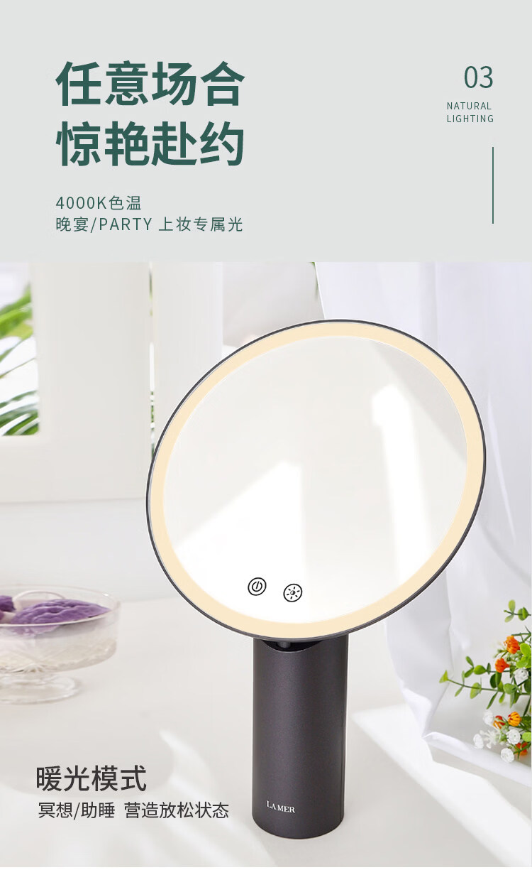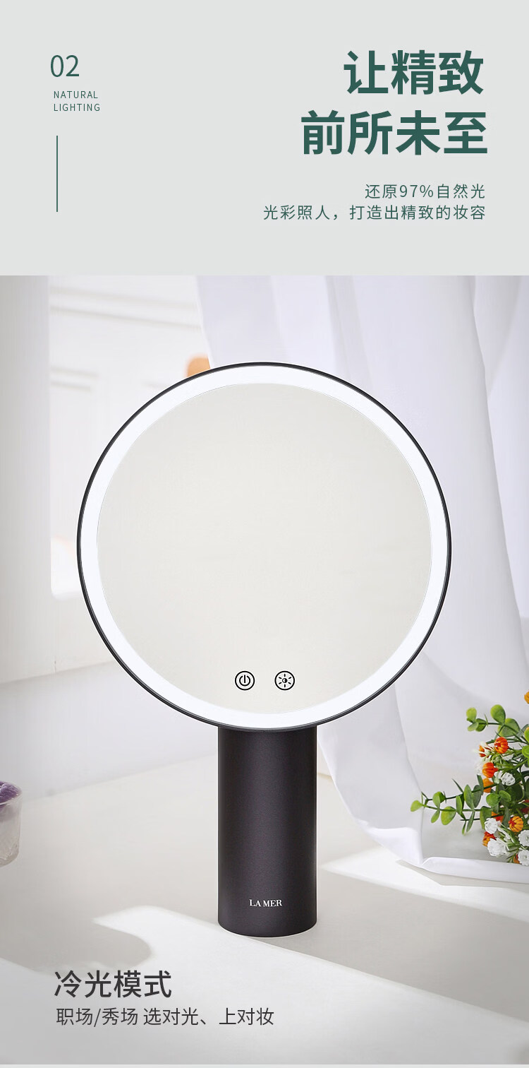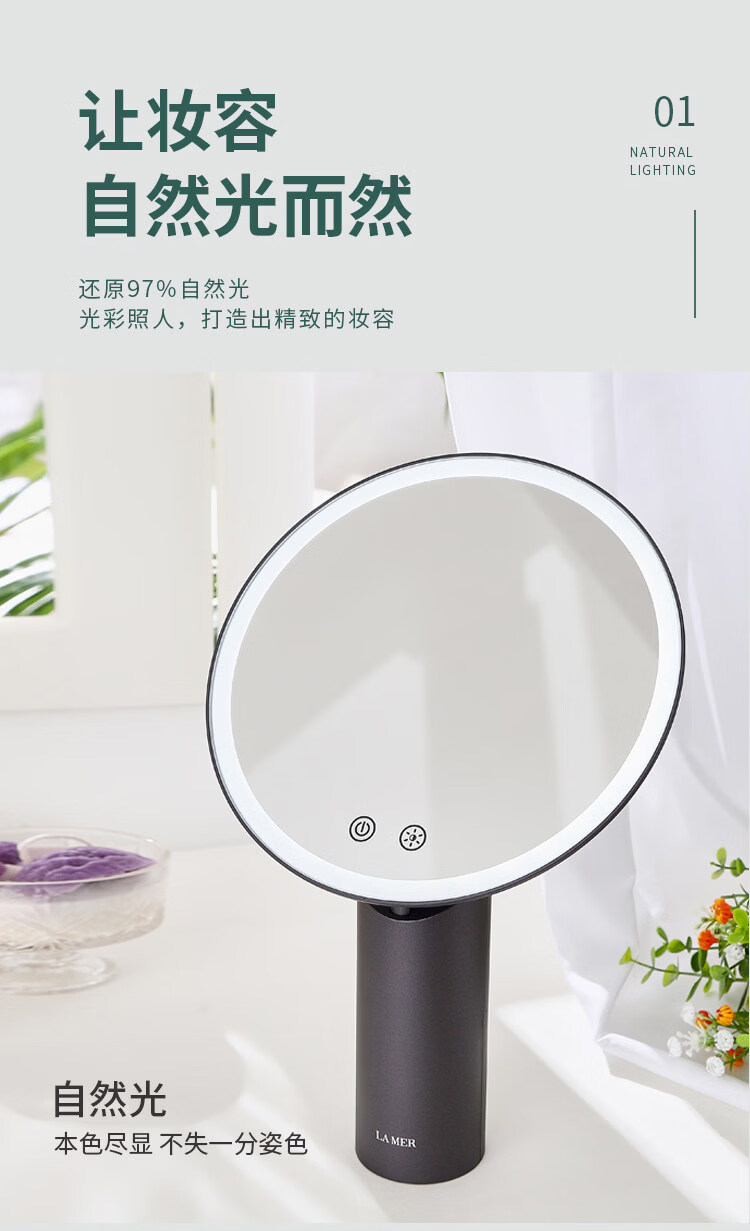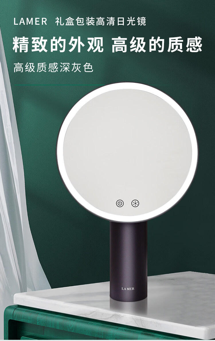 Cosmetic mirror desktop LED with light desktop Internet celebrity sun mirror fill light dressing light mirror gift Dyson gray (gift box + shopping bag + 5x magnification magnetic mirror)