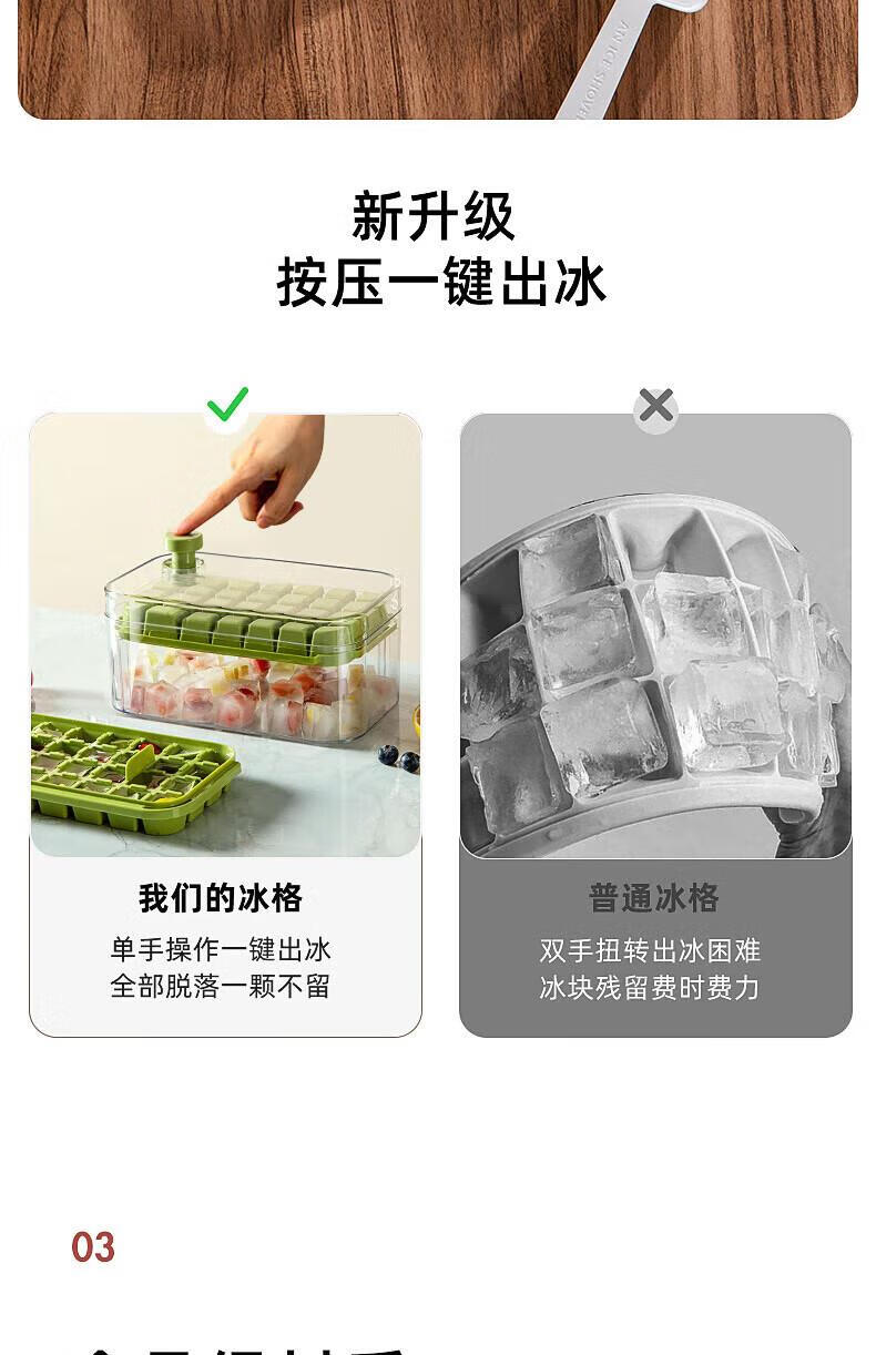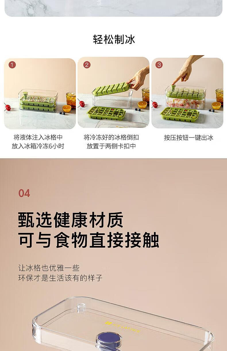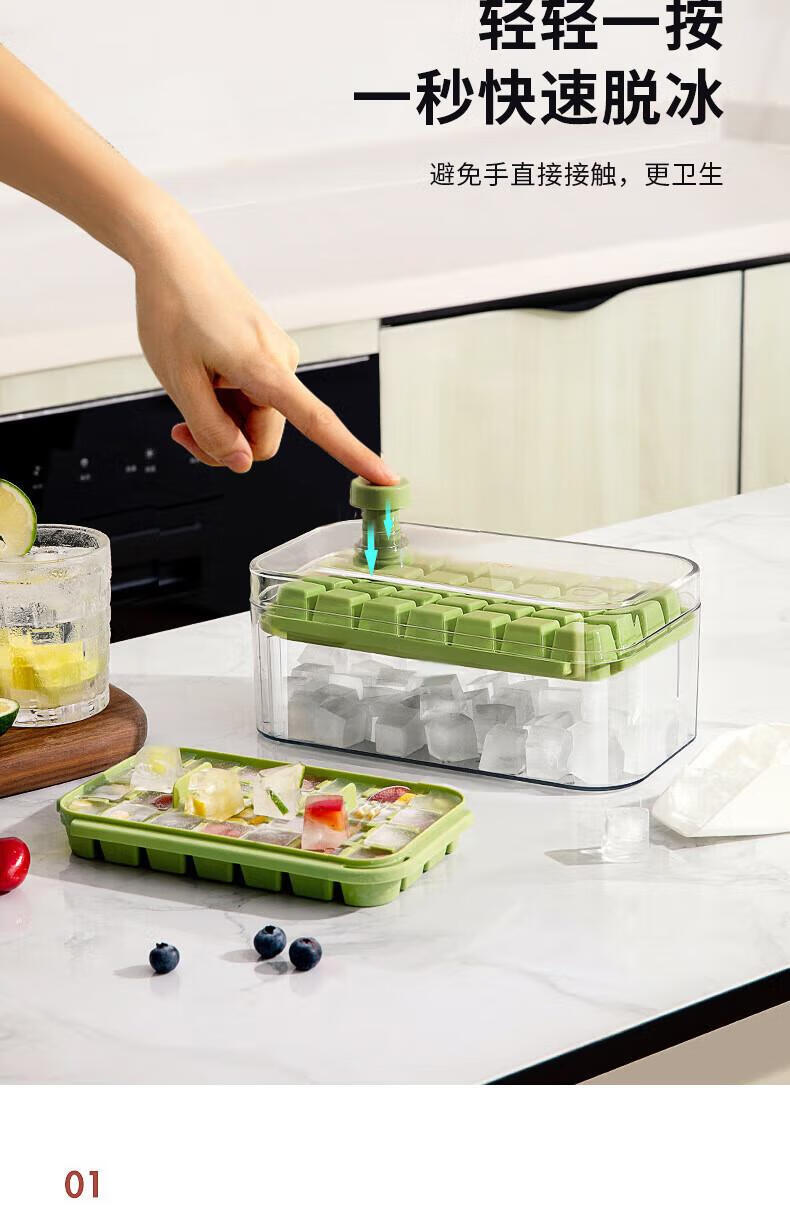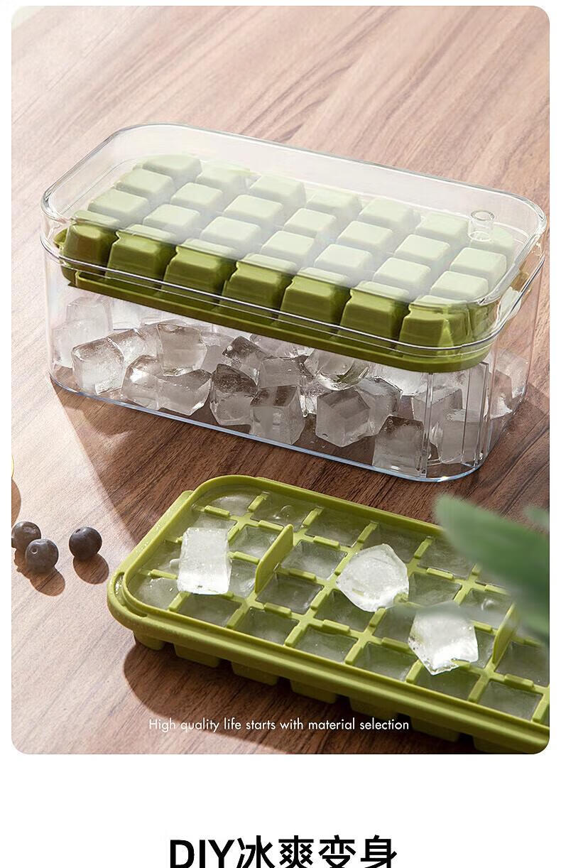 Ice cube mold ice making mold ice cube ice tray ice cube thickened ice box storage box green double 304 one-click double layer 56 grids