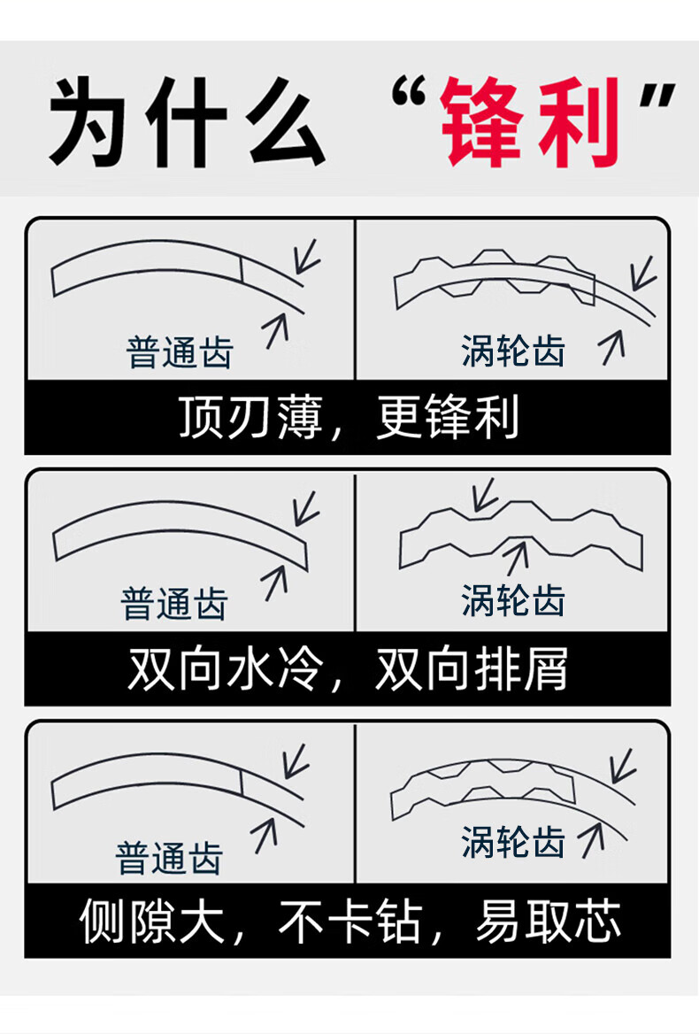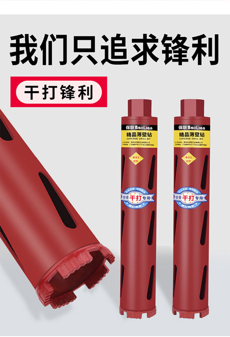 Baolian dry fast water drill drill bit concrete wall diamond water drilling opener dry drilling 51*370mm wavy teeth two pieces