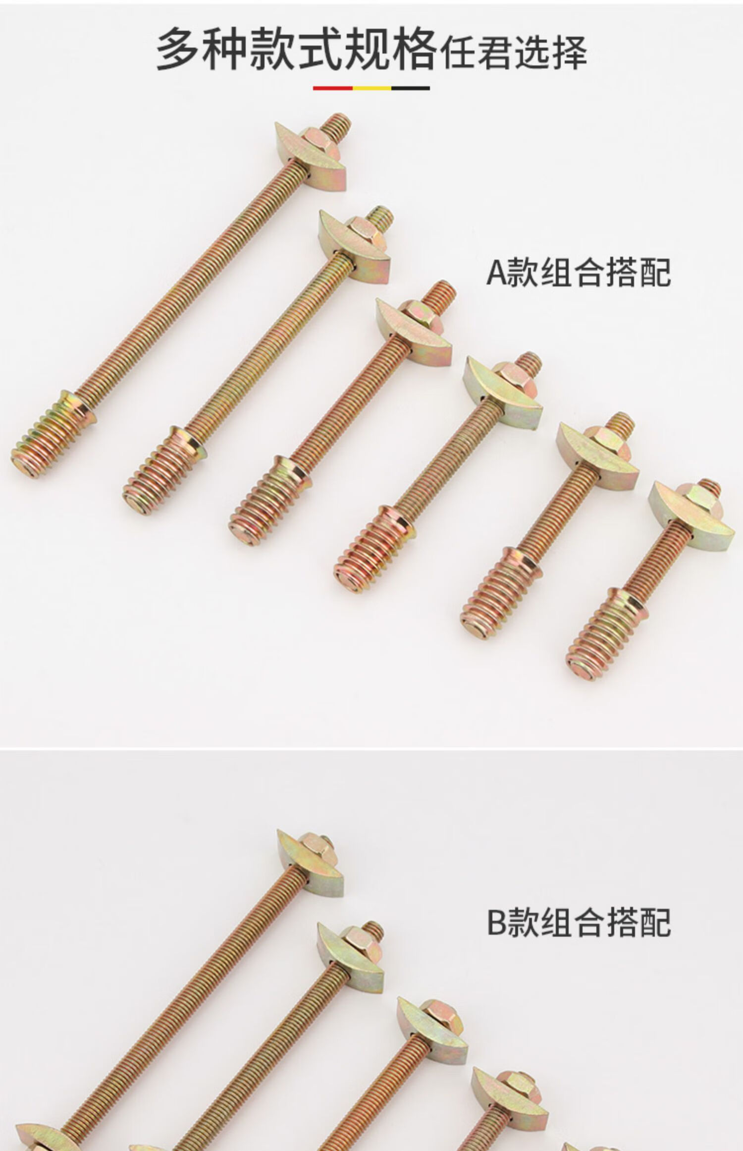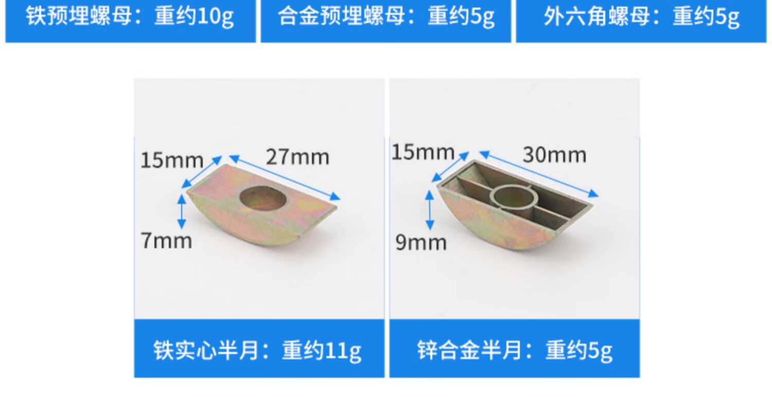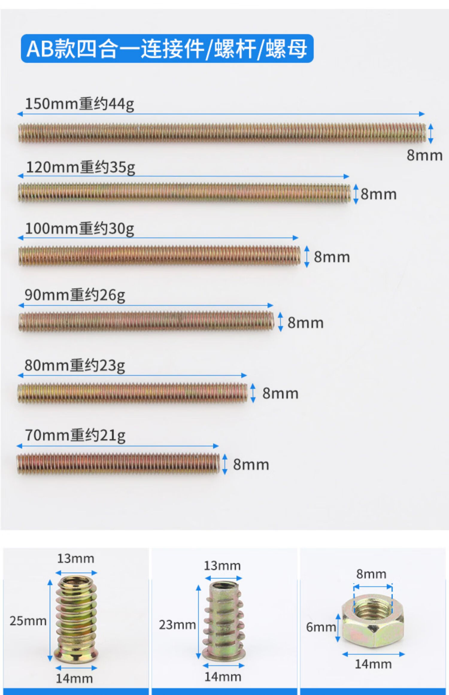 RSRDDY half-moon nut four-in-one connection bed fixed hardware round gasket executive desk furniture screw connection accessories M8 A type solid moon type 8X70MM set