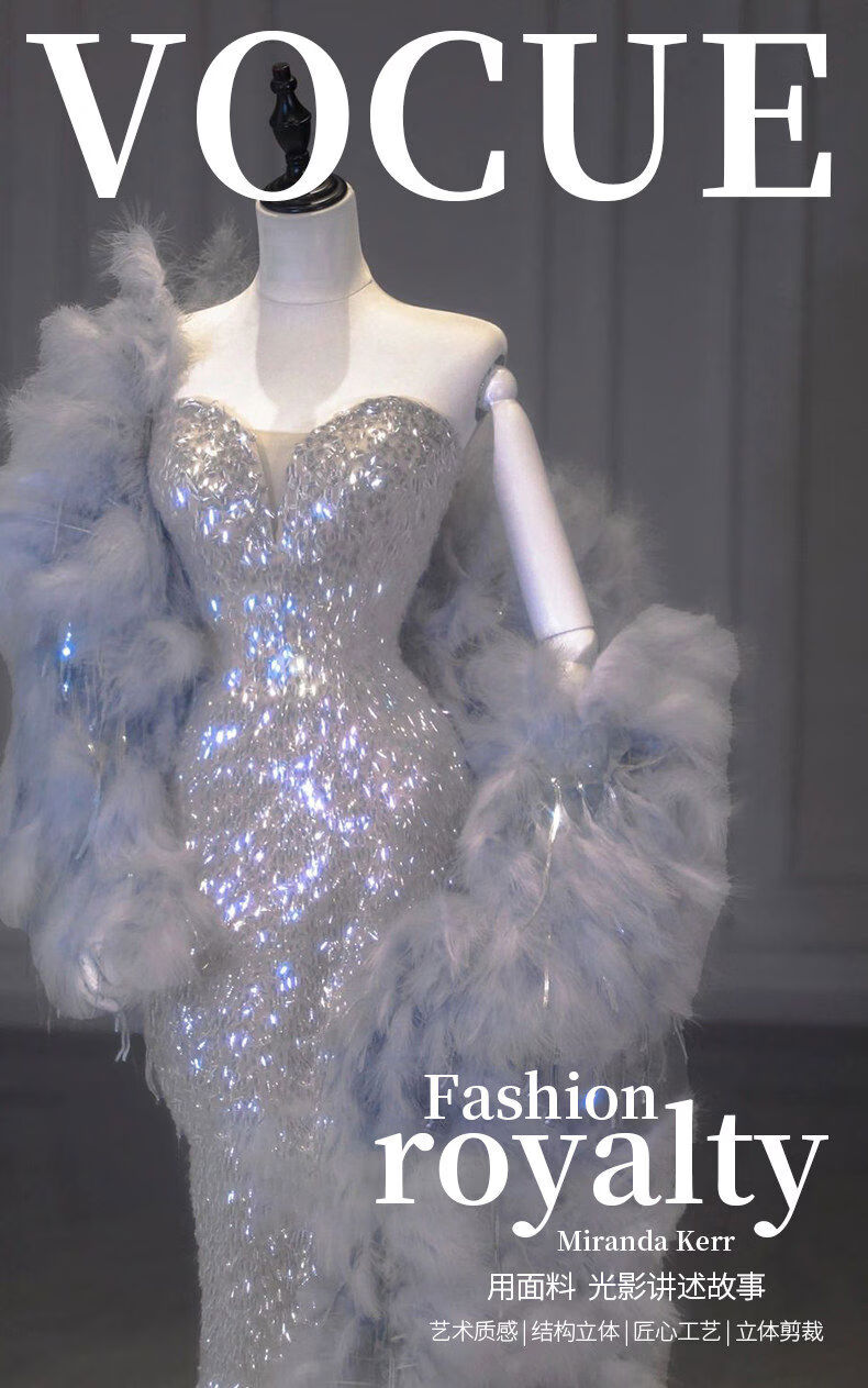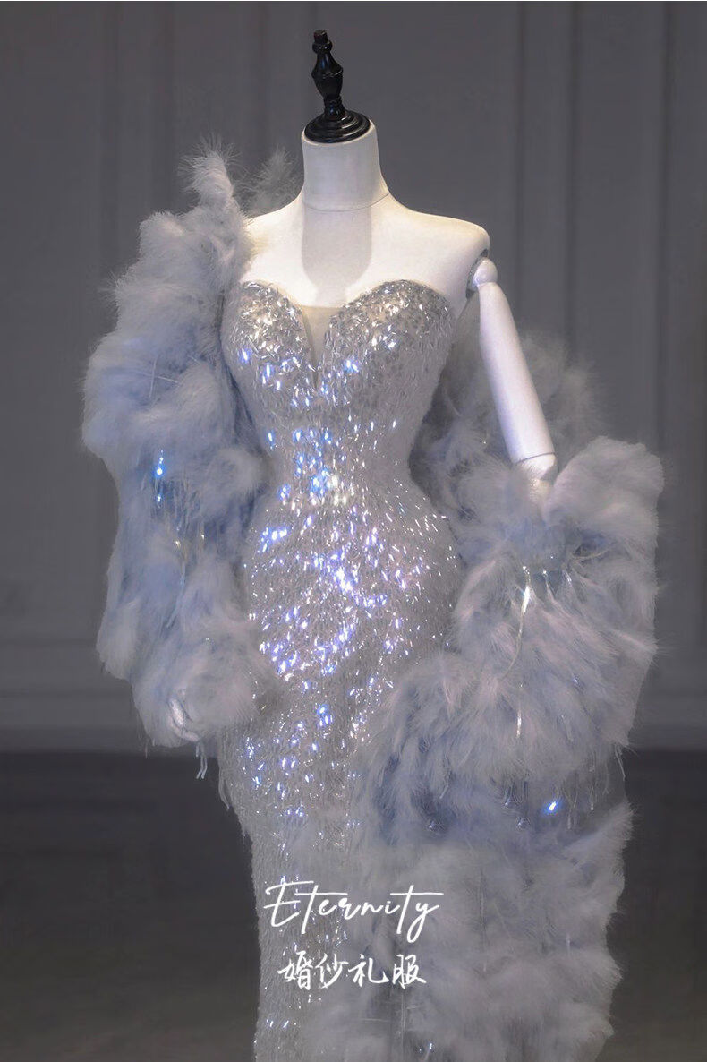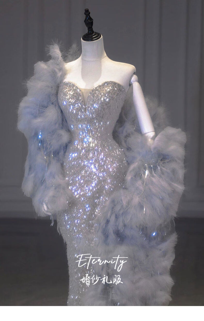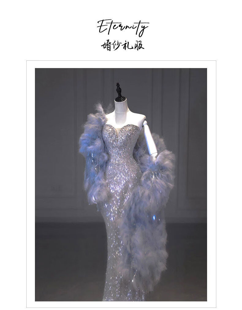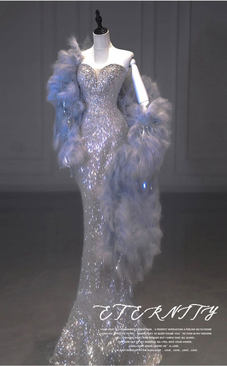 Silver evening dress with a sense of plutocrat daughter dinner annual meeting fishtail skirt engagement bride toasting suit temperament socialite single dress XS XS