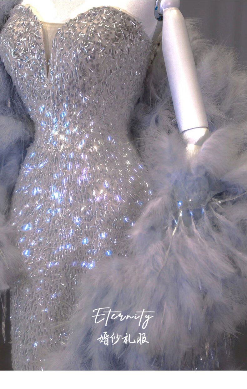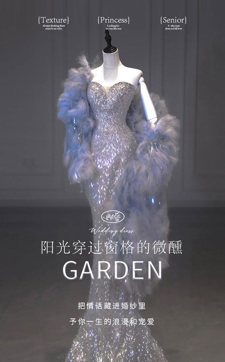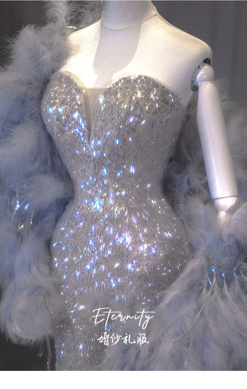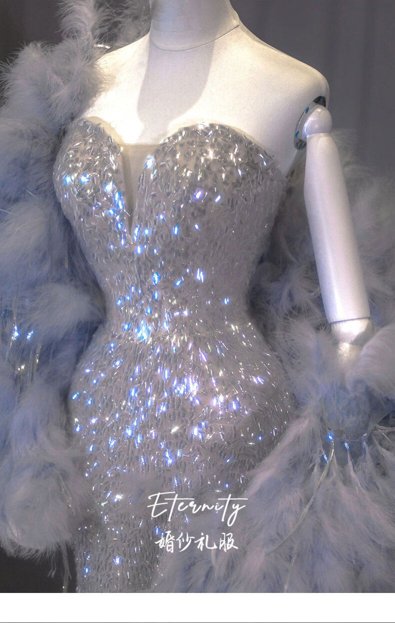Silver evening dress with a sense of plutocrat daughter dinner annual meeting fishtail skirt engagement bride toasting suit temperament socialite single dress XS XS
