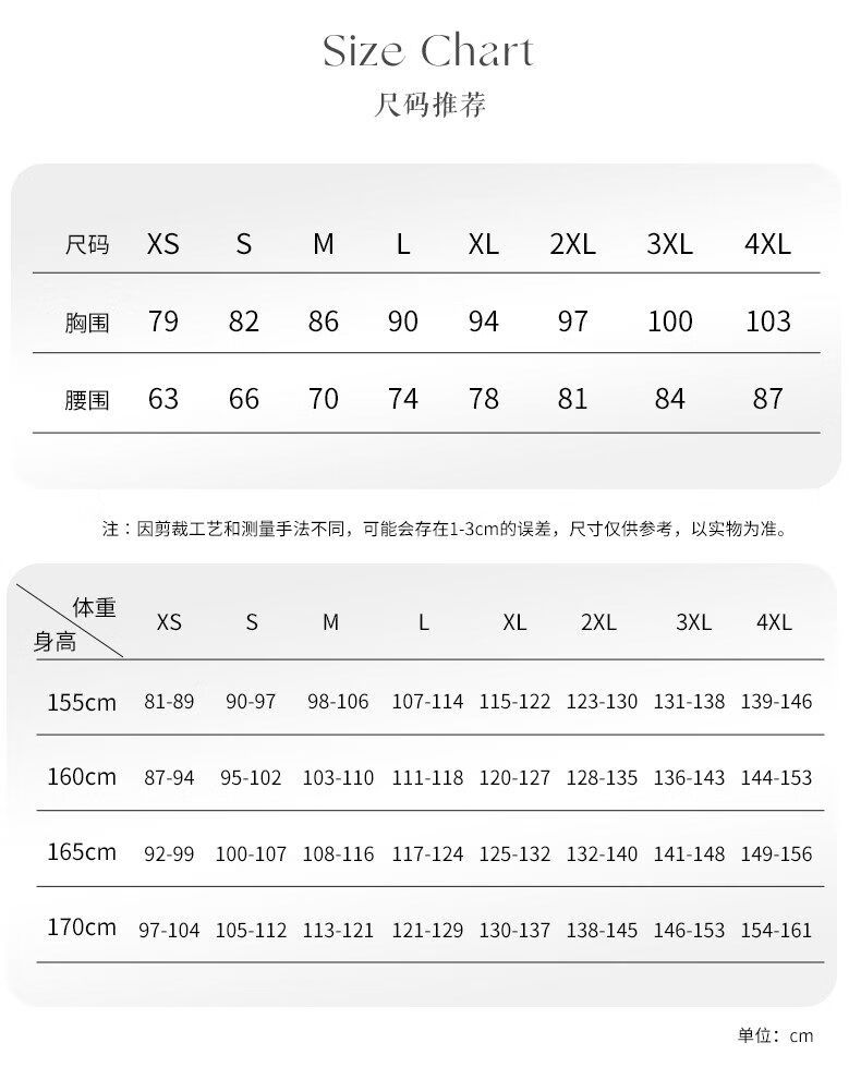 China (cm) 160-165/84-86 165-170 / 88-90 167-172 / 92-96 168-173 / 98-102 170-176 / 106-110