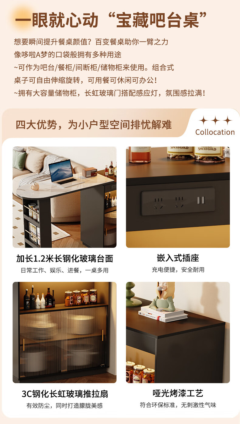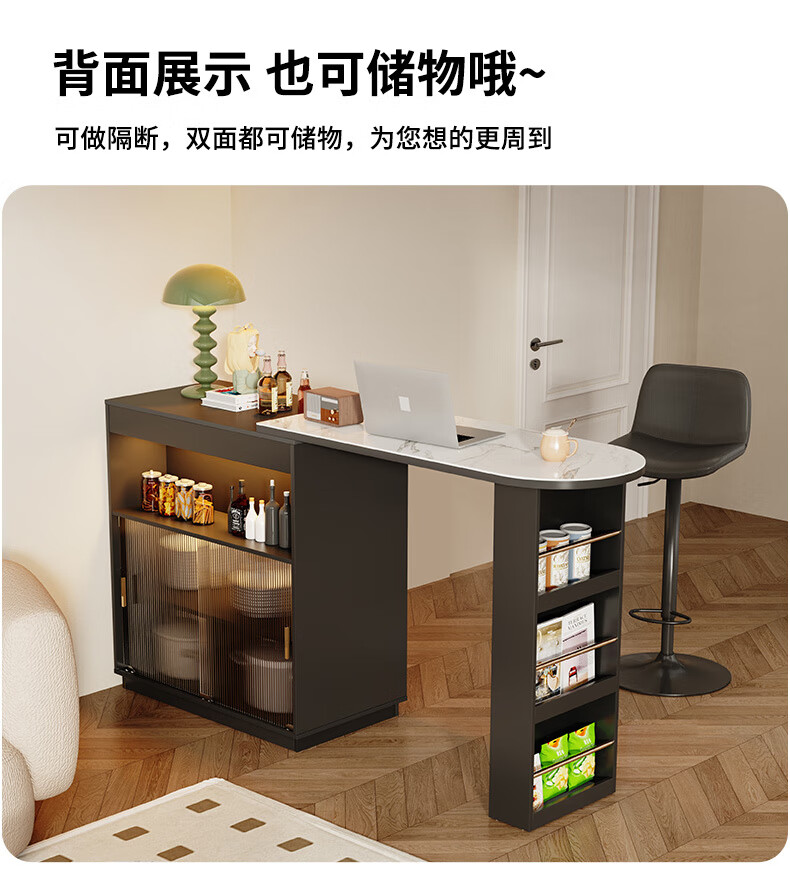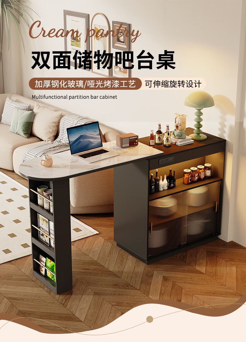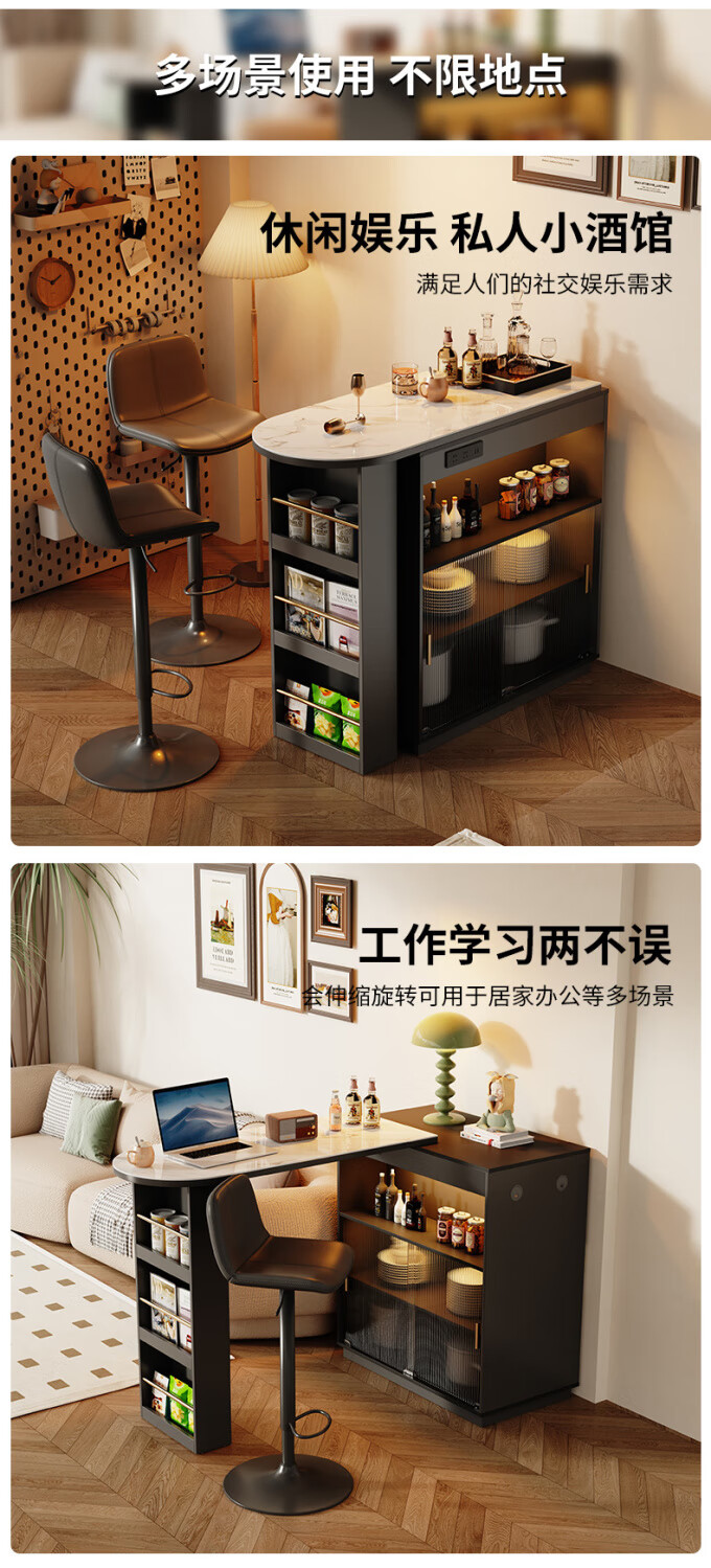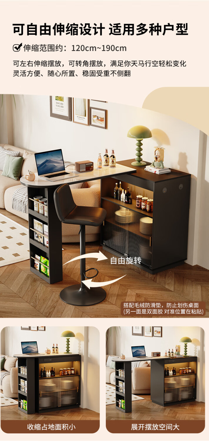 Shantou Lincun French black bar table home dining side cabinet living room partition storage side cabinet retractable island dining table small apartment double-sided bar table 90cm + L sliding cabinet combination door installation