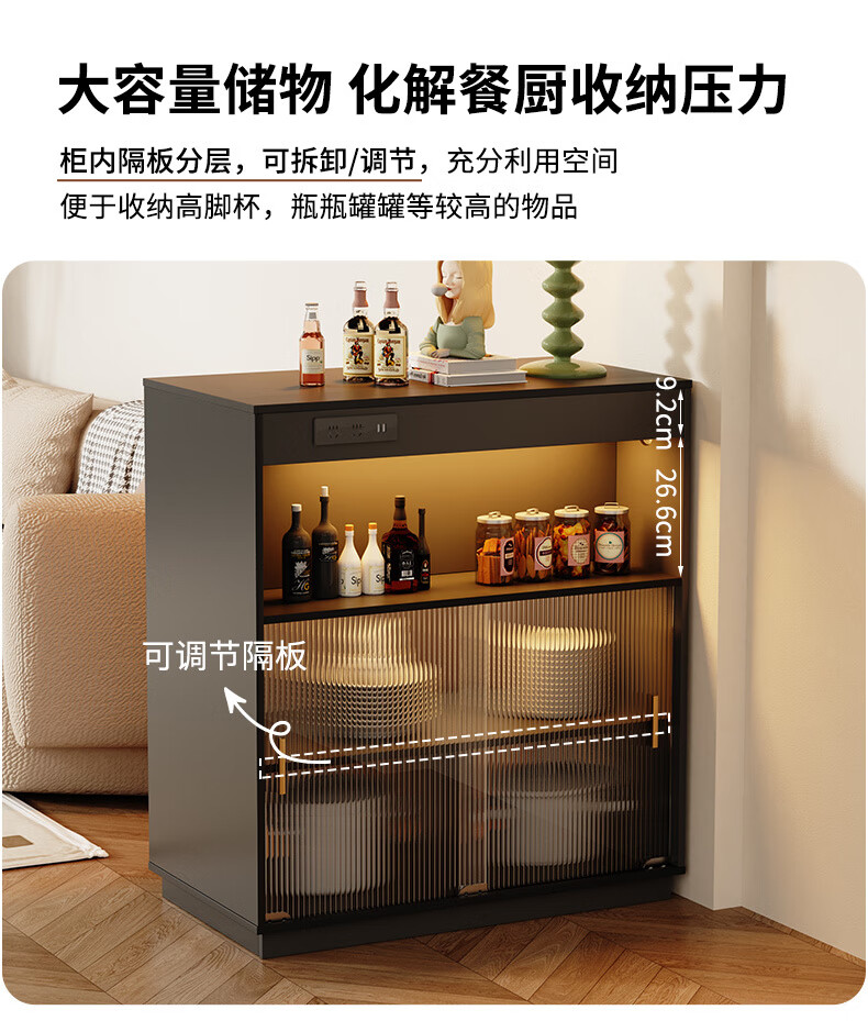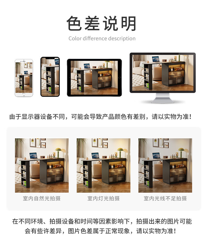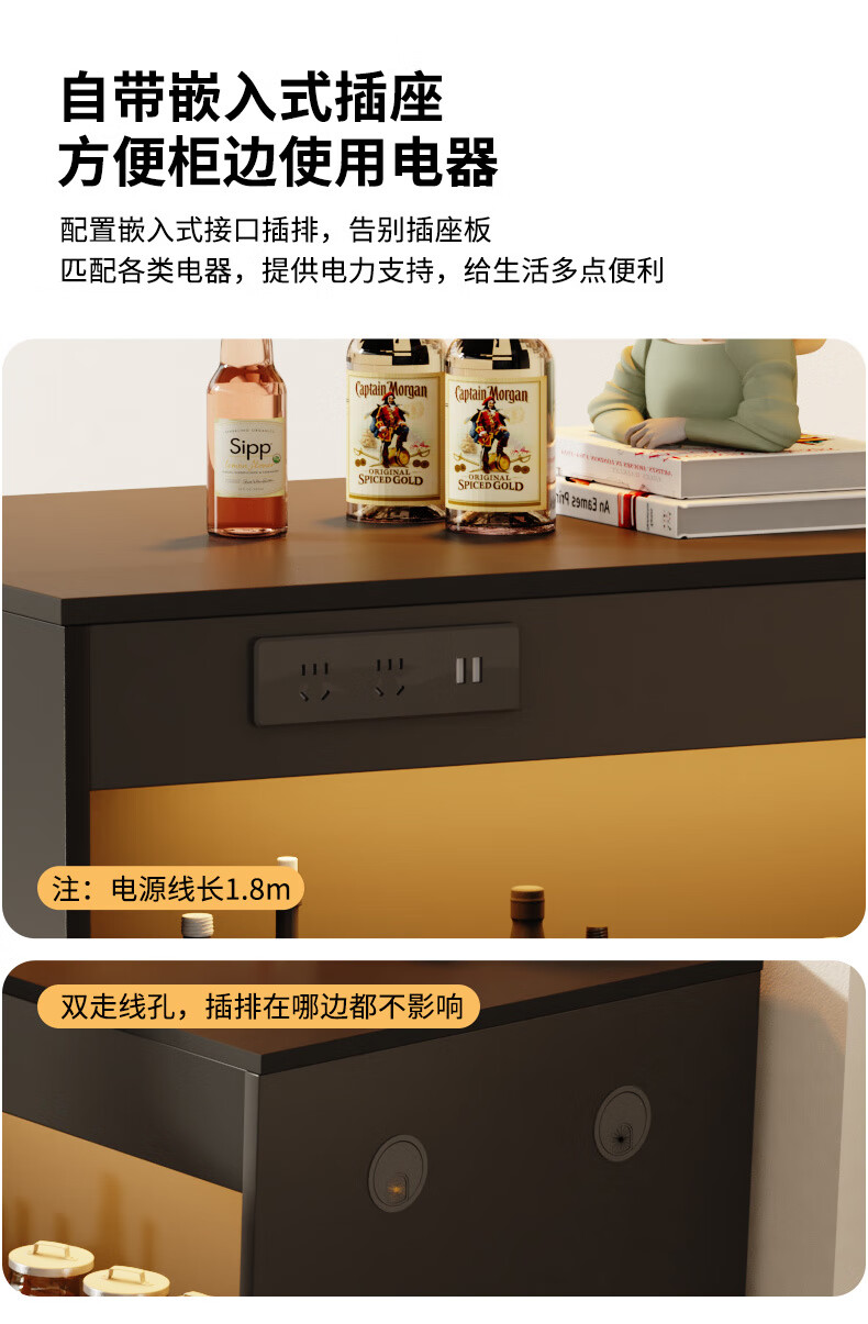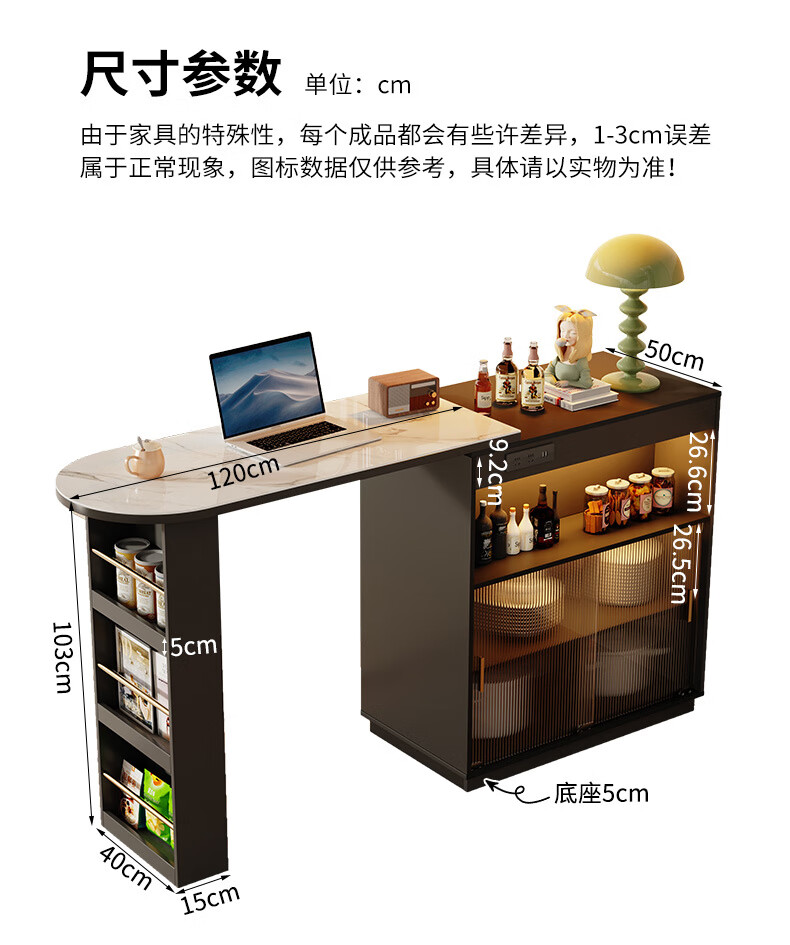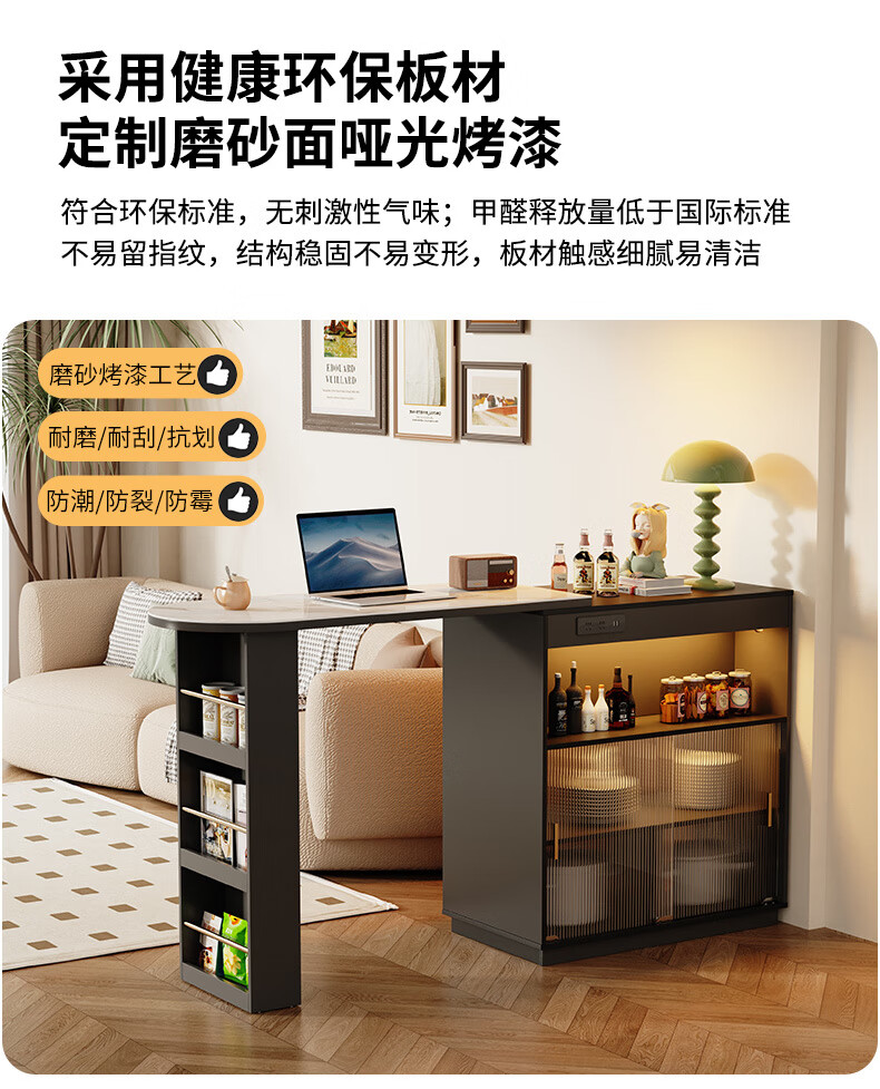 Shantou Lincun French black bar table home dining side cabinet living room partition storage side cabinet retractable island dining table small apartment double-sided bar table 90cm + L sliding cabinet combination door installation