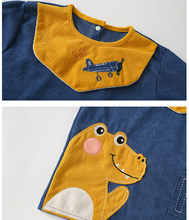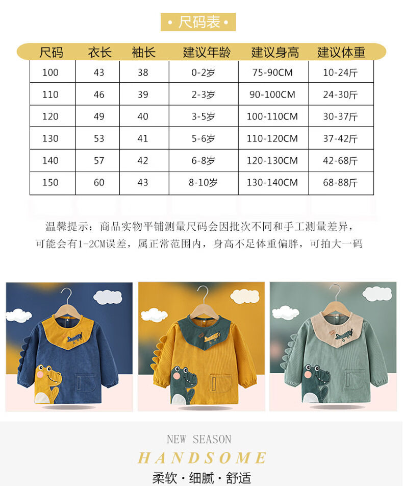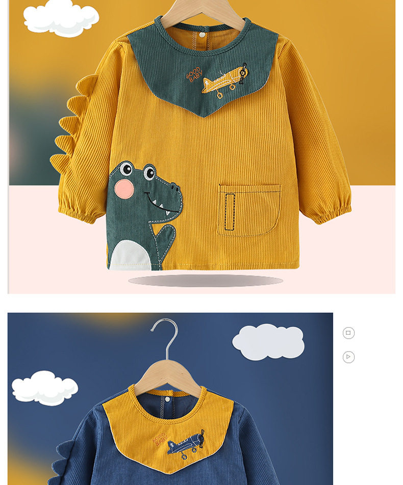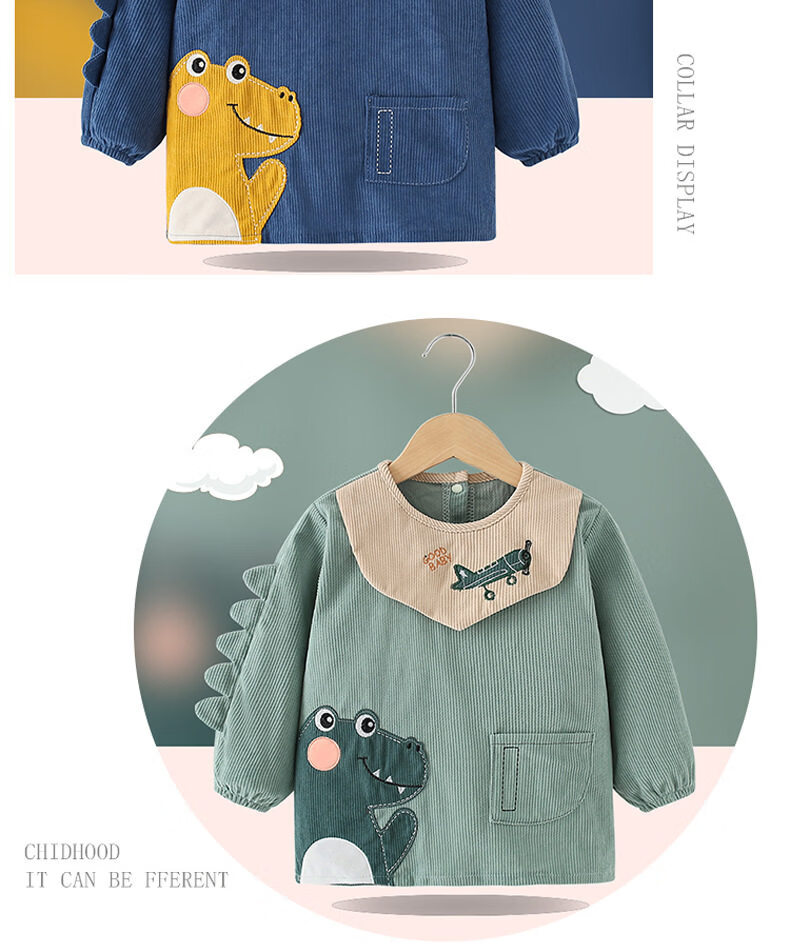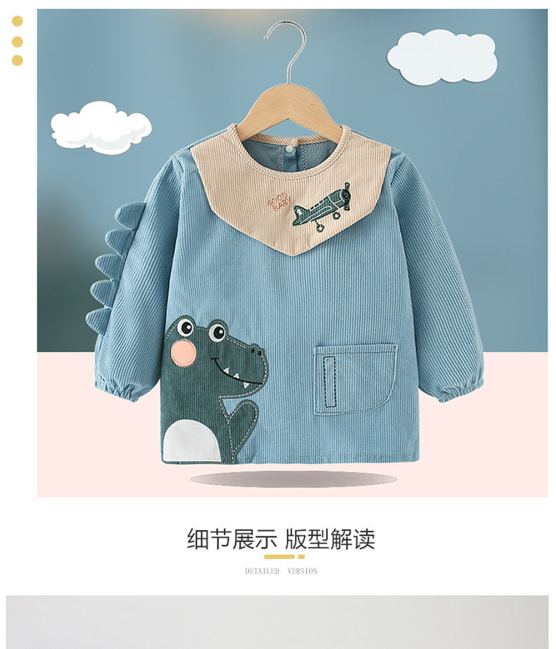 Shijanu Western Style Waterproof Bib Back-to-Back Dressing Kindergarten Drawing and Eating Anti-Dirty Dinosaur Cover Light Blue 100 Recommended for 0-2 years old