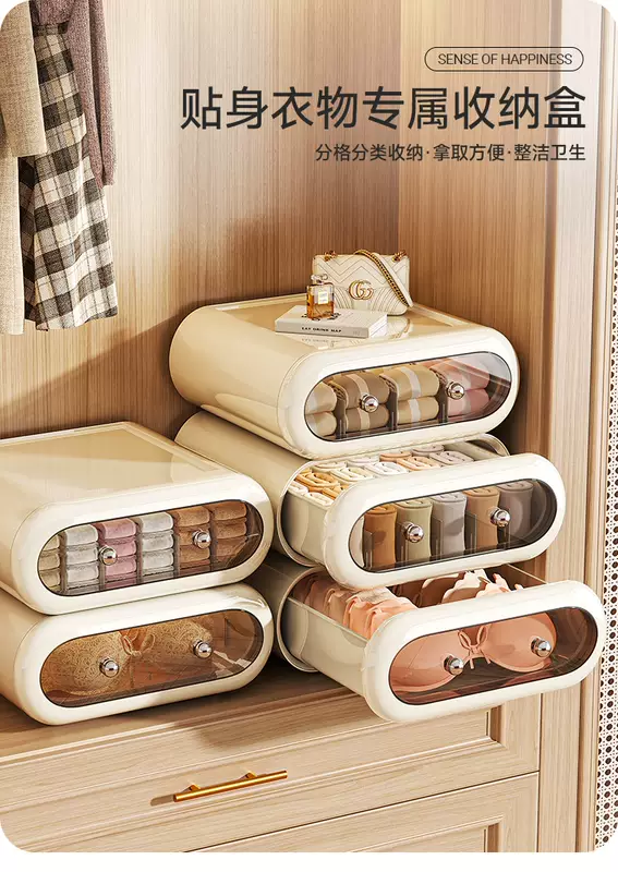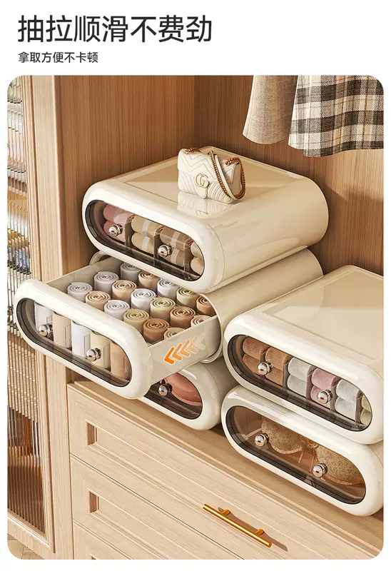 Yusenyi underwear storage box household underwear storage box drawer-type three-in-one sock compartment artifact two-piece set (underwear box-sock box) transparent tea